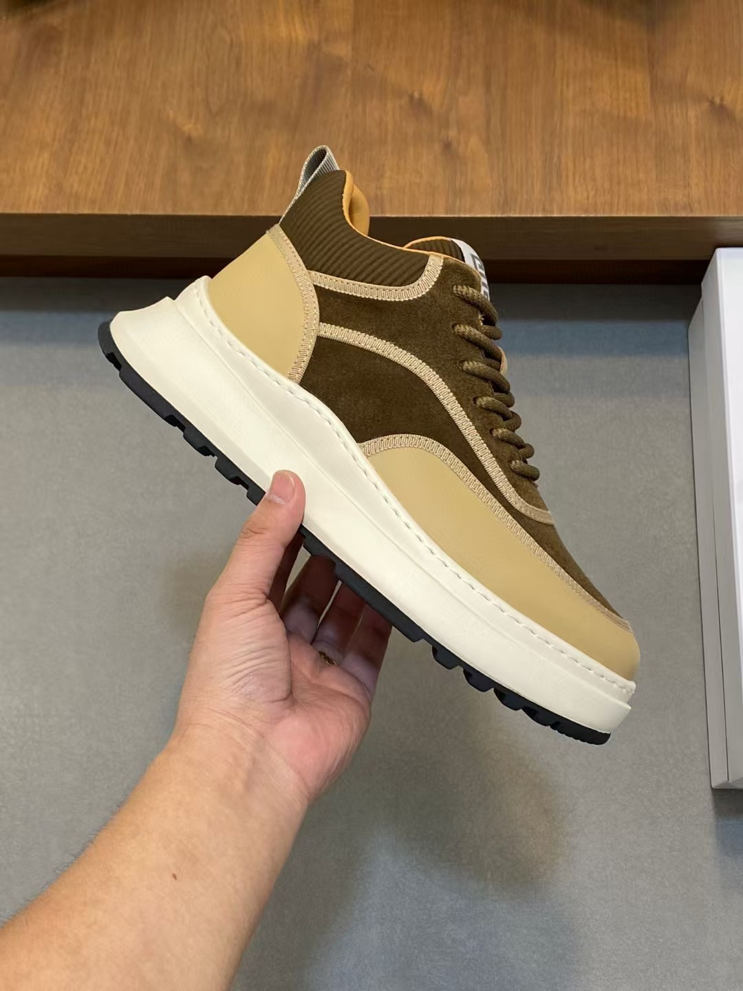 【介绍】纪梵希分享一个可以百搭的鞋款,2023走秀———米兰时装周,让男士不用选择的方程式,鞋面小牛皮材质,发泡大底,水染牛皮脚垫。