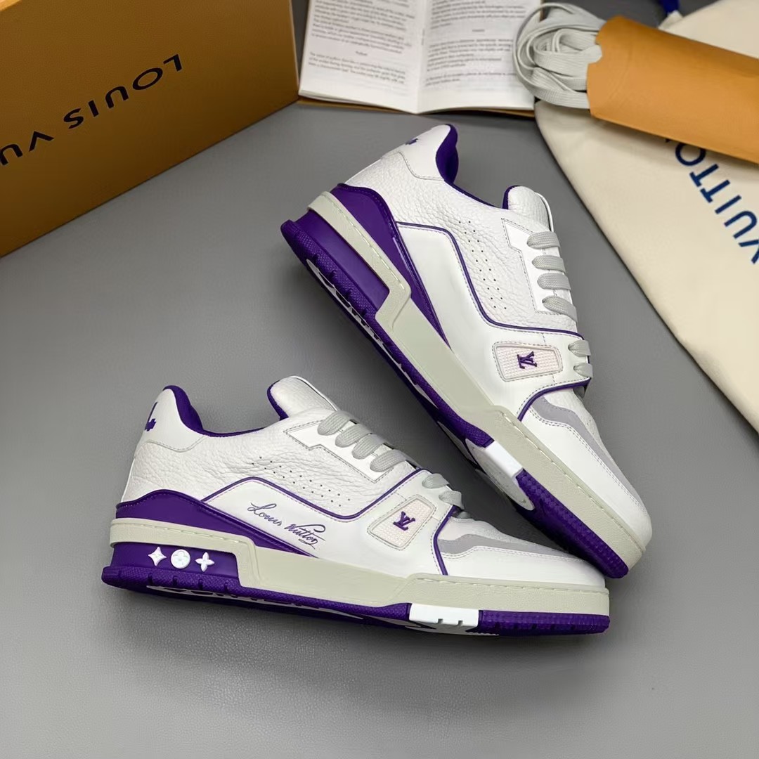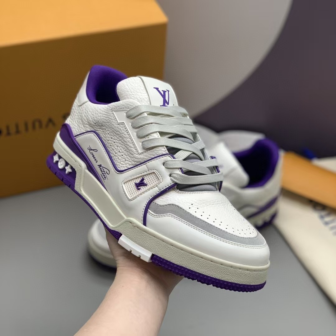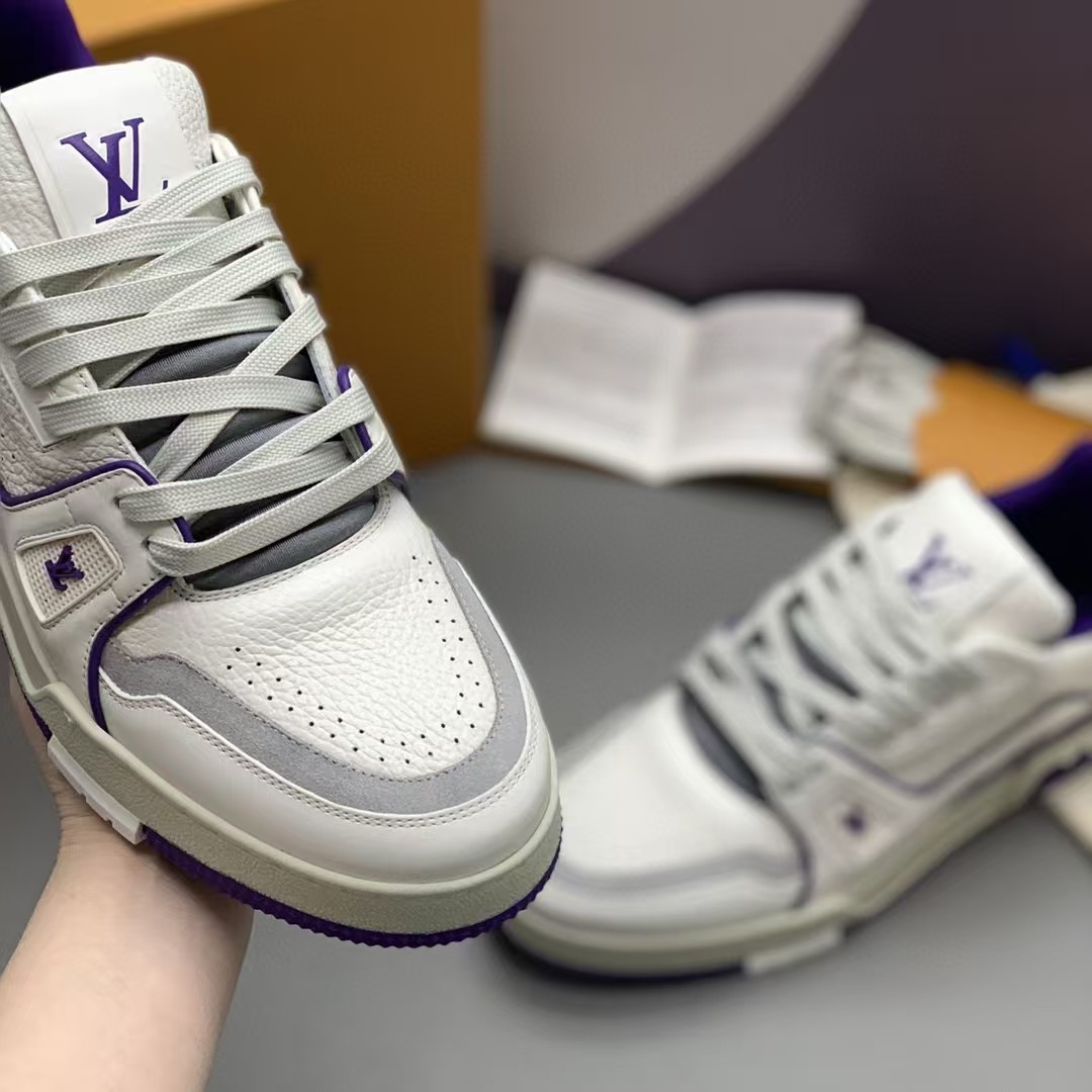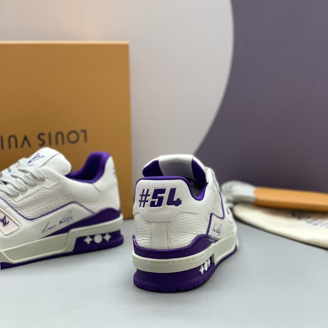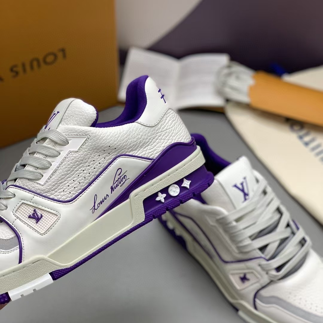 【介绍】情侣款运动休闲鞋,此款运动跑鞋采用白色小牛皮制成,设计简洁,设计简洁,侧面饰有其Vuitton 标识,科技橡胶外底、并延续创新凝胶外底带来的舒适感更为出众。