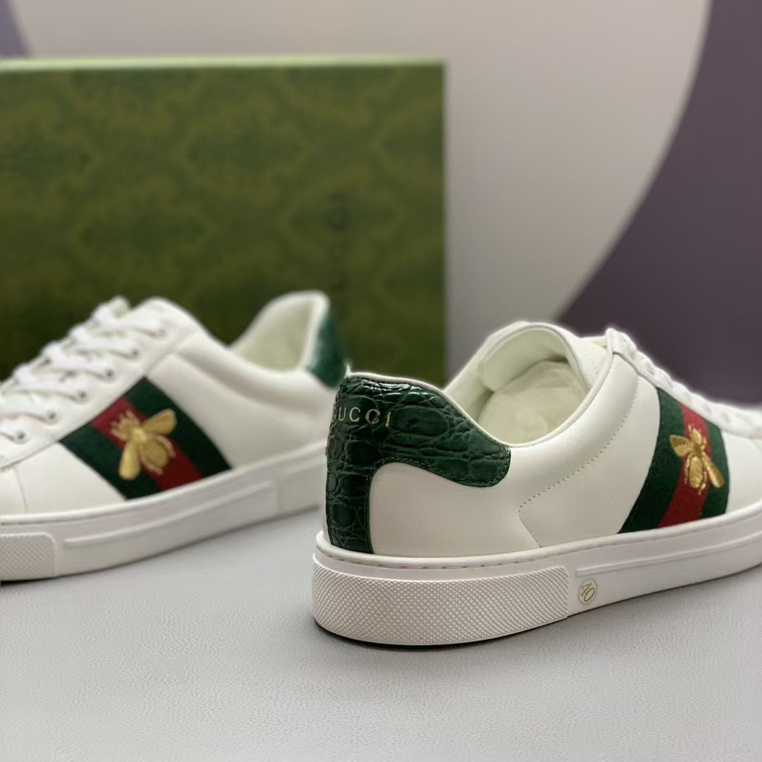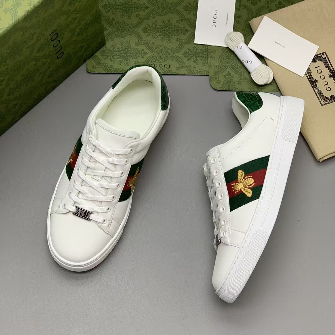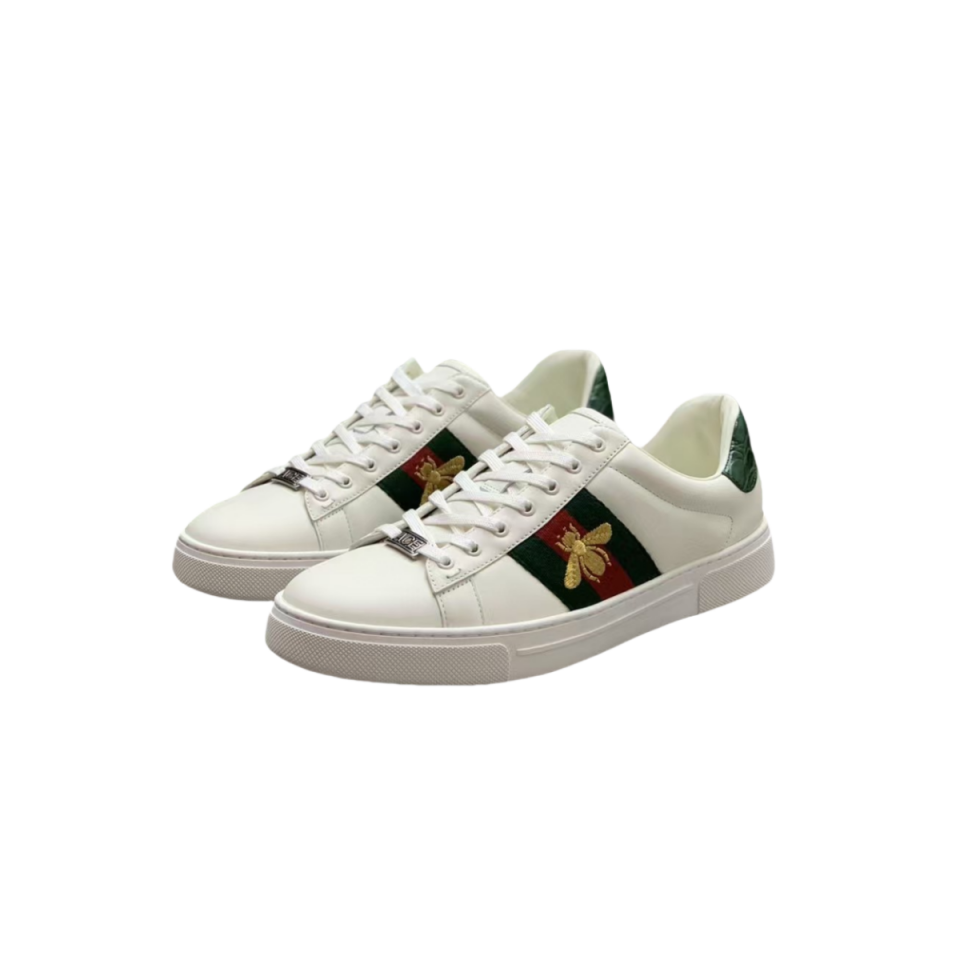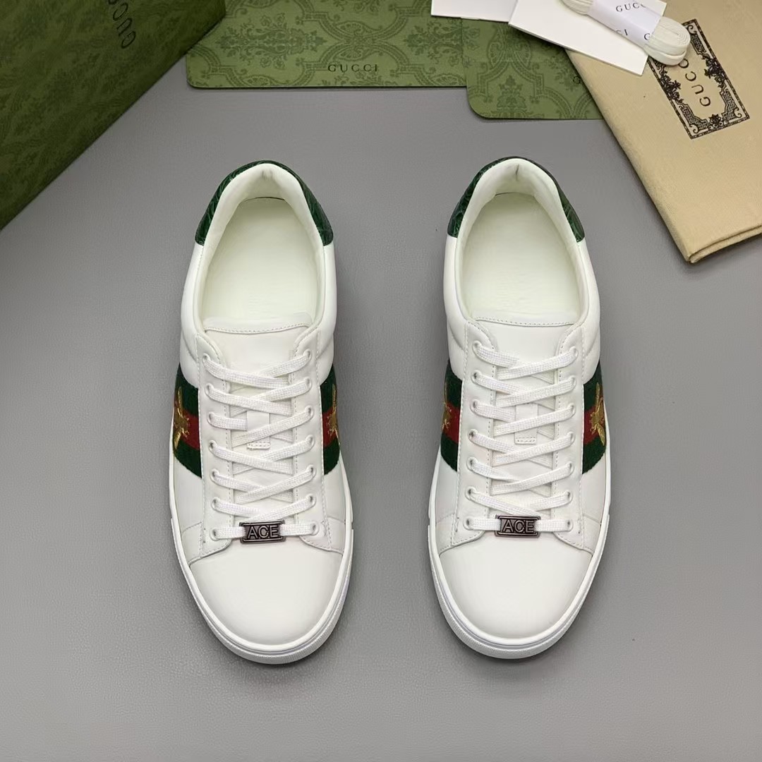 【介绍】男士休闲小白鞋-鞋面采用牛皮、内里采用柔软舒适吸汗小牛皮,经典红绿条纹织带更添魅力,Ace全新系列呈现特色低帮设计,橡胶鞋底,搭配别致细节,构造精致塑就挺括鞋型,上脚舒适百搭。