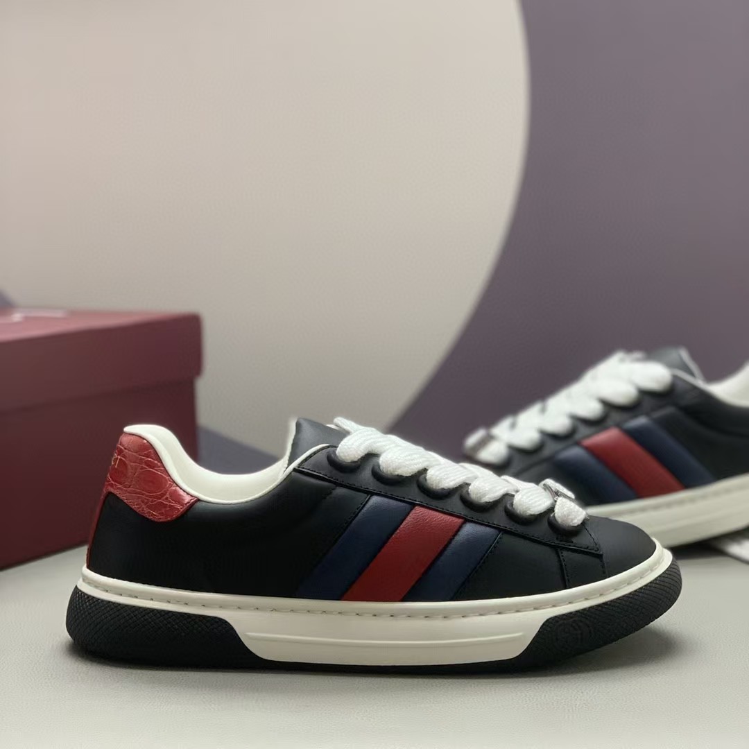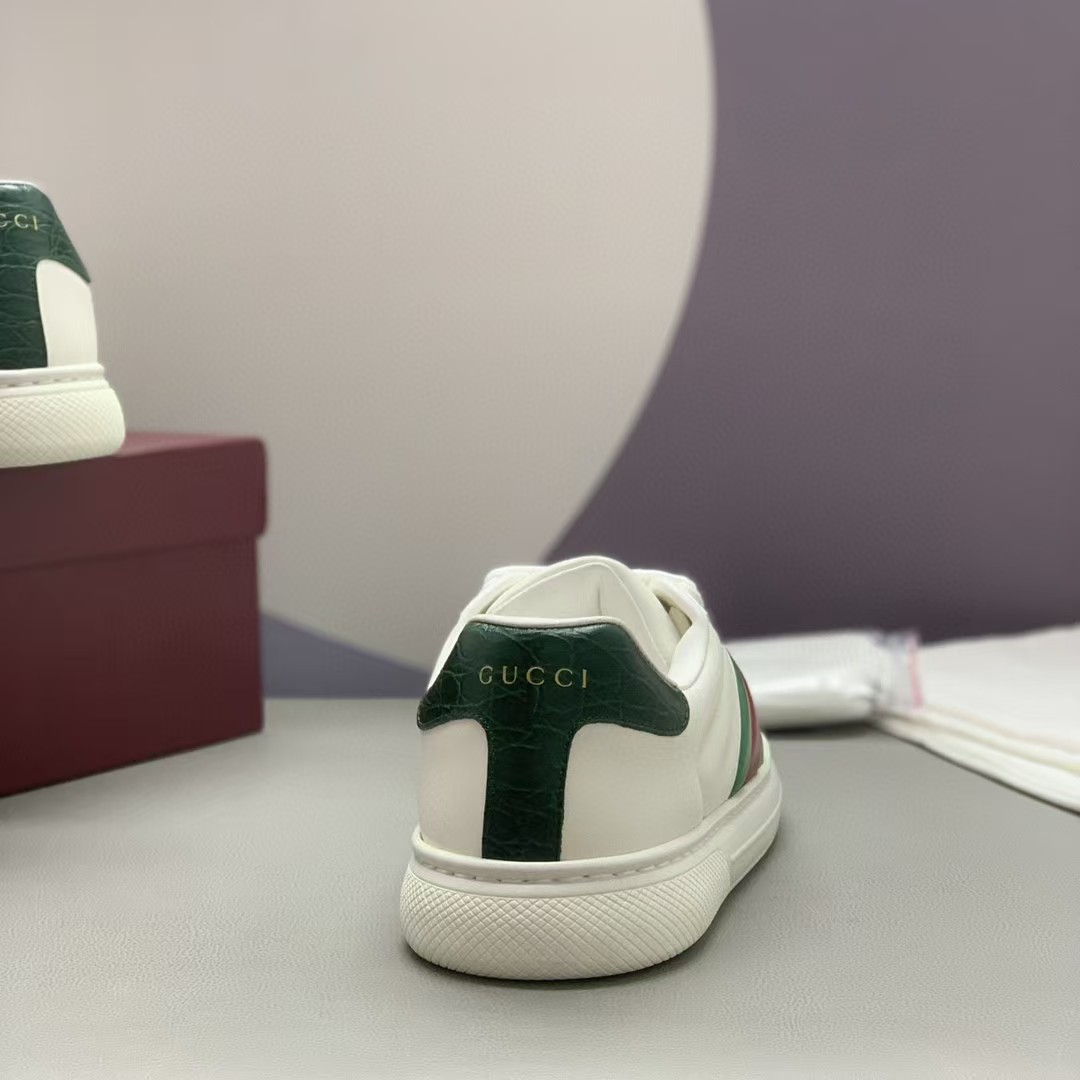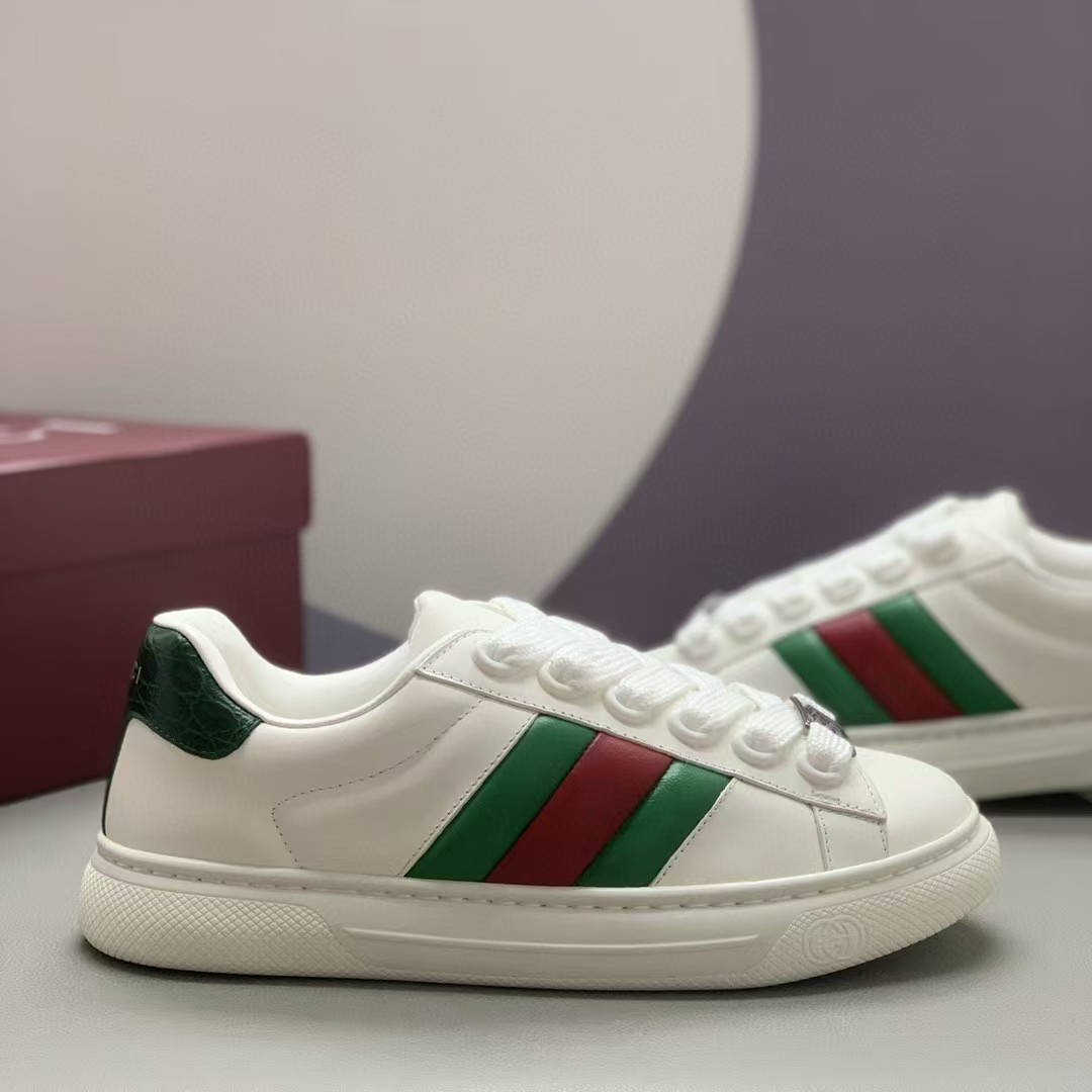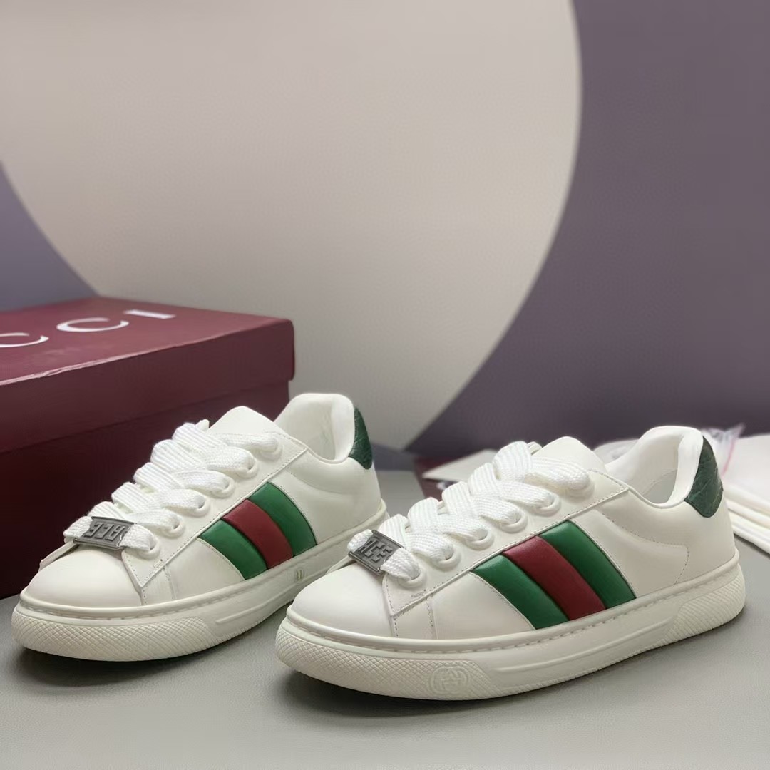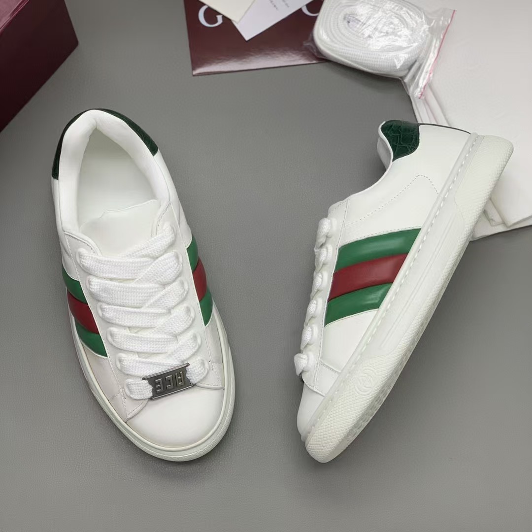 【介绍】情侣款休闲鞋,鞋面采用牛皮、内里采用柔软舒适吸汗小牛皮,经典红绿织带更添魅力,Ace全新系列呈现特色低帮设计,橡胶鞋底,搭配别致细节,构造精致塑就挺括鞋型,上脚舒适百搭。