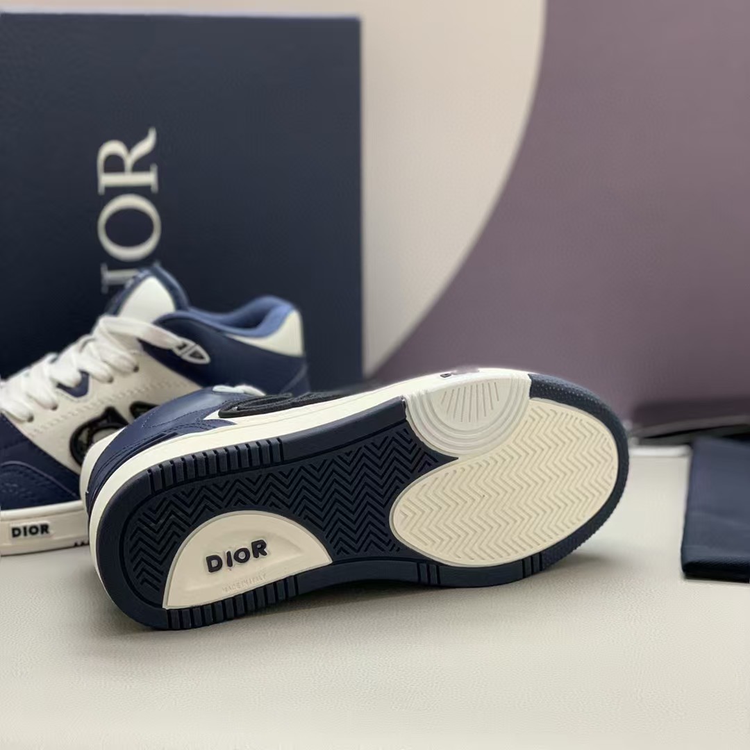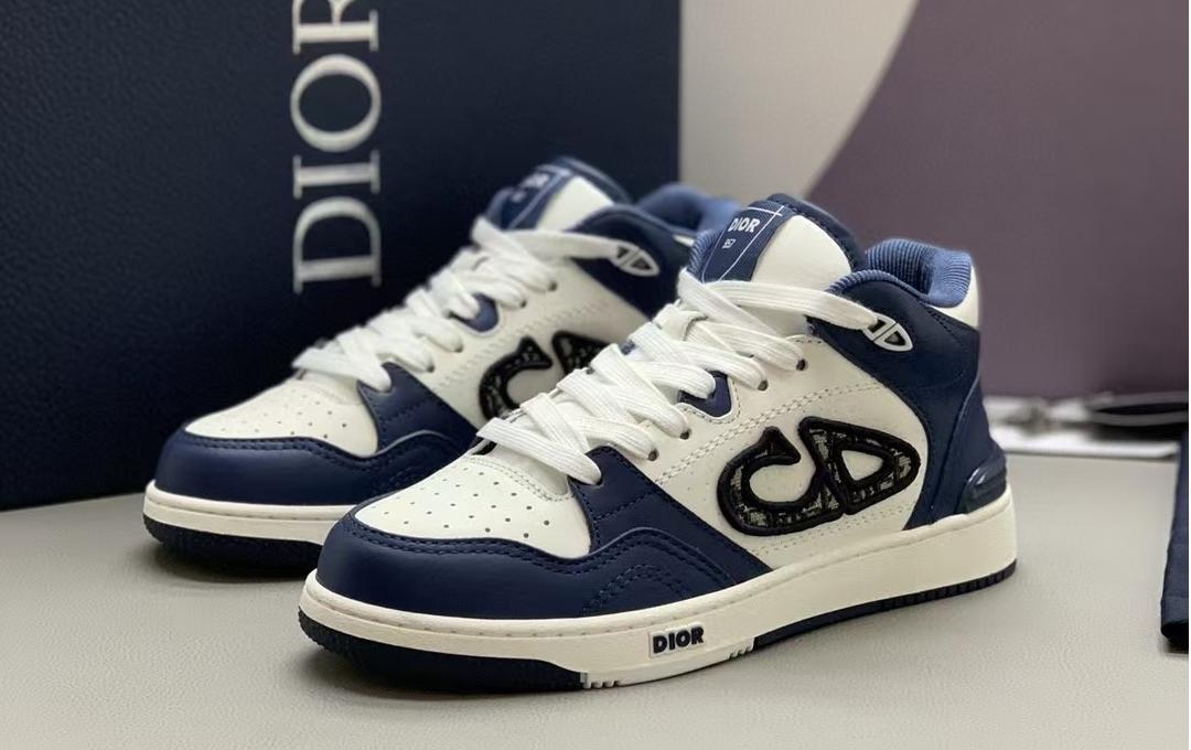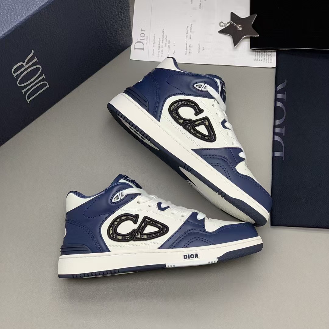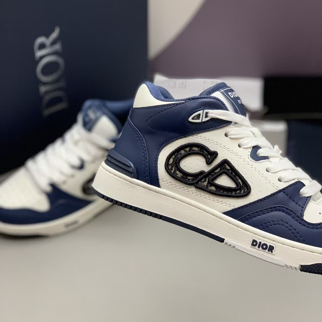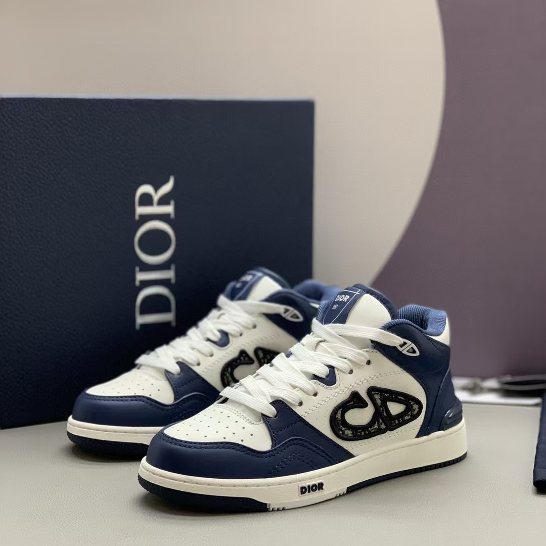 【介绍】男女款中帮运动休闲鞋,这款B57中帮鞋重新诠释篮球鞋设计,采用蓝色和奶油白色光滑牛皮革精心制作,搭配米色绒面革,侧面展示皮质 C D 标志。鞋舌、鞋底和后侧饰以各种特色细节提升格调,而孔眼细节、缉面线和橡胶镶片更是突显其运动风格的动感魅力。带有双色橡胶鞋底,可搭配各式服饰,打造精致造型。(时尚百搭,可为各式造型增光添彩)