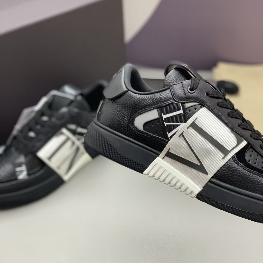-此款小牛皮绑带运动鞋、六条橡胶效果VLTN logo绑带