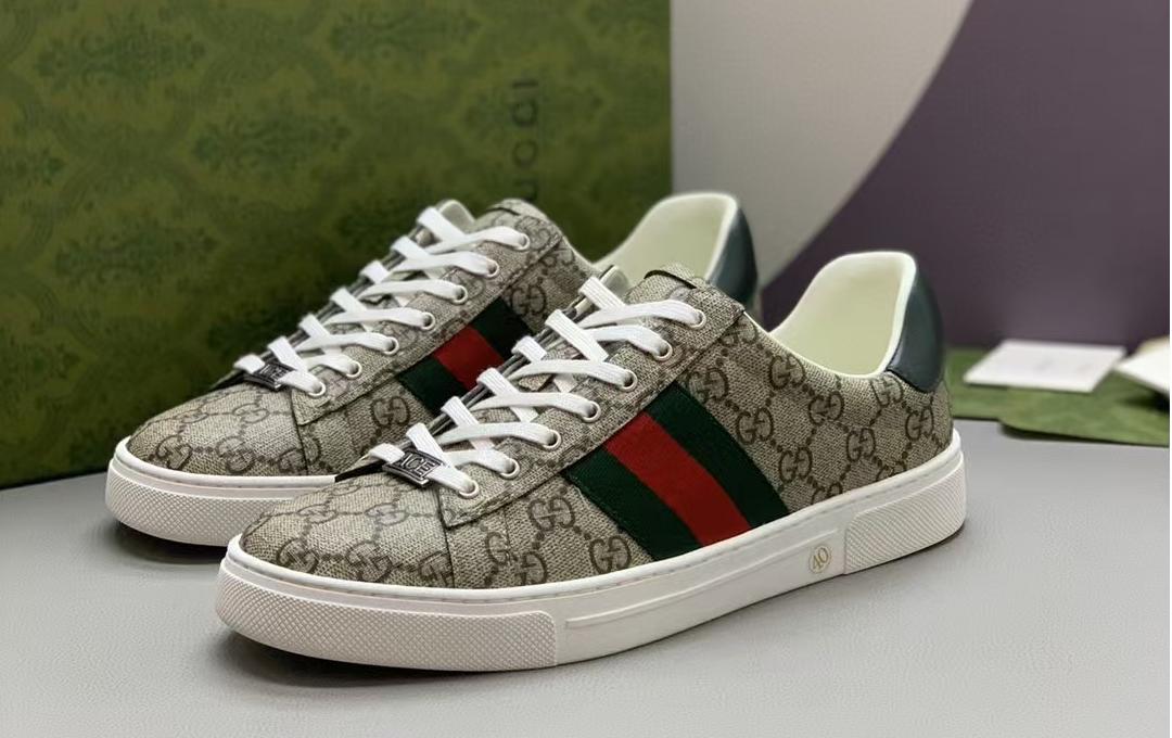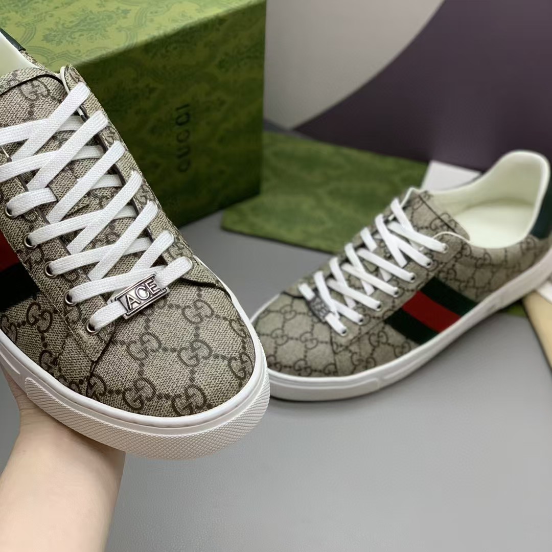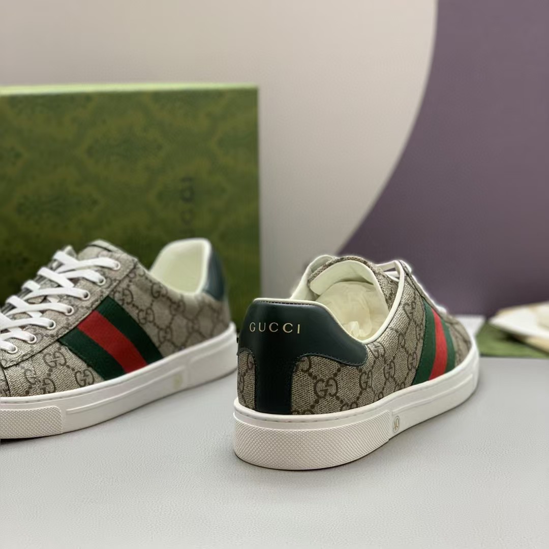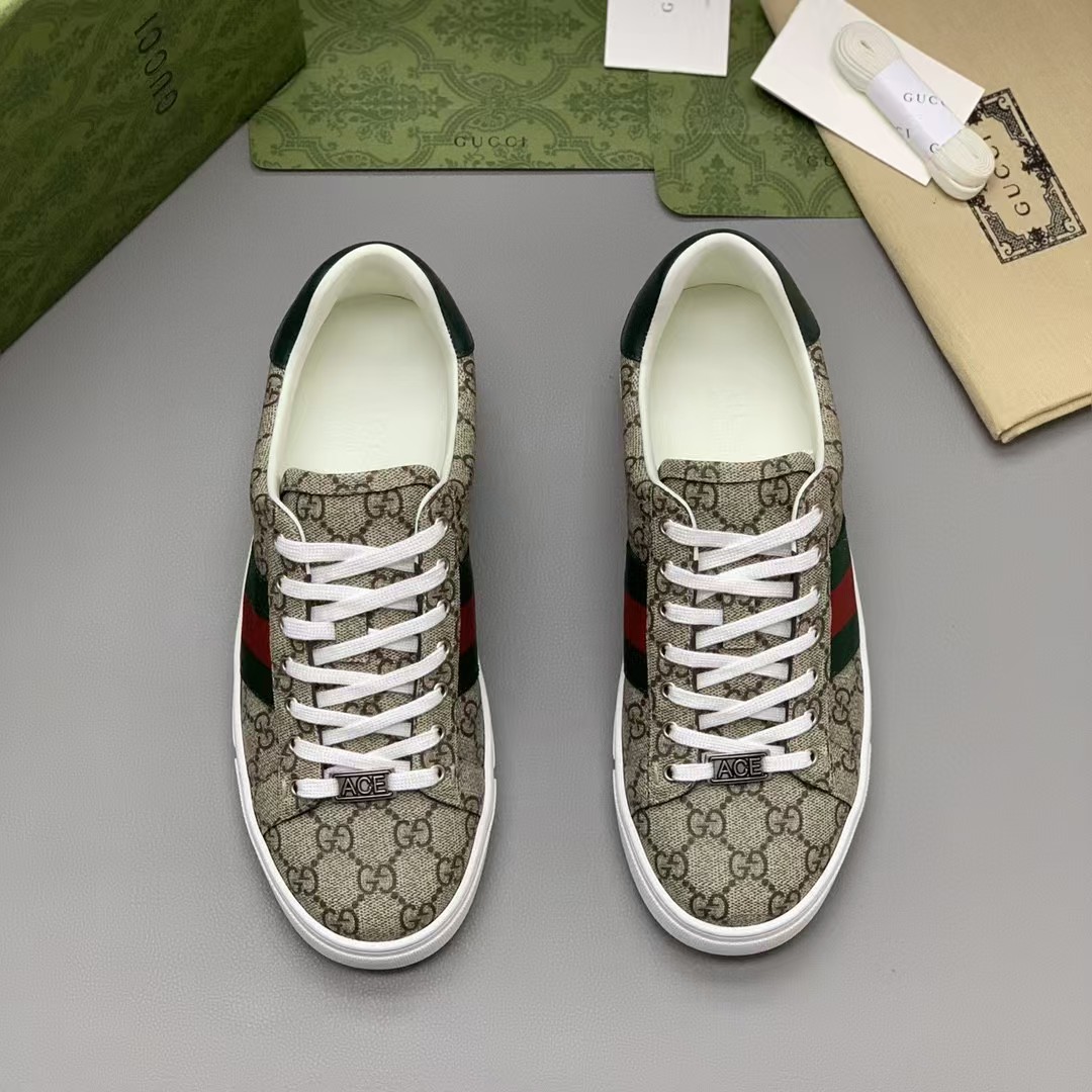 【介绍】男士休闲运动鞋.鞋面采用米色和乌木色G帆布,内里采用柔软舒适吸汗小牛皮,经典红绿条纹织带更添魅力,Ace全新系列呈现特色低帮设计,橡胶鞋底,搭配别致细节,构造精致塑就挺括鞋型,上脚舒适百搭。