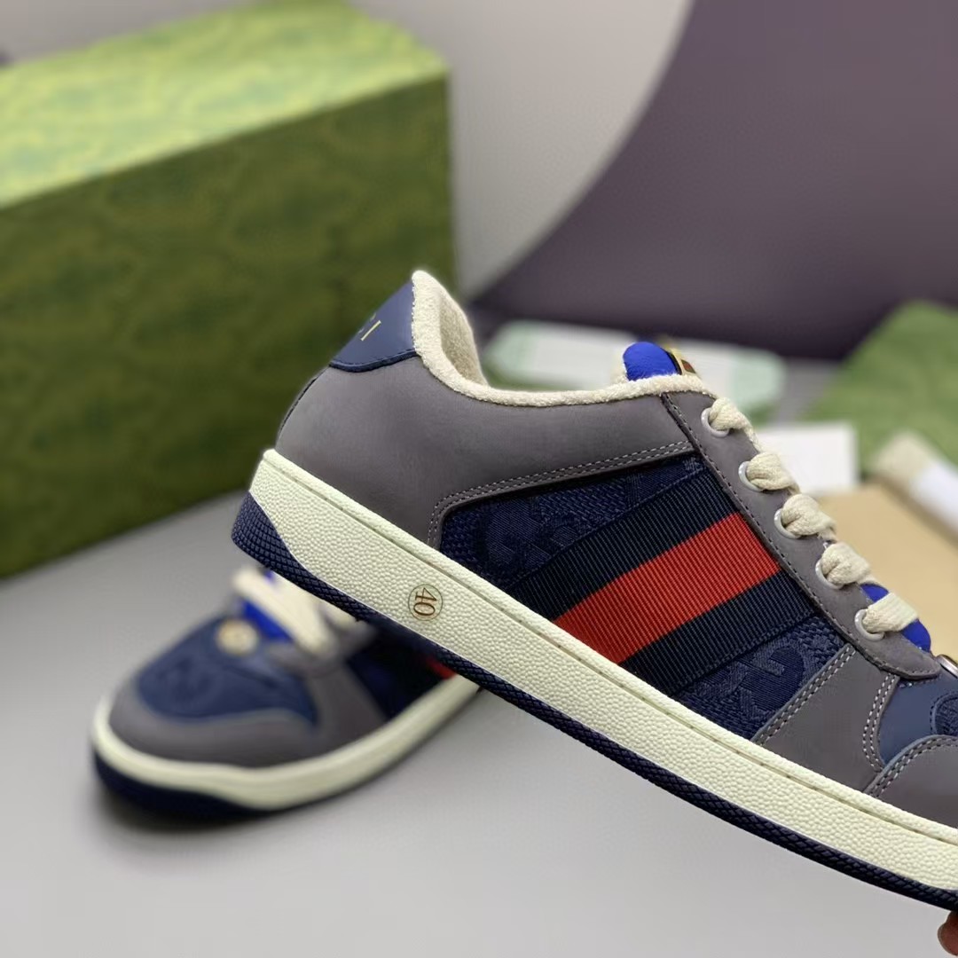 -此款休闲小脏鞋饰以采用吸汗毛巾布里细腻柔软更舒适透气、复古Gucci标识经过特殊处理,整体呈现做旧效果;
