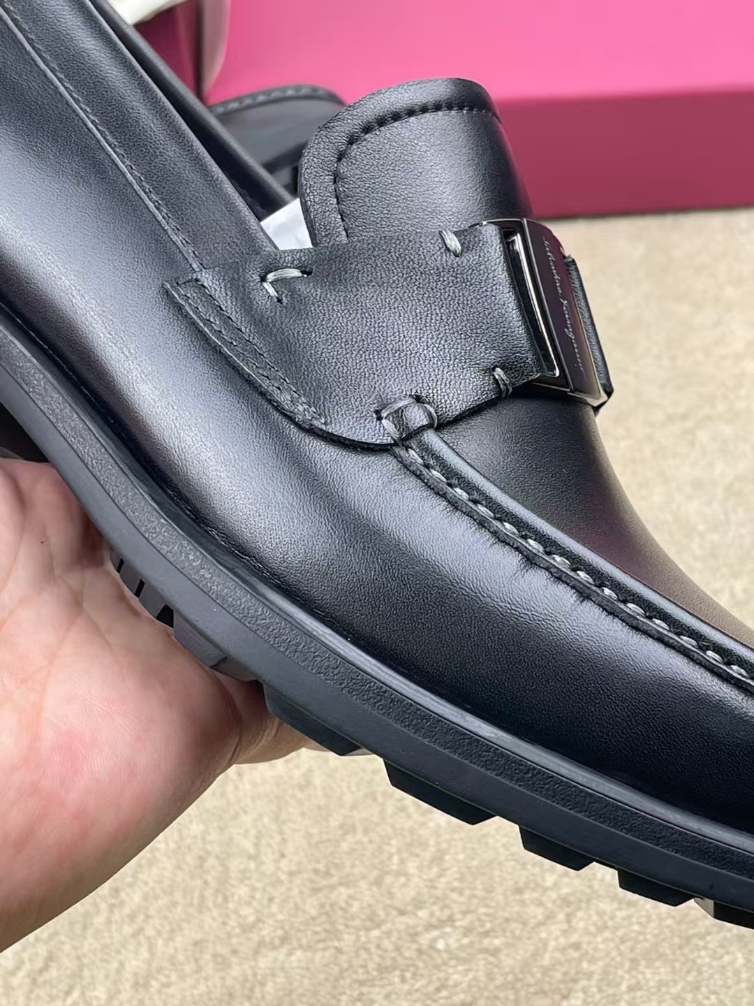 介绍:菲拉格慕最新款更新,经典款专柜同步高品质 进口牛皮面牛皮内里专用模具大底防滑耐磨专用大底 鞋面搭配品牌LOGO五金扣 套脚鞋。