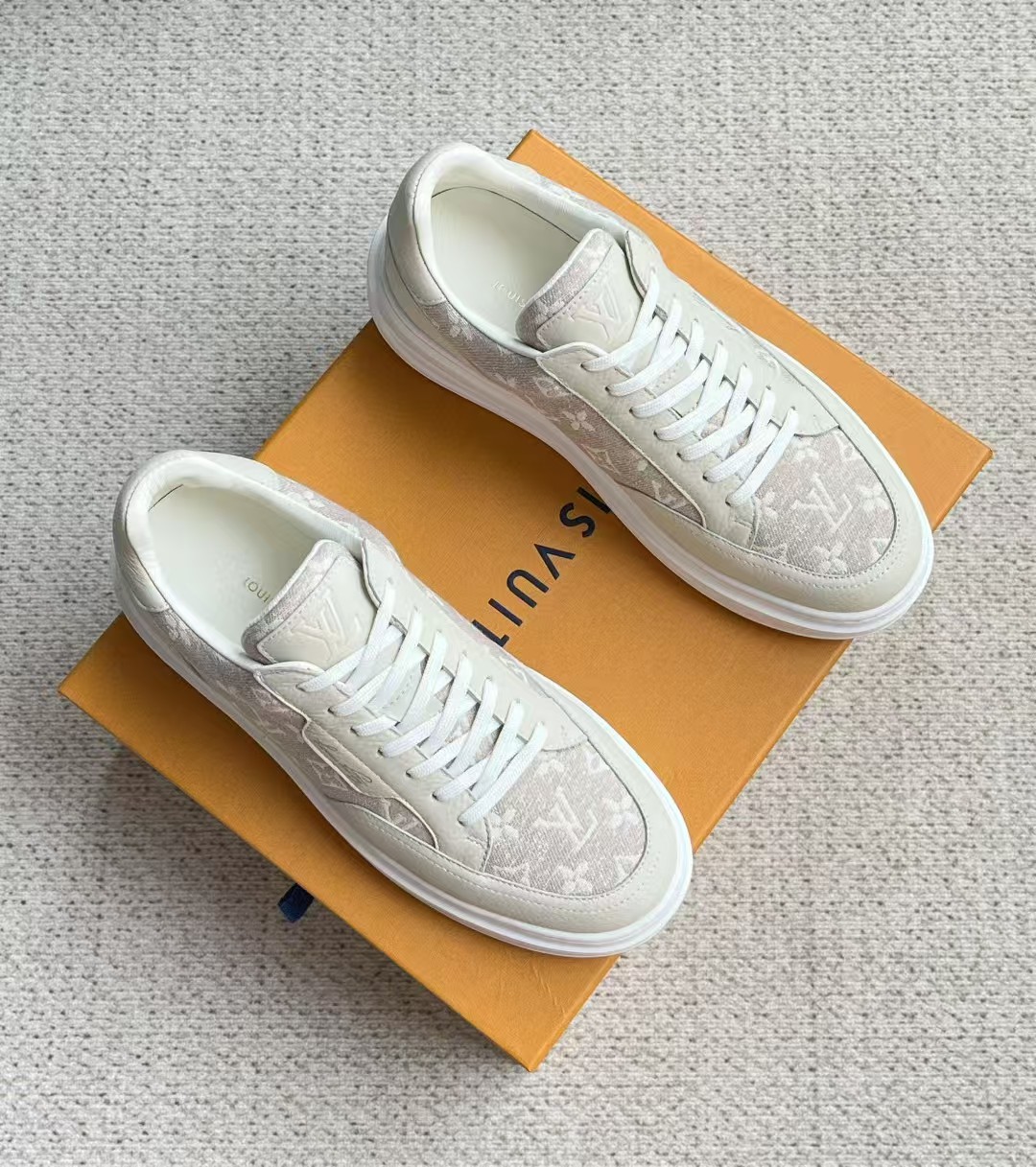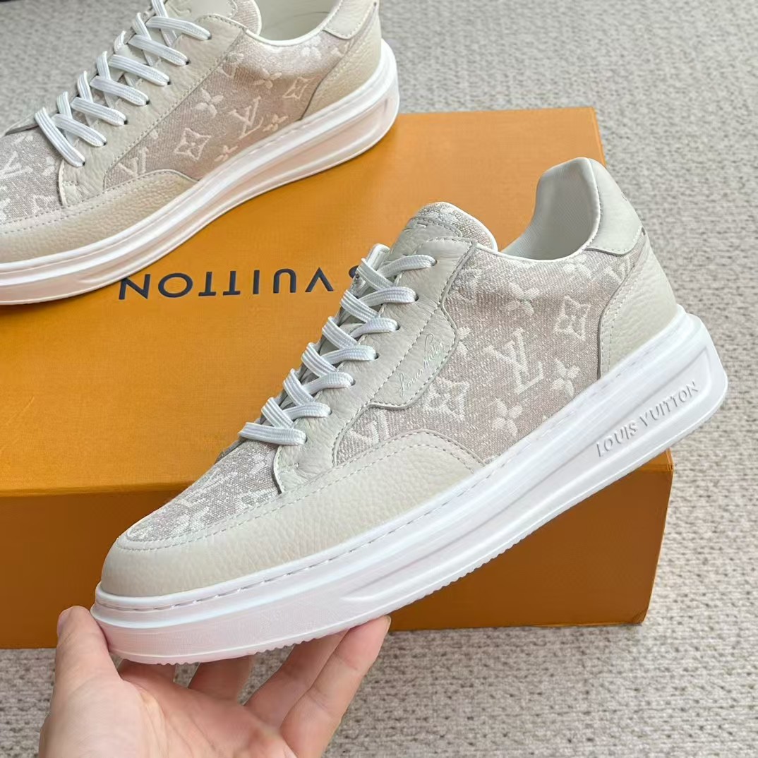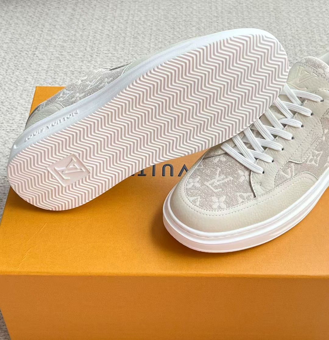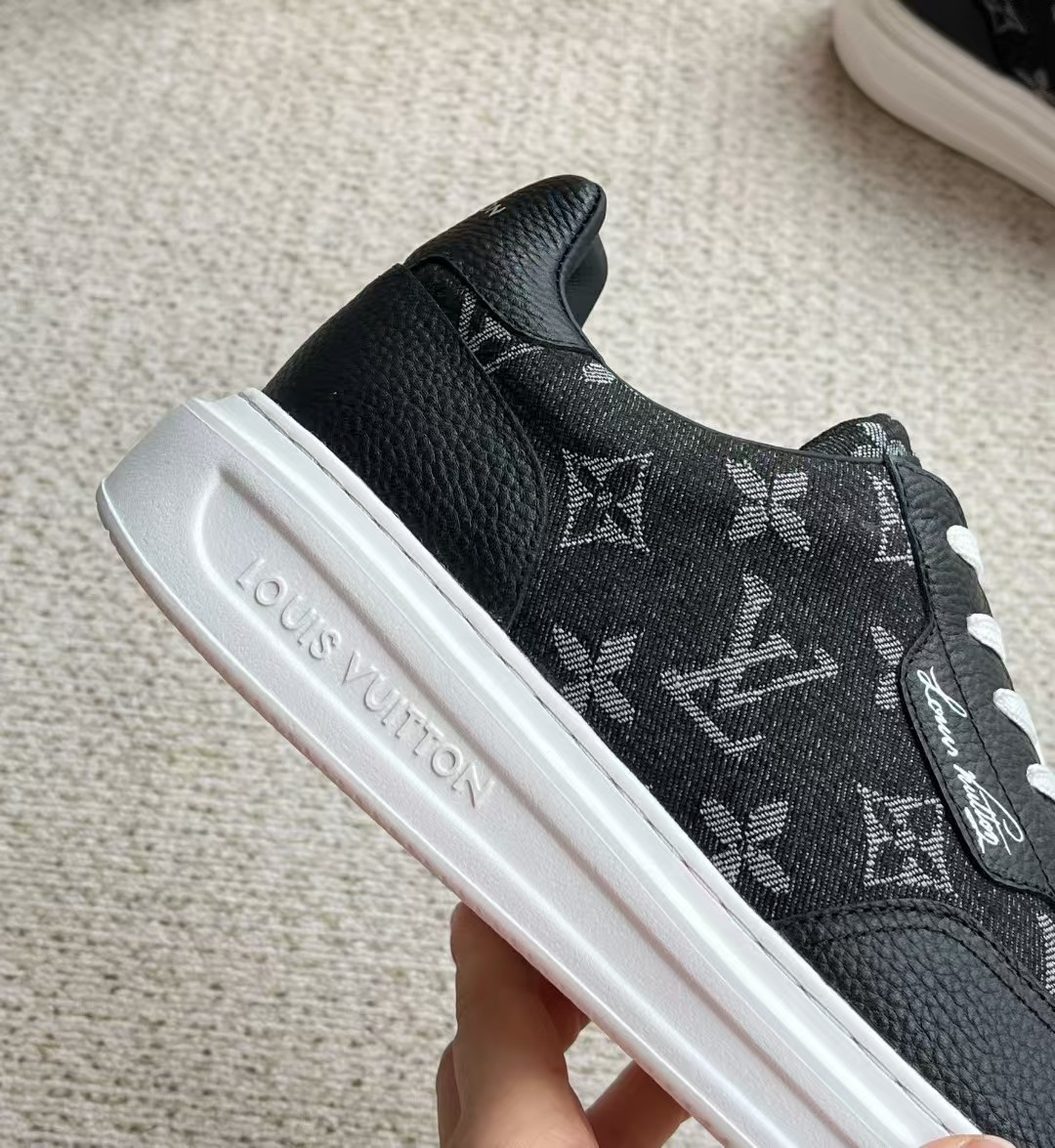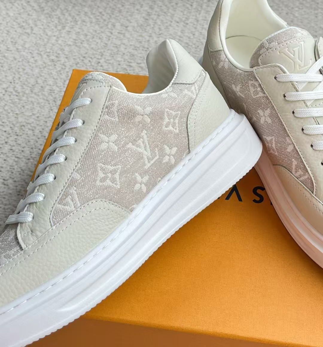介绍:本款 Beverly Hills 运动鞋以 Monogram 丹宁布和粒面牛皮革重返新季,搭配厚实而轻盈的橡胶外底,为潮流设计融入舒适体验。Monogram 丹宁布和粒面牛皮革,橡胶外底,加衬内底鞋舌、后部和外底饰有路易威登标识,侧面饰有手写体路易威登标识!面料进口定制荔枝纹牛皮拼接透气帆布 , 内里牛皮拼接透气网布,垫脚牛皮,原厂PU发泡模具logo防滑大底,底厚3.5cm,隐形2.0cm乳胶鞋垫!