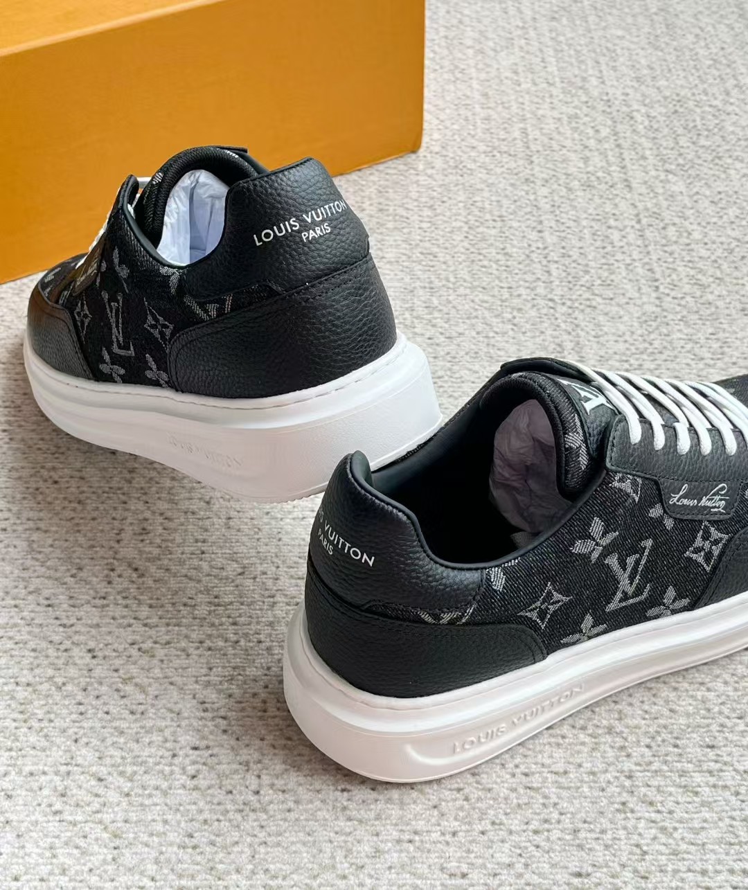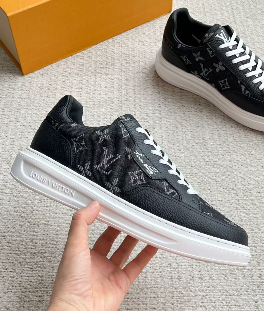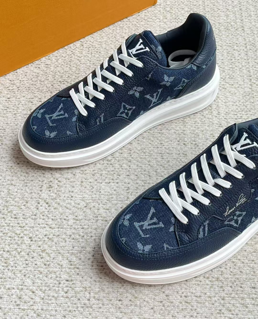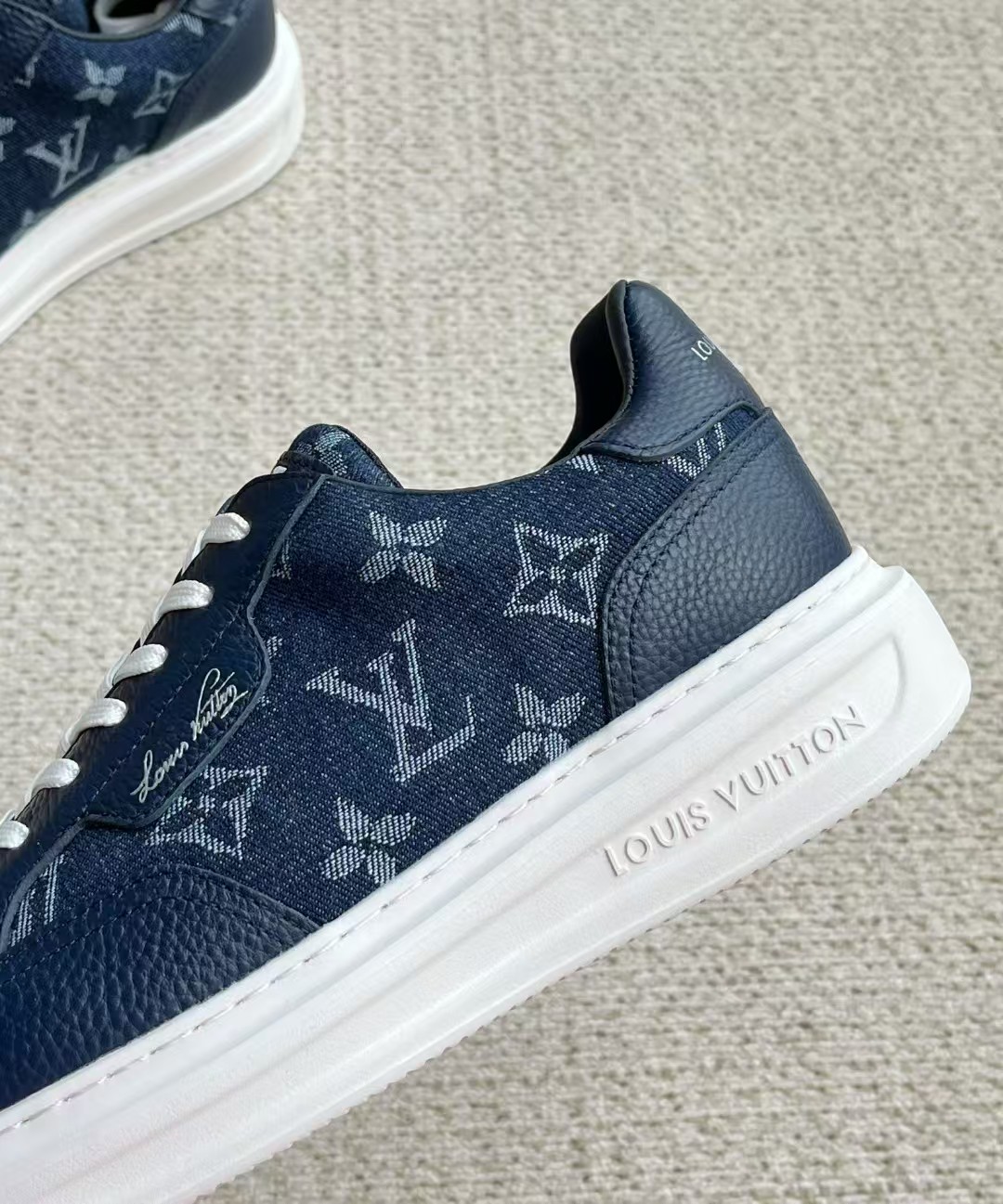 介绍:本款 Beverly Hills 运动鞋以 Monogram 丹宁布和粒面牛皮革重返新季,搭配厚实而轻盈的橡胶外底,为潮流设计融入舒适体验。Monogram 丹宁布和粒面牛皮革,橡胶外底,加衬内底鞋舌、后部和外底饰有路易威登标识,侧面饰有手写体路易威登标识!面料进口定制荔枝纹牛皮拼接透气帆布 , 内里牛皮拼接透气网布,垫脚牛皮,原厂PU发泡模具logo防滑大底,底厚3.5cm,隐形2.0cm乳胶鞋垫!