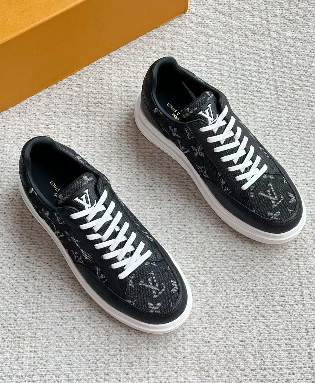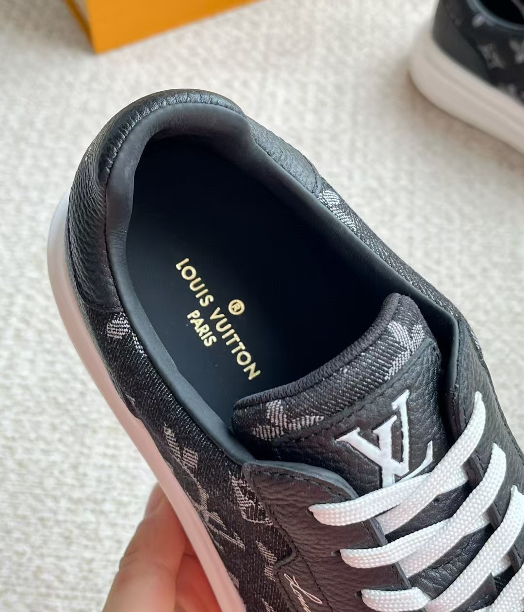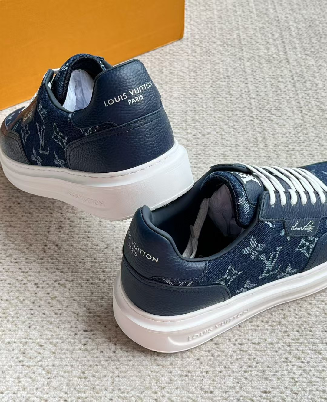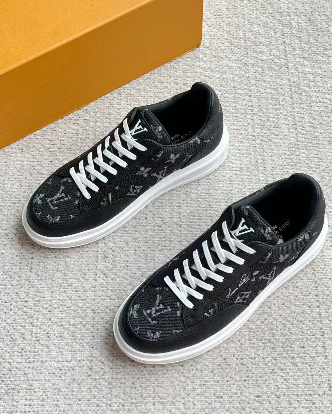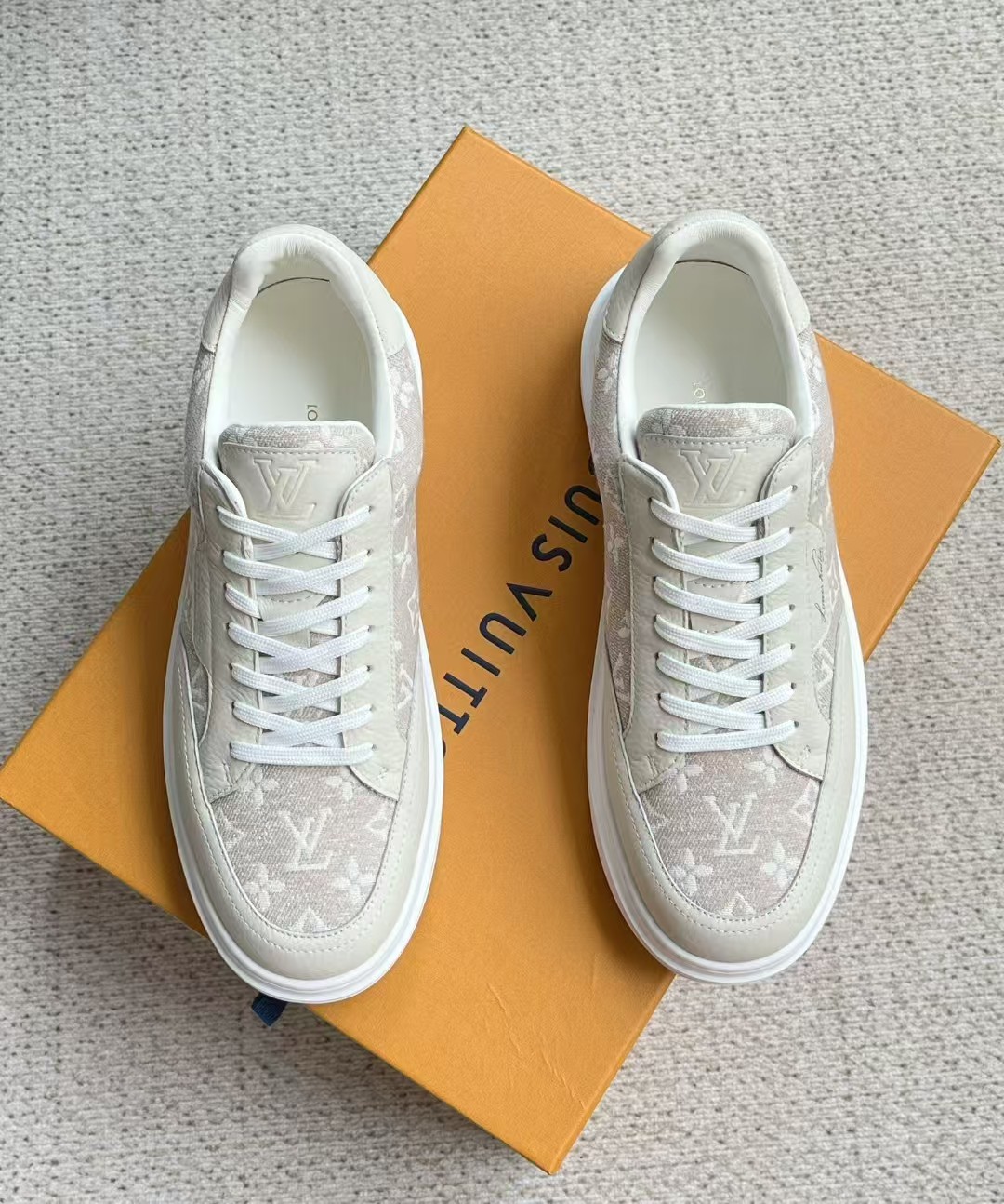 介绍:本款 Beverly Hills 运动鞋以 Monogram 丹宁布和粒面牛皮革重返新季,搭配厚实而轻盈的橡胶外底,为潮流设计融入舒适体验。Monogram 丹宁布和粒面牛皮革,橡胶外底,加衬内底鞋舌、后部和外底饰有路易威登标识,侧面饰有手写体路易威登标识!面料进口定制荔枝纹牛皮拼接透气帆布 , 内里牛皮拼接透气网布,垫脚牛皮,原厂PU发泡模具logo防滑大底,底厚3.5cm,隐形2.0cm乳胶鞋垫!
