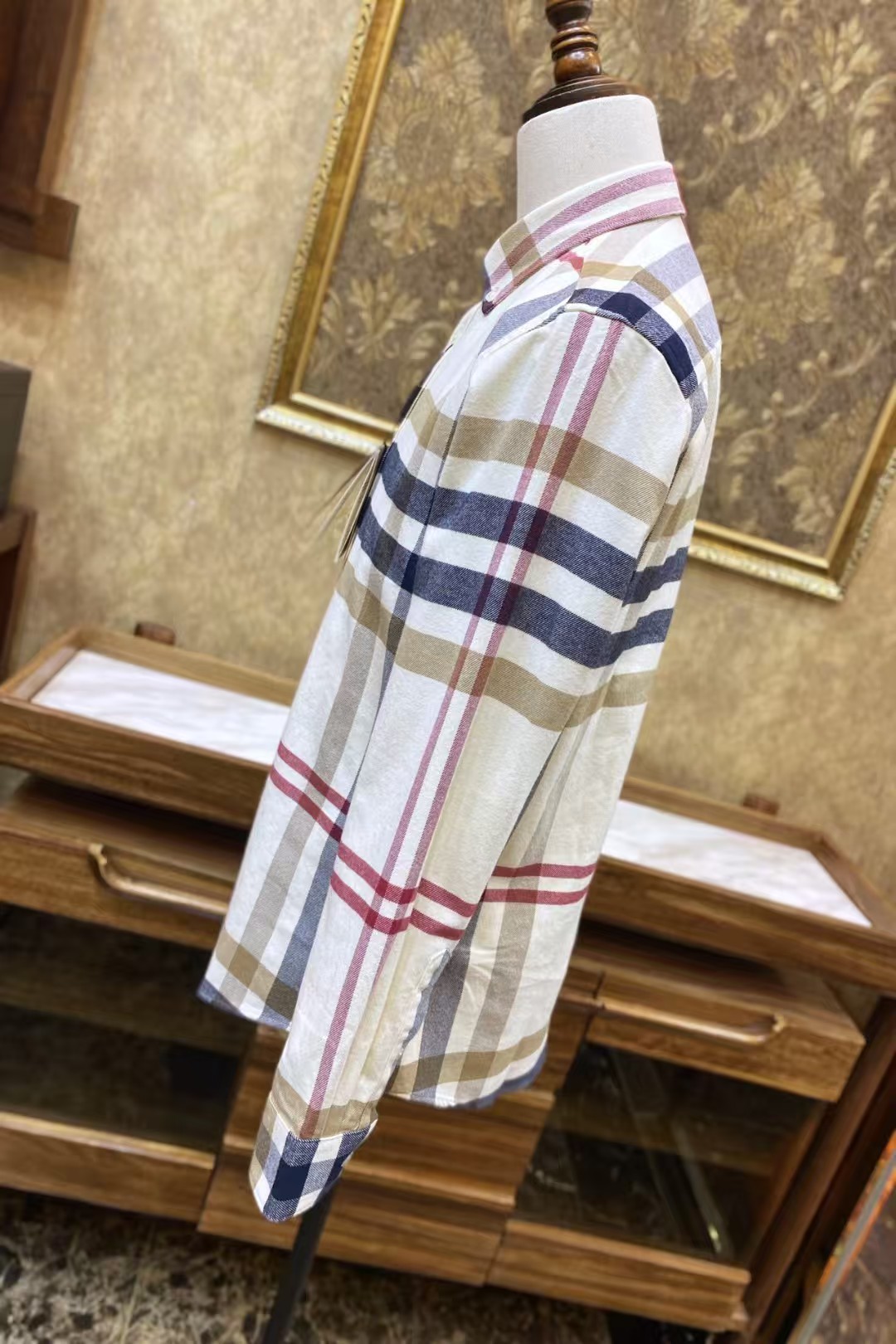 巴宝莉 奢华极致王者风范 极致细腻3D全景皇室贵族图案 专柜新品海外订单 王者风范廓型 彰显出现代又个性的时尚魅力 定制模具压制logo 极品黑蝶贝纽扣,质感细腻。