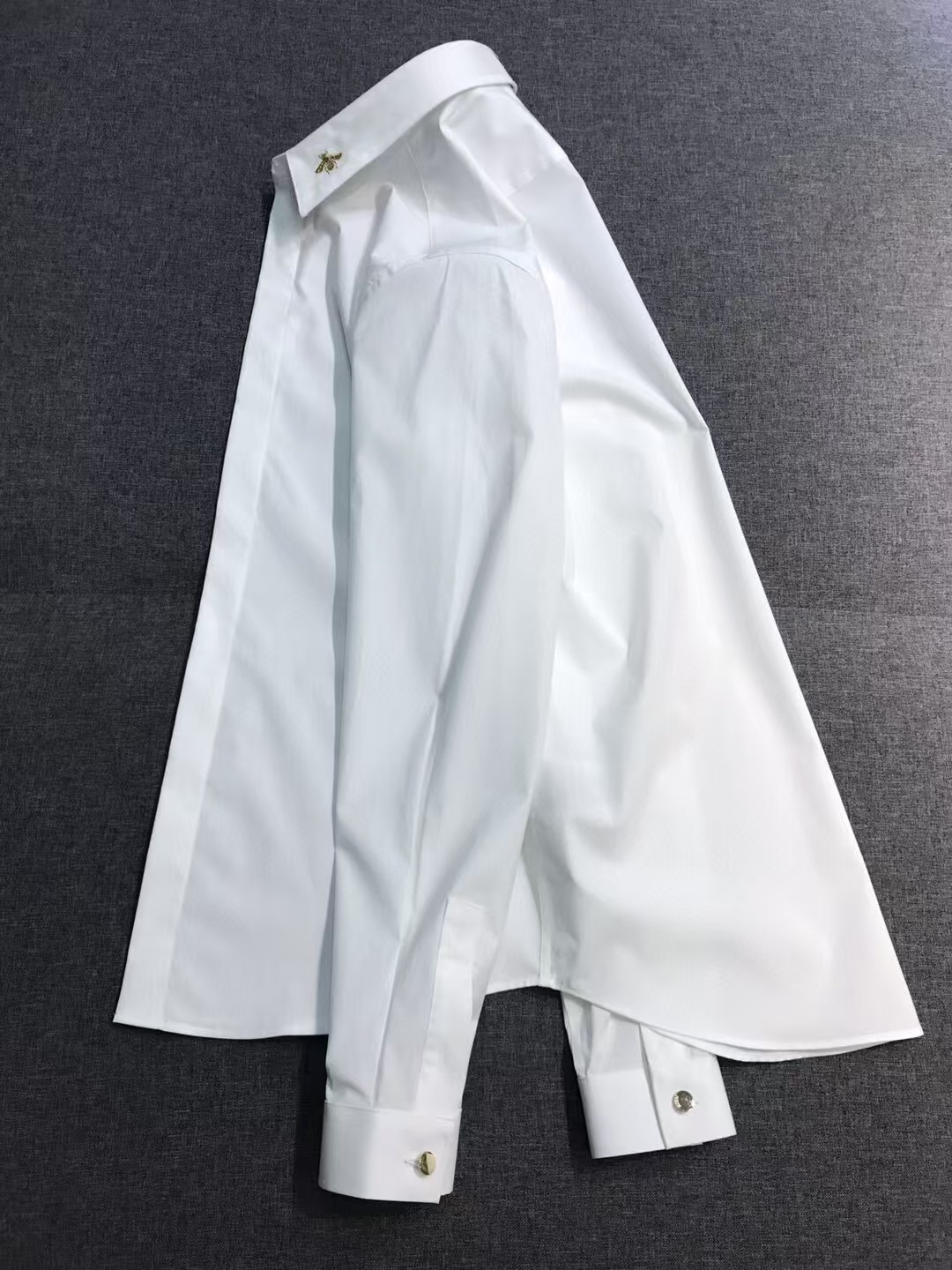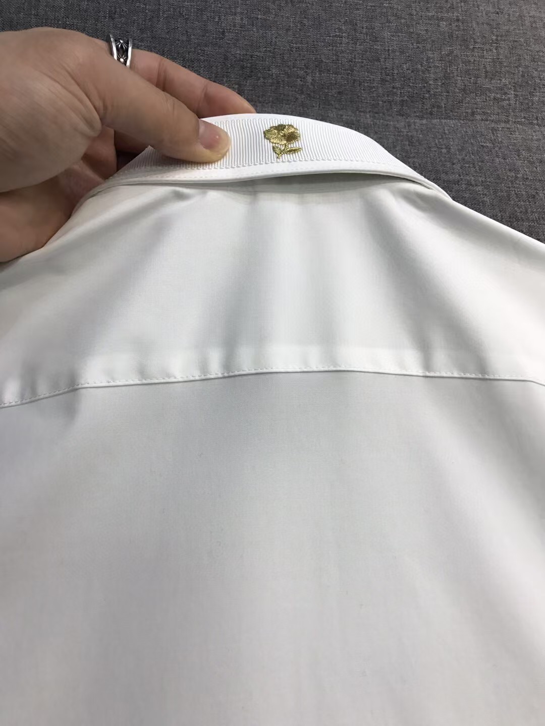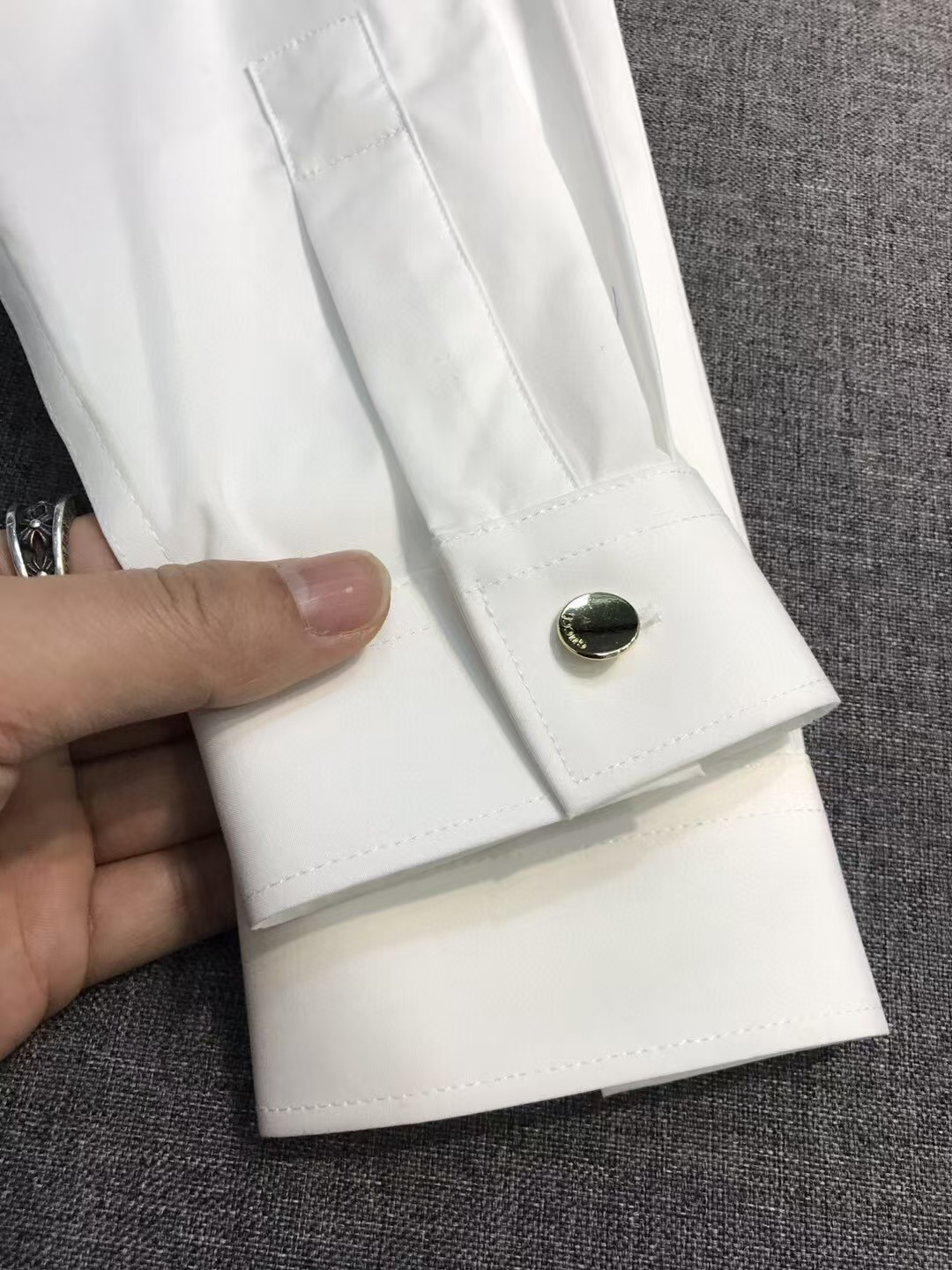 介绍: 男士时装款长袖衬衫,香港洋行渠道货,25年早春新品,经典明星级单品,高级时装秀场款,广告画册形象大片搭配款!客供甄选埃及高支白金级面料,选用光照极好的上等棉花原料,舒适性与透气性兼备,触感极为细腻,亲肤性绝佳,品相极为优等,细节精湛考究,袖部及领部搭载金属制金色袖扣体,颇为奢华且个性的体现,形成独特的符号标签!