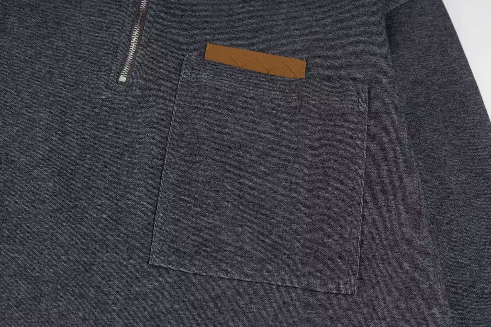 面料采用32S 330g双纱双面面料,罗纹采用32S 360g双纱拉架罗纹,以特定比例混纺,并采用双面织造工艺制成的面料,双层面料中间可形成空气层增强保暖性或透气性,正反两面使用相同织法,呈现同纹理、光泽、功能的效果。绒面皮革无涂饰层透气性优于光面皮革,质地细腻,触感类似天鹅绒。对版编织工艺需要高度的手工技巧,每一块皮革都需要经过精心挑选和编织,以确保产品的质量和美观。极简主义与高级质感,其半拉链衬衫融合了经典正装与运动休闲元素,版型设计兼具功能性和美学辨识度。拉