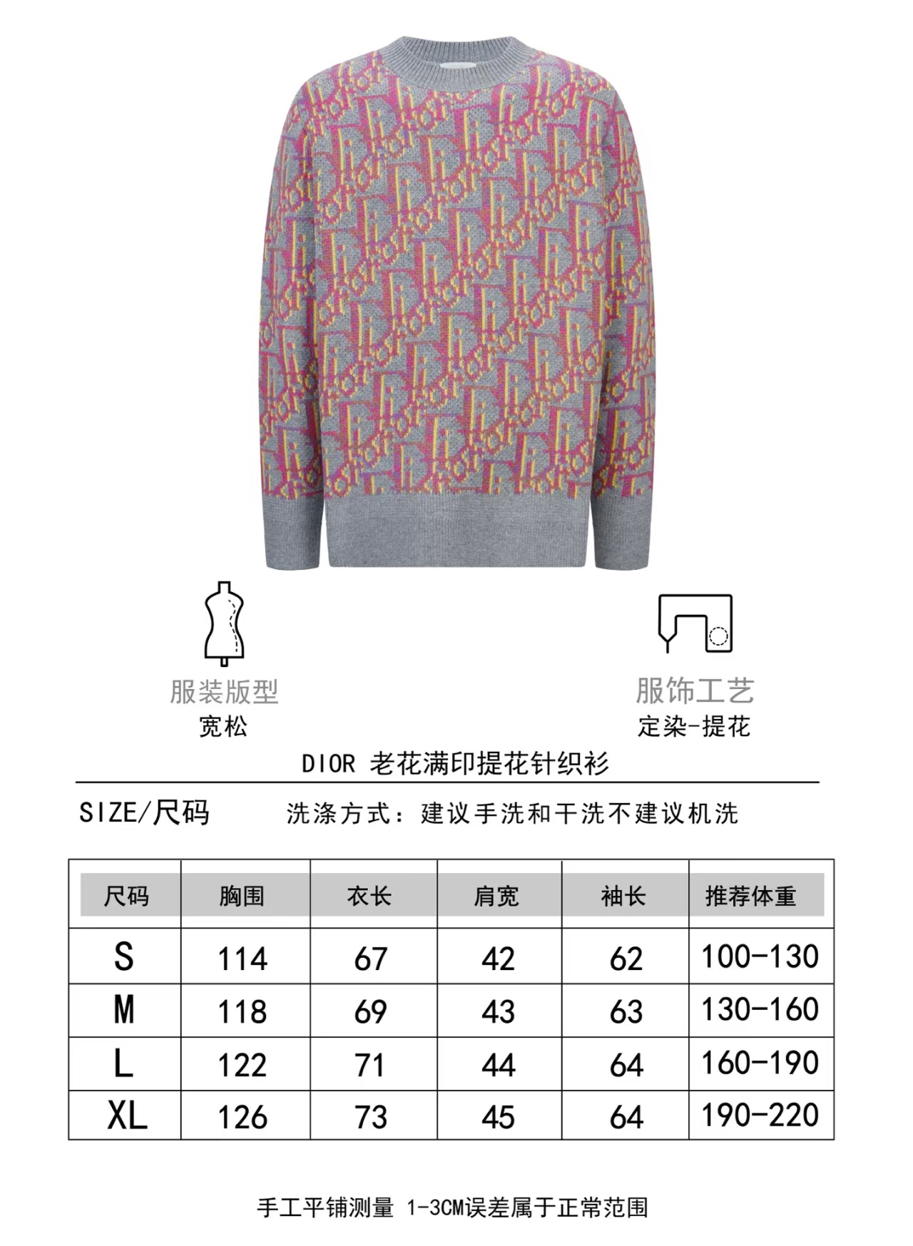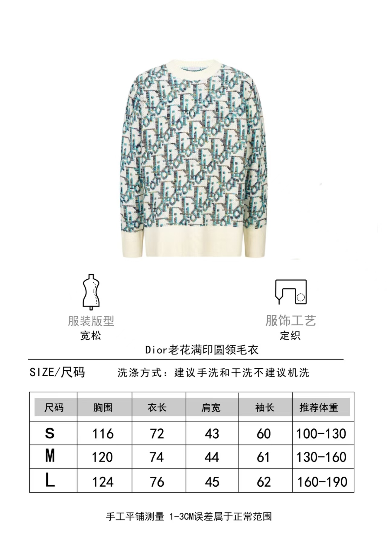 工艺:衣服成衣普洗,洗水可有效去除衣服杂味同时可增加衣服手感和固定衣服版型。这款针织衫重新诠释 Dior经典的Oblique 印花图案。采用绵羊毛提花面料精心制作,搭配罗纹细节,打造经典廓形。可与各式装扮搭配,彰显个性。