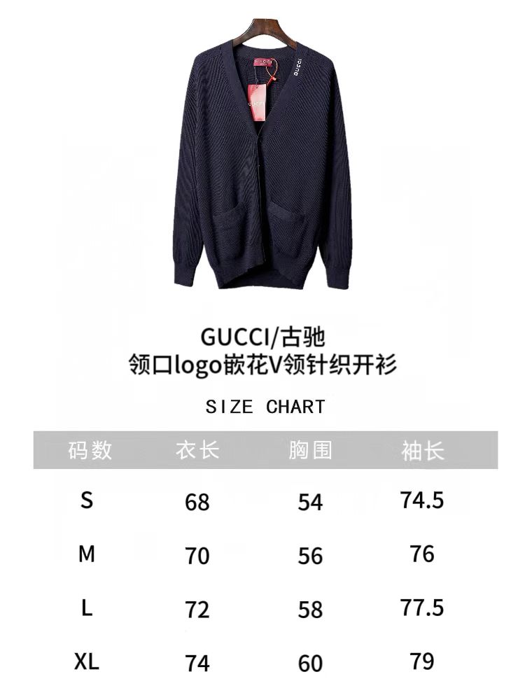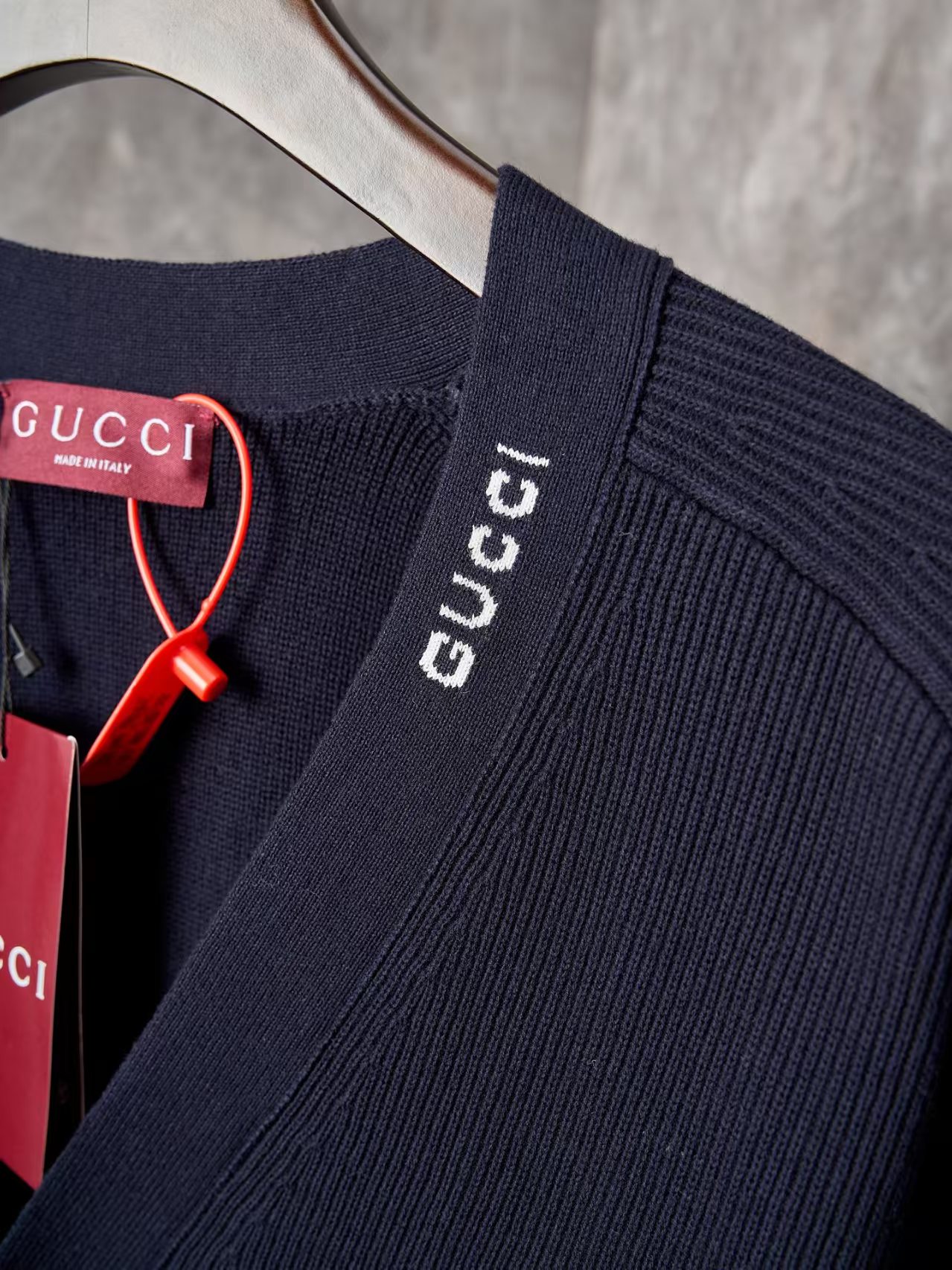 介绍:GUCCI/古驰 领口logo嵌花V领针织开衫