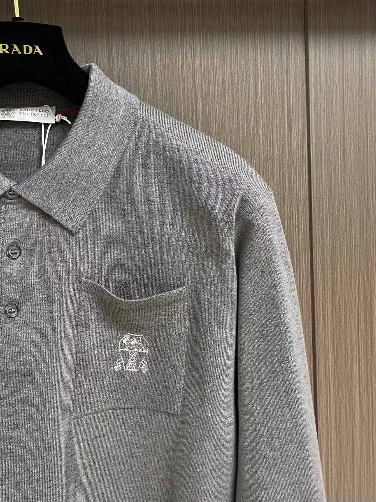 介绍:BrunelloCucinelli布鲁内洛.库奇内利 BC 长袖针织POLO衫 看似简约的设计 领口与袖口的细节 绝非也一般工厂能够完成 领口一粒扣点缀 天然贝壳扣 筛选优质无缺贝壳后经过特别的工艺处理让每一颗 光泽有质感 合体的剪裁 袖口采用衬衫式的做法 商务通勤 内搭更具搭配性。