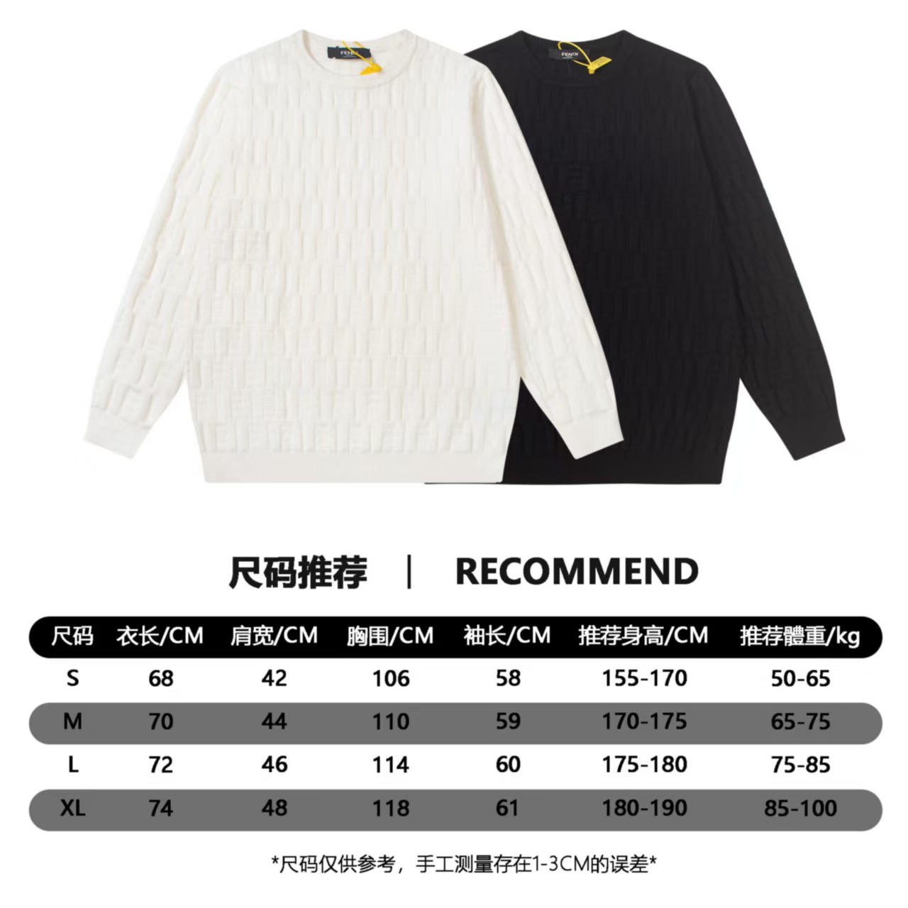 介绍:新品爆款FENDI芬迪,独家新款,独特双F提花Logo凹凸鲜明真的特别棒, 随便搭什么都时尚感倍佳 做工细节方面与官网 同步 绝对不起球 不扎身 摸起来手感超级舒服 版型特别舒适 颜值超级高 颜色搭配美极了 做工超细致 强烈推荐,可对比市场的品质 不怕货比三家.