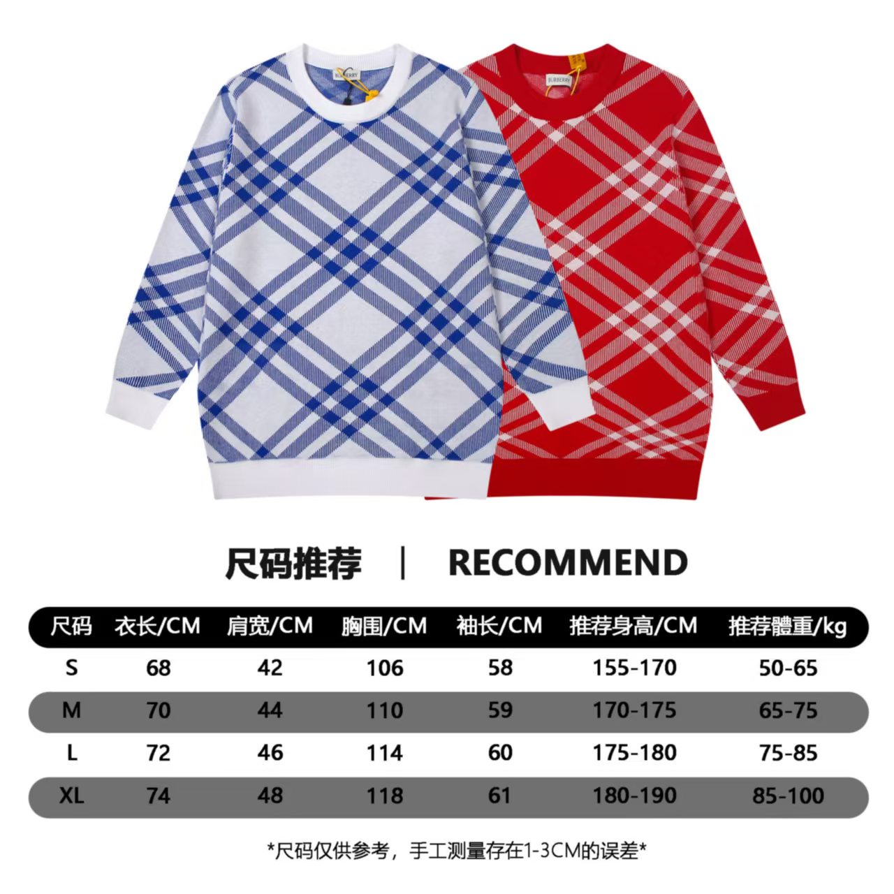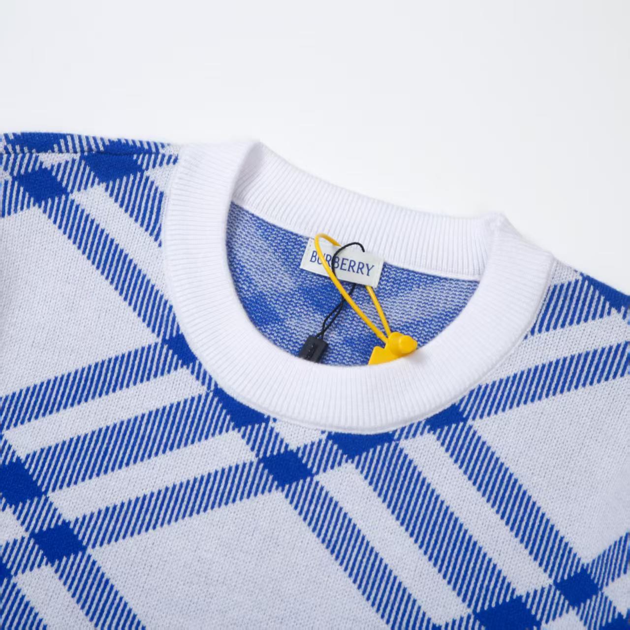BURBERRY 博柏利 拼色斜格纹圆领卫衣 羊绒混纺羊毛针织衫 男女同款
