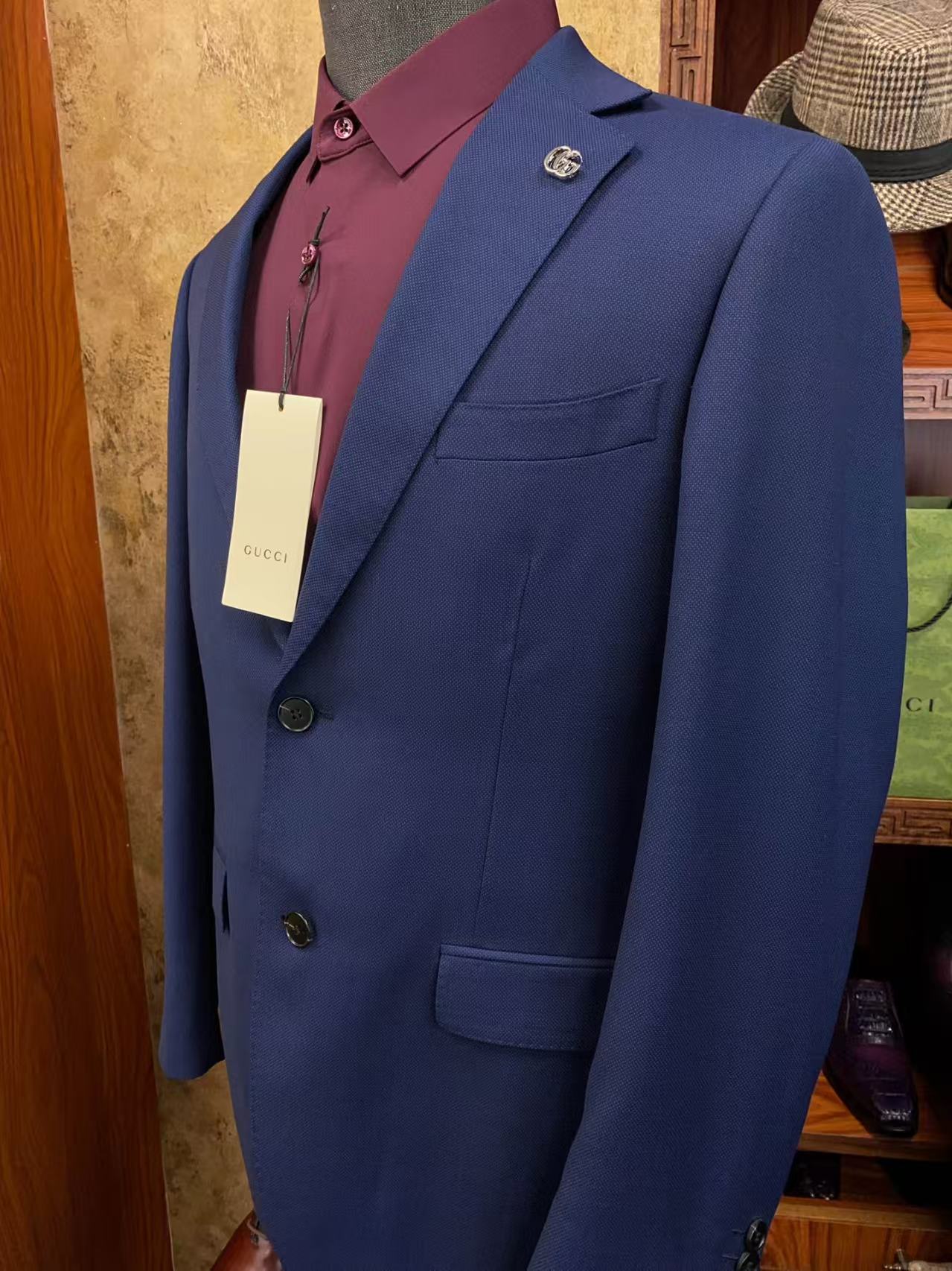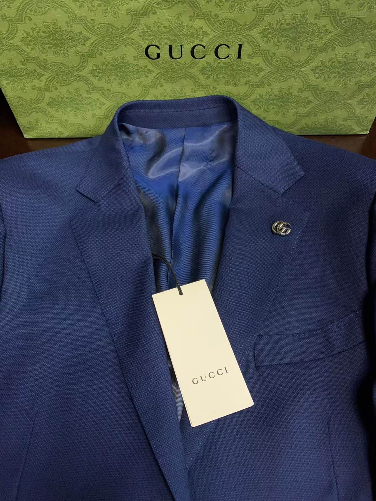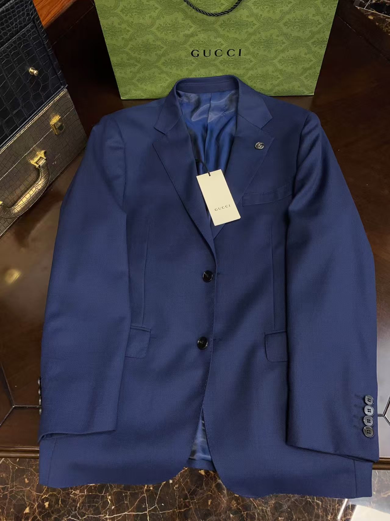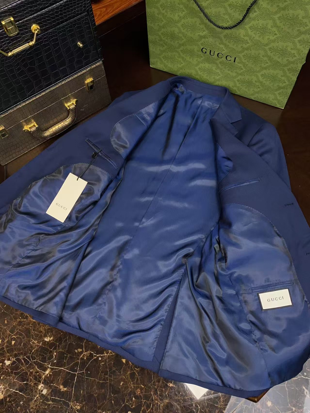 介绍:GuCCi 【两件套 西装+西裤】含50%羊毛 40%涤 10%竹纤维 都是狠料 !