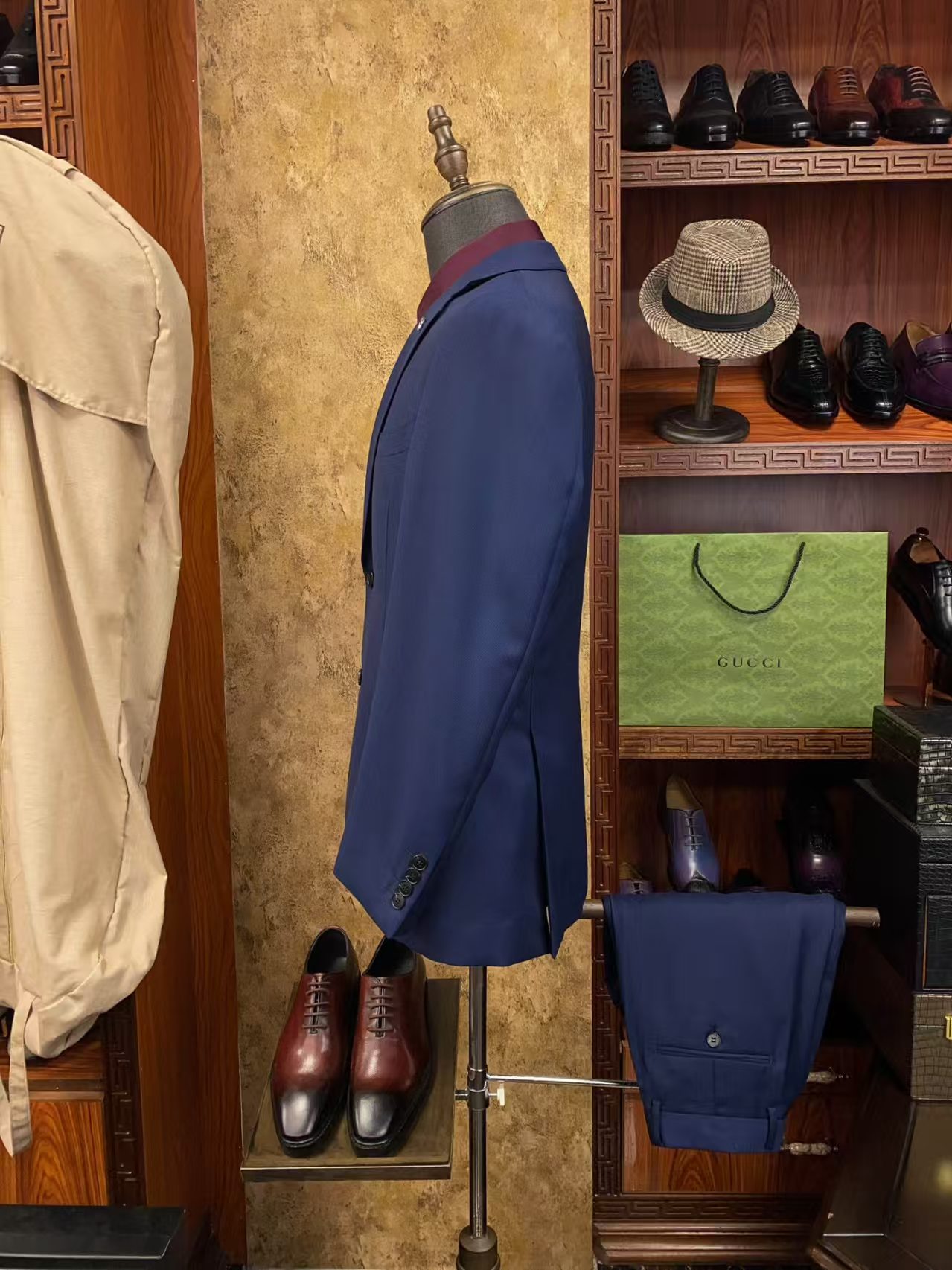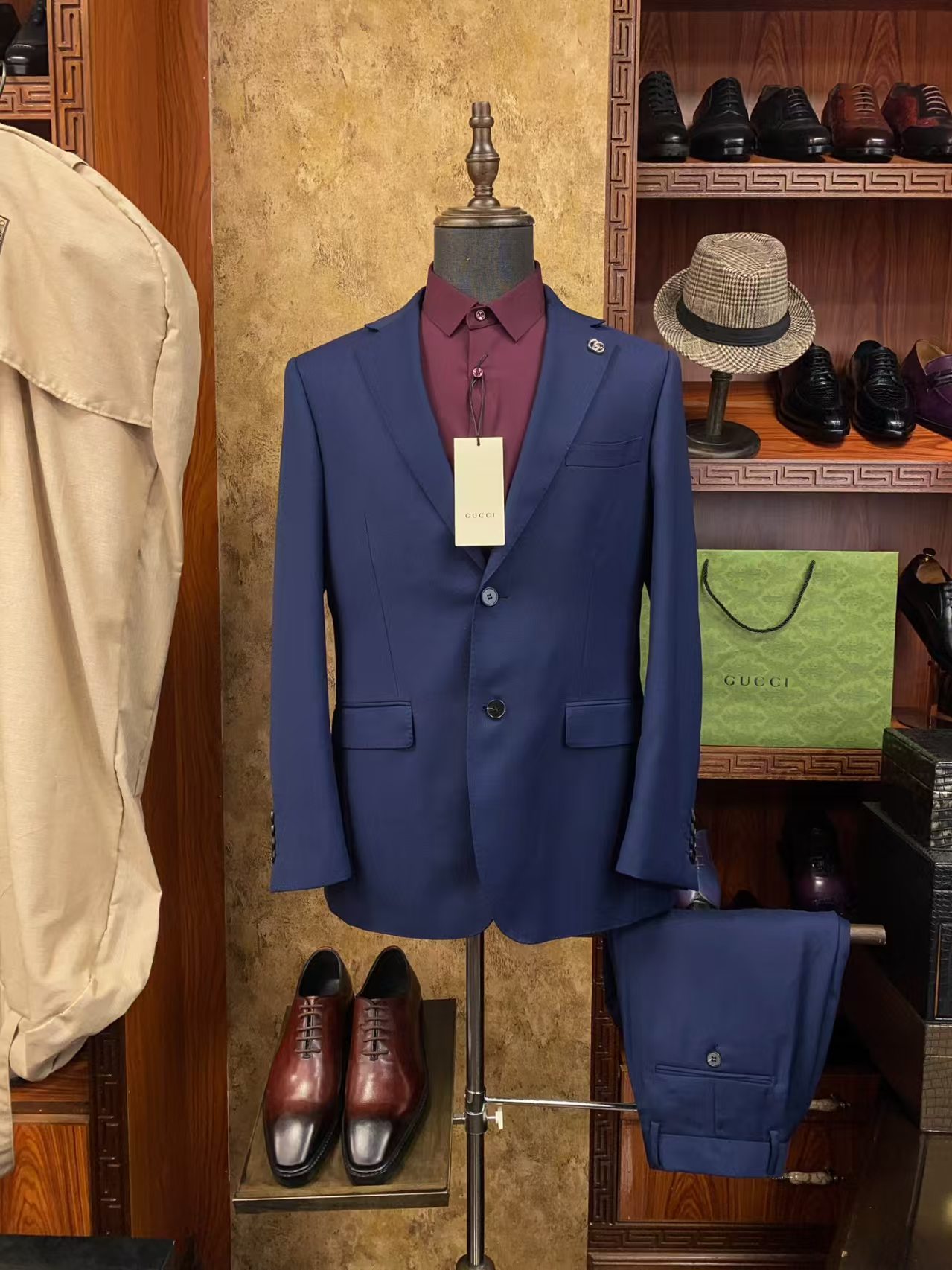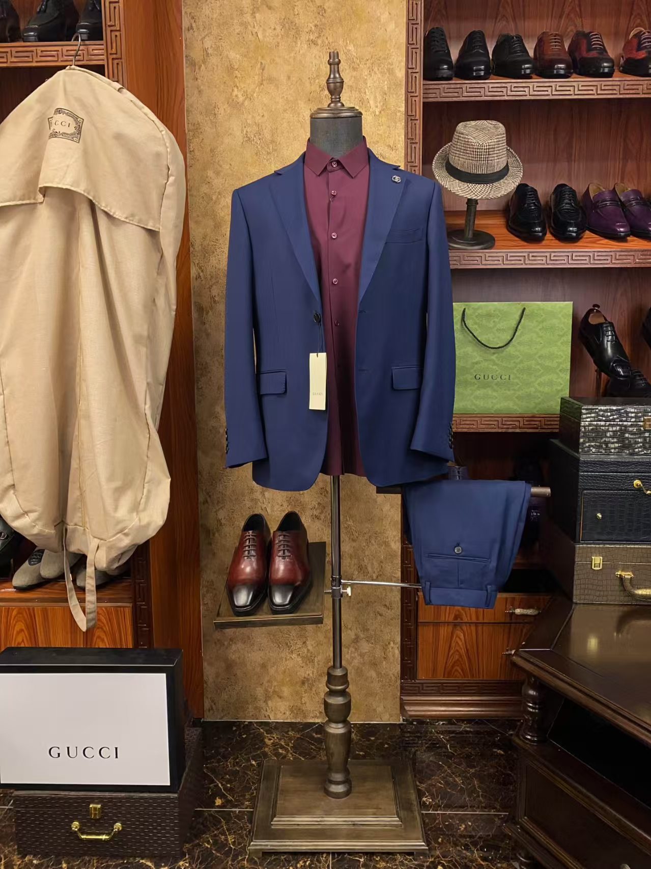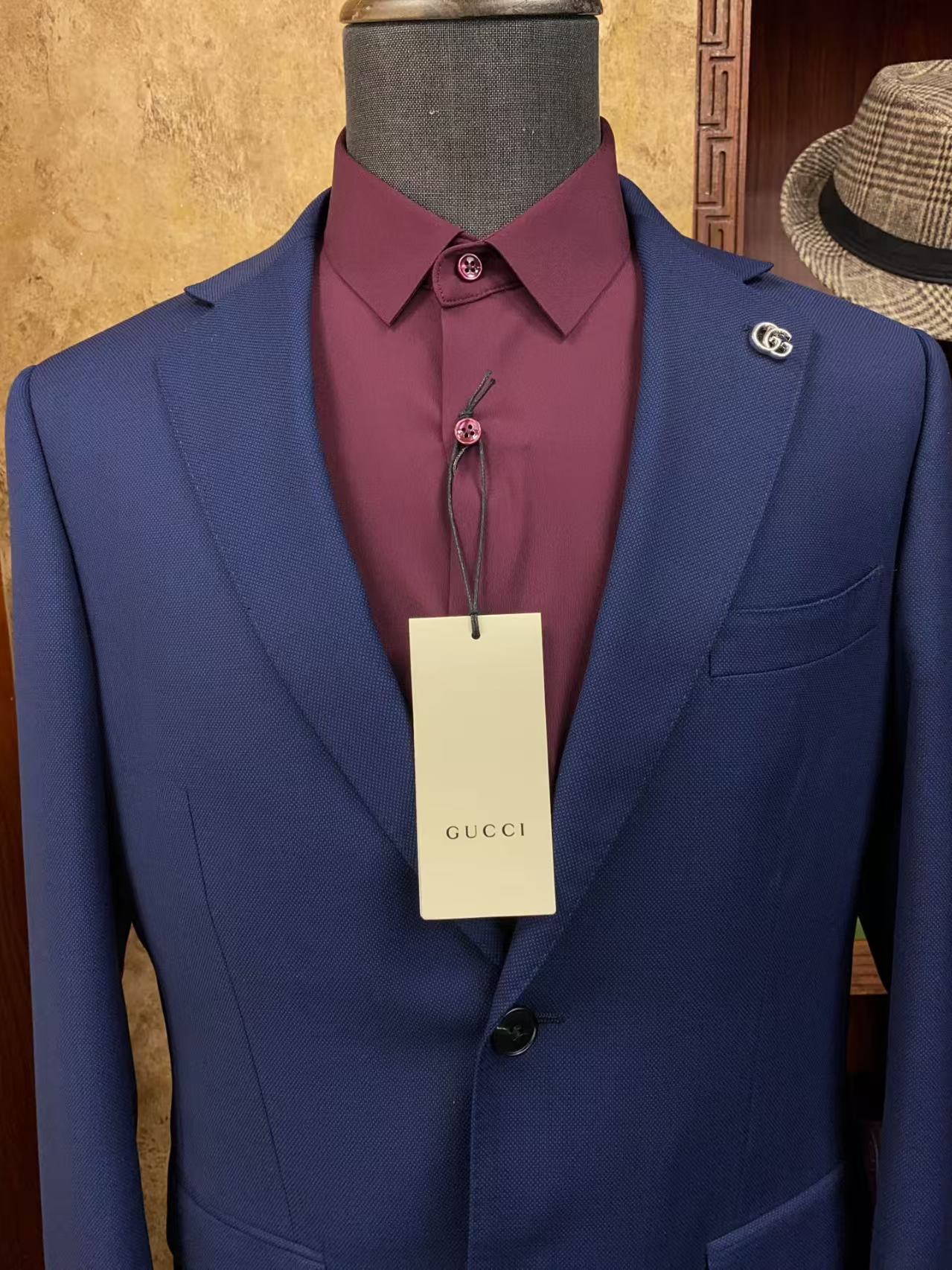 介绍:GuCCi 【两件套 西装+西裤】含50%羊毛 40%涤 10%竹纤维 都是狠料 !
