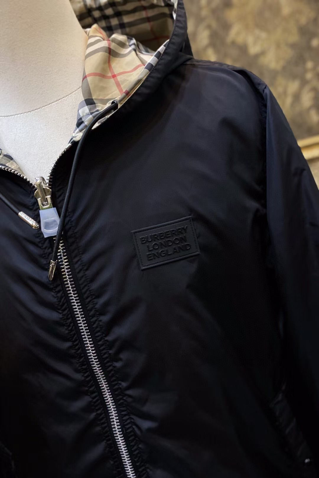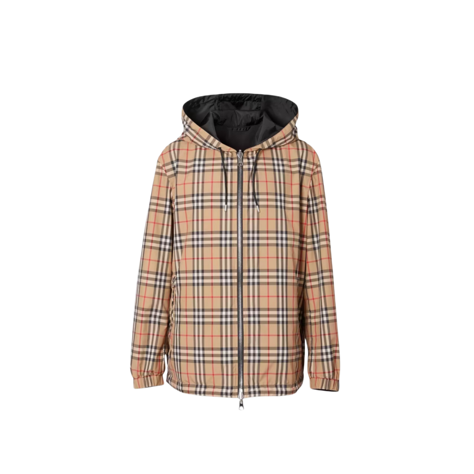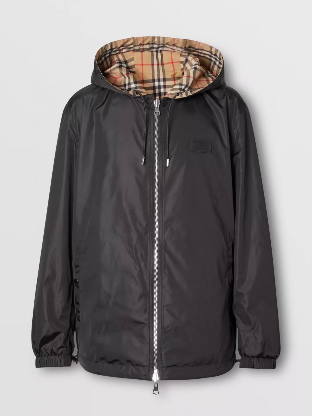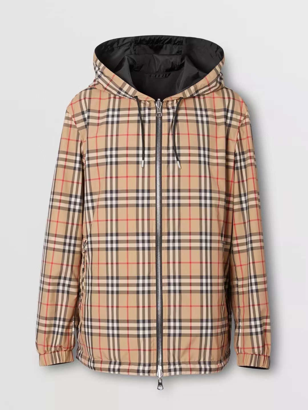 BURBERRY 博柏利 男女同款 vintage经典双面穿黑色格子 拉链连帽夹克