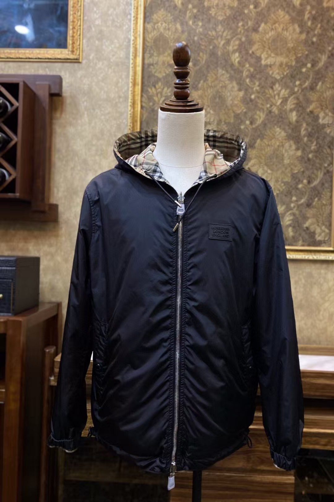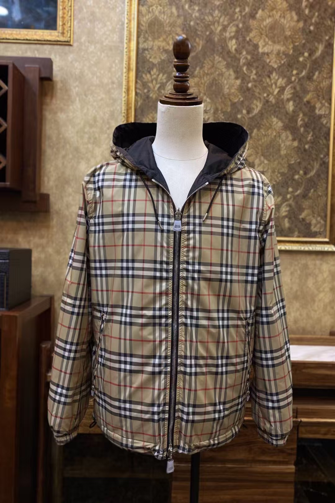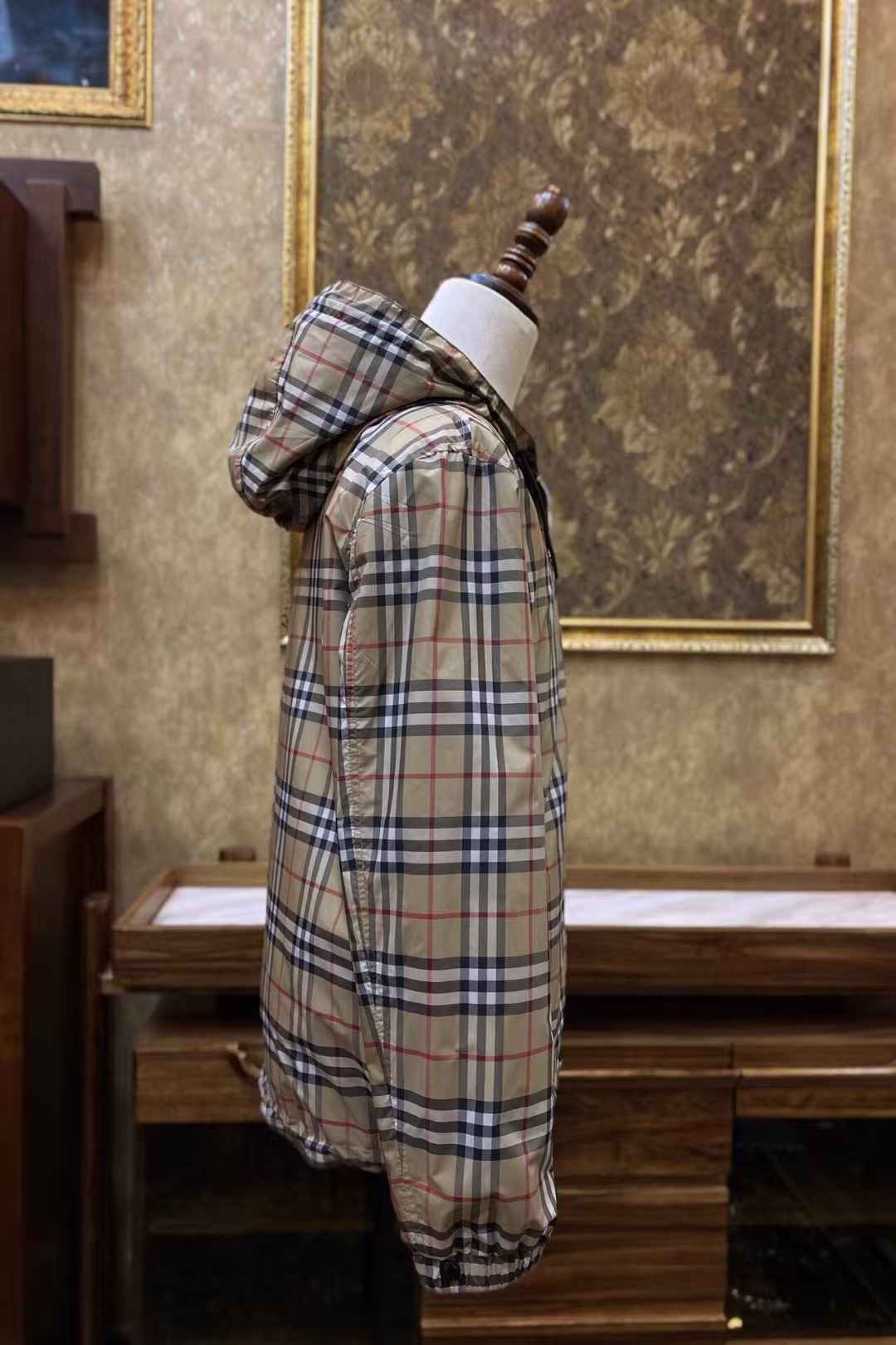 BURBERRY 博柏利 男女同款 vintage经典双面穿黑色格子 拉链连帽夹克