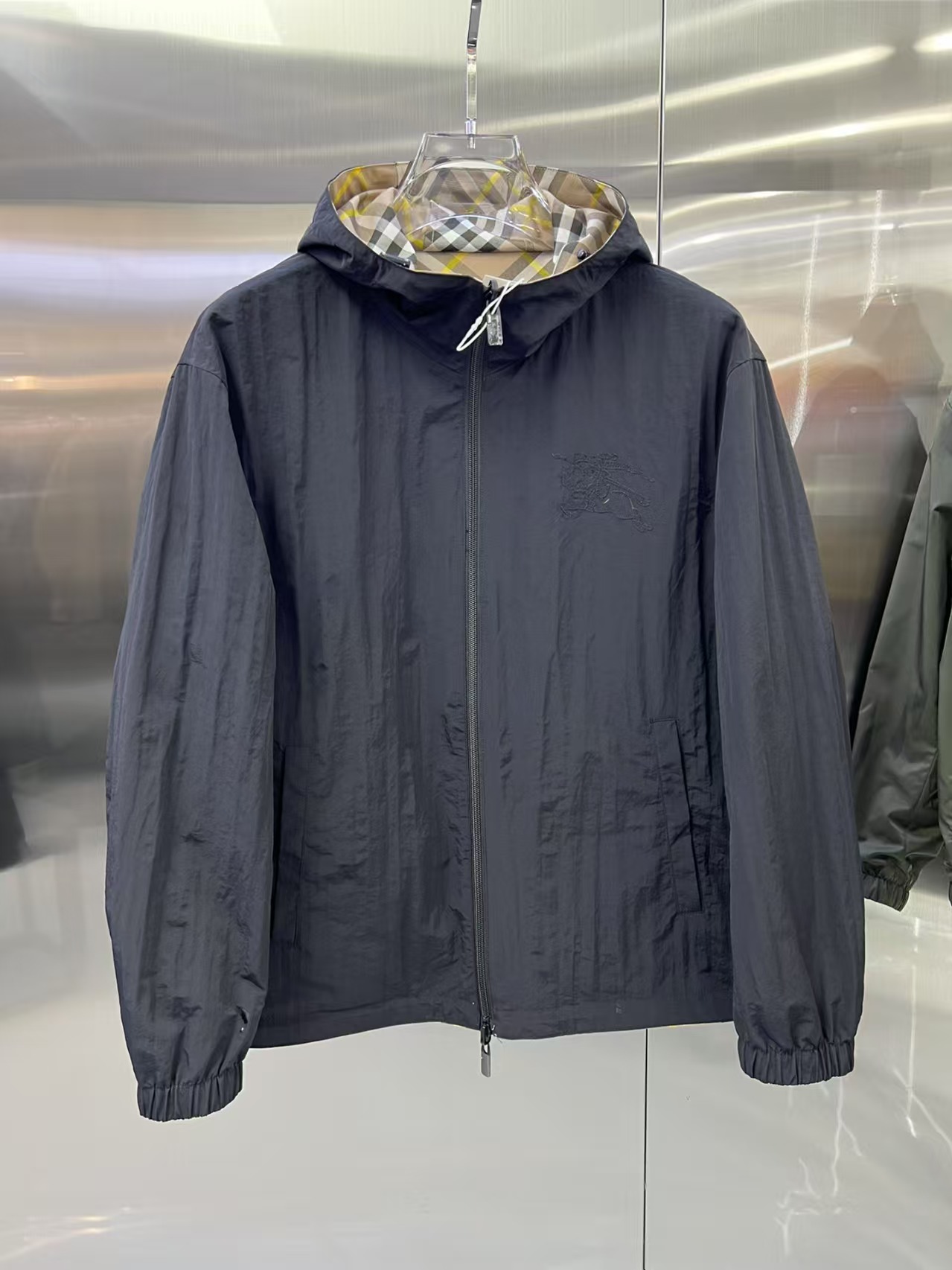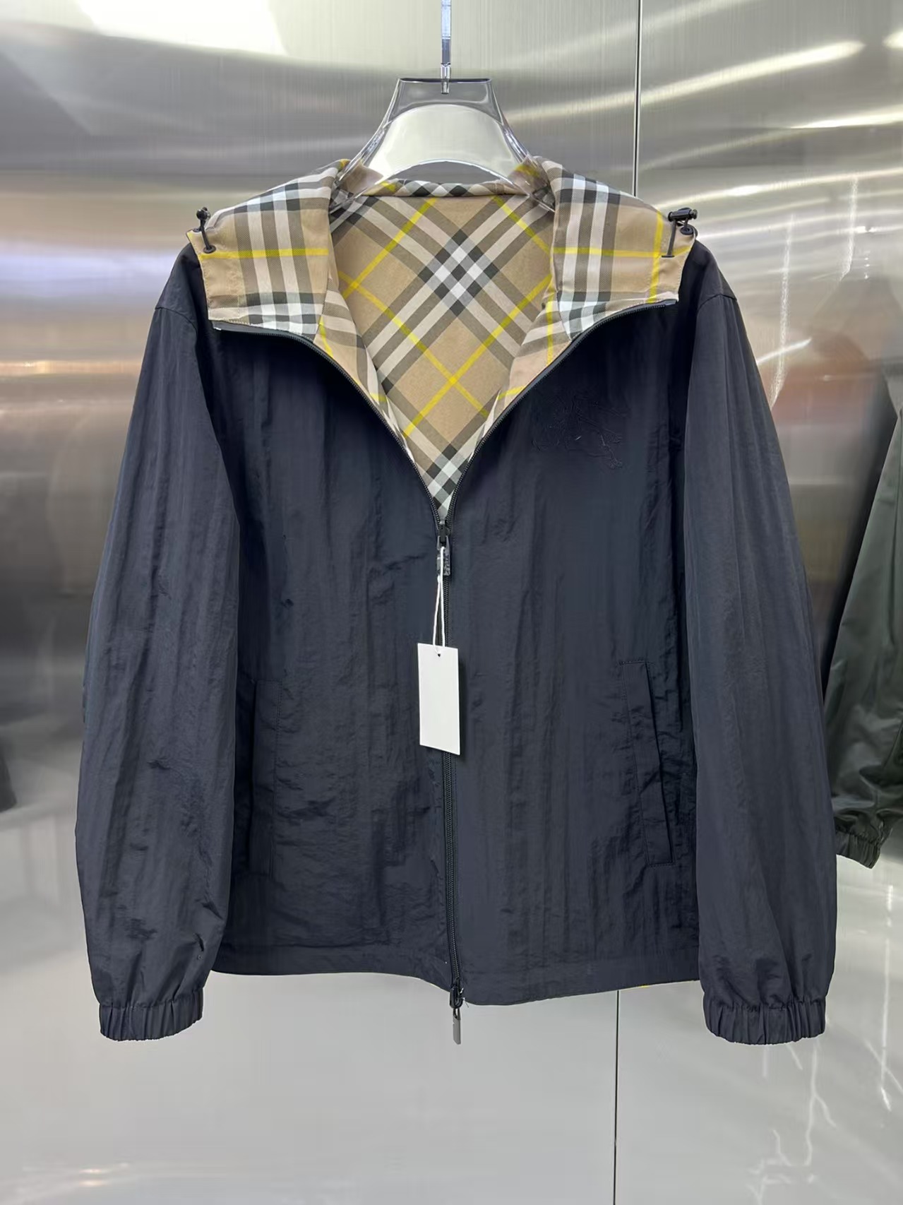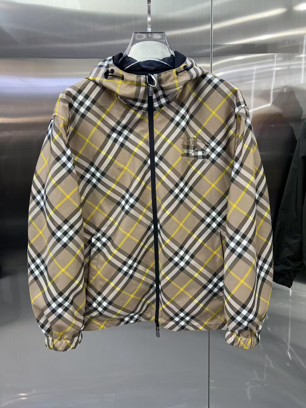 介绍:官网同步,原版订制聚酯纤维面料,面净版设计,背面设计经典格子双面穿,戴帽设计更防风保暖,衣襟拉链设计保暖性更强,胸前品牌Logo标志彰显品牌特征,系列管网最新夹克款简约不简单的设计,原厂五金辅料,潮流时尚高档人士必留版!