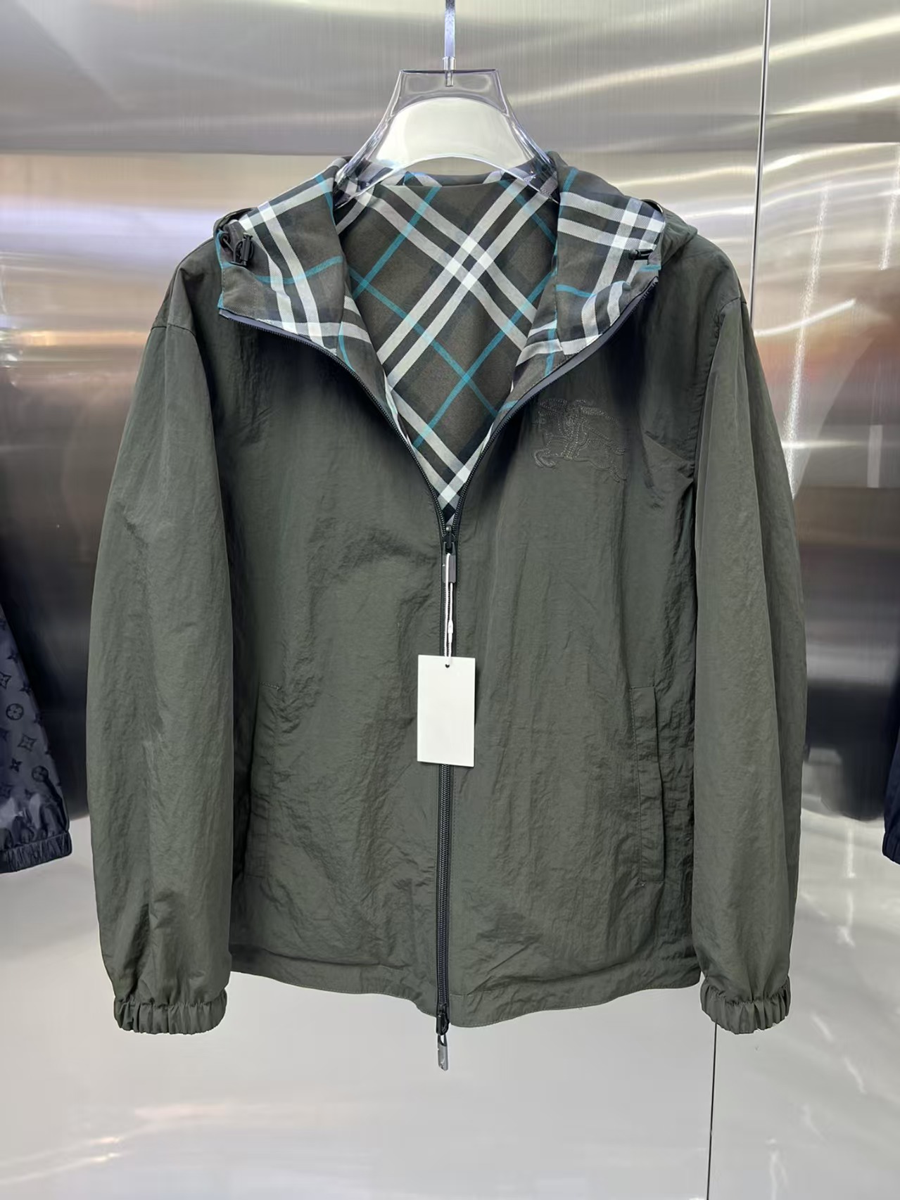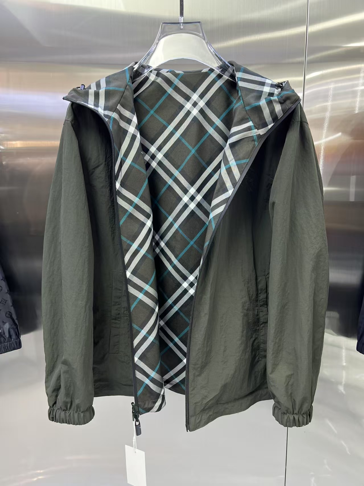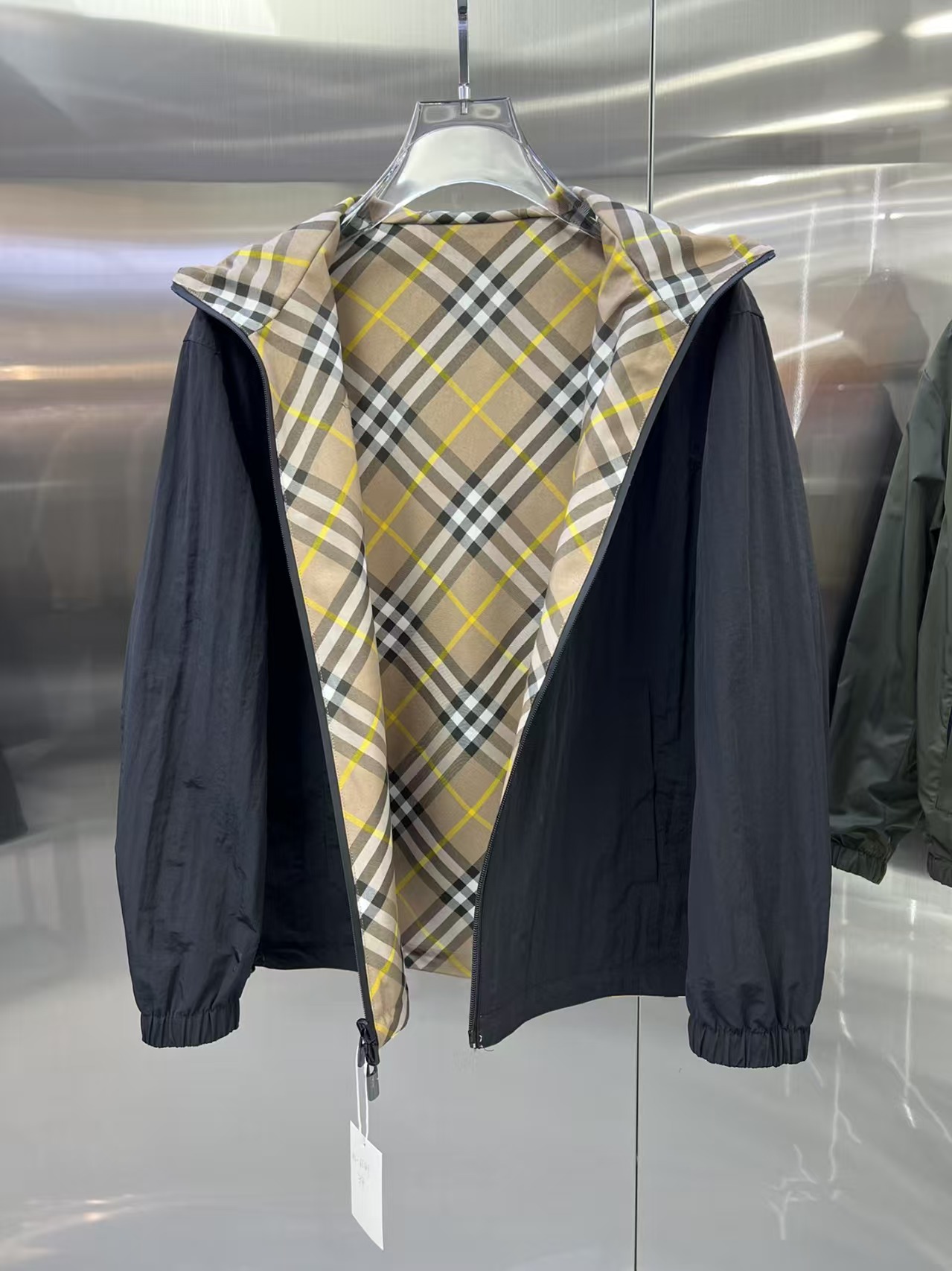 介绍:官网同步,原版订制聚酯纤维面料,面净版设计,背面设计经典格子双面穿,戴帽设计更防风保暖,衣襟拉链设计保暖性更强,胸前品牌Logo标志彰显品牌特征,系列管网最新夹克款简约不简单的设计,原厂五金辅料,潮流时尚高档人士必留版!