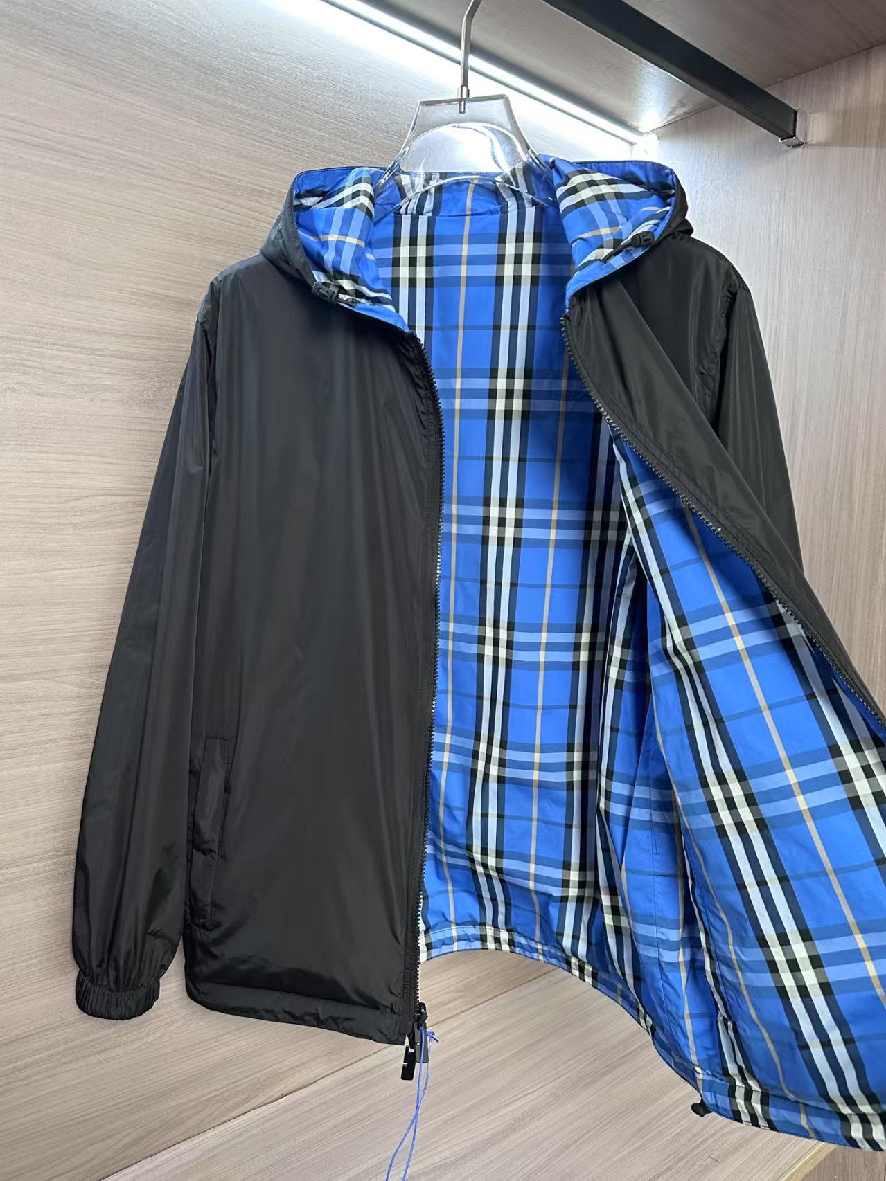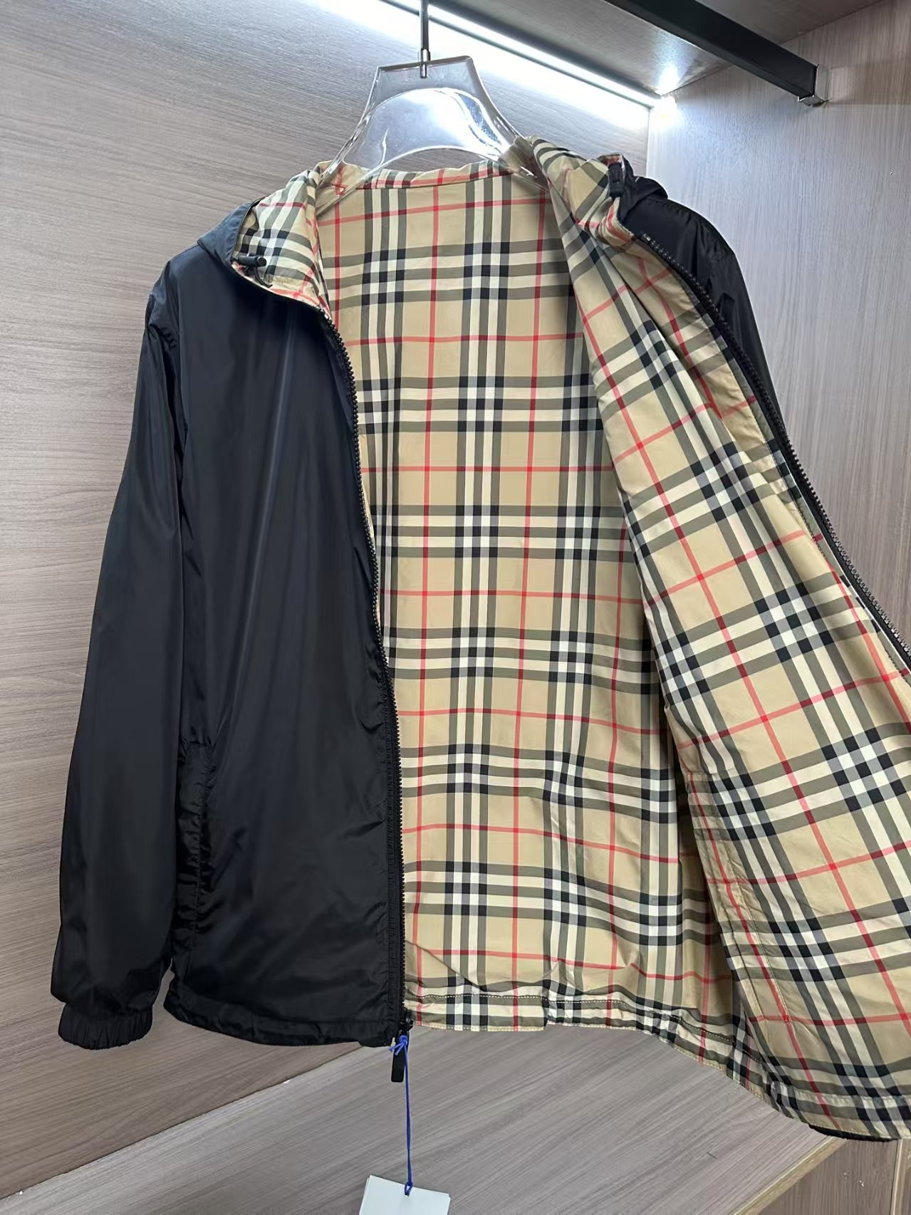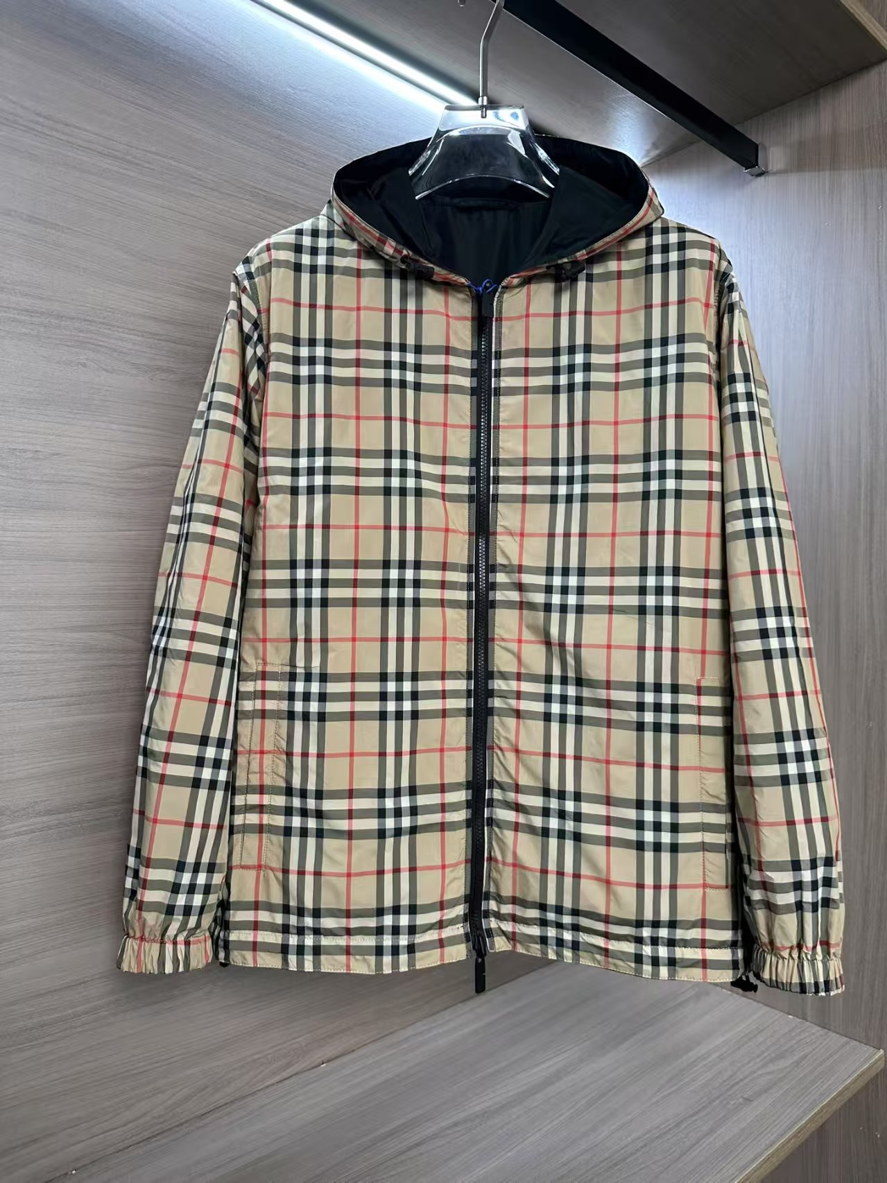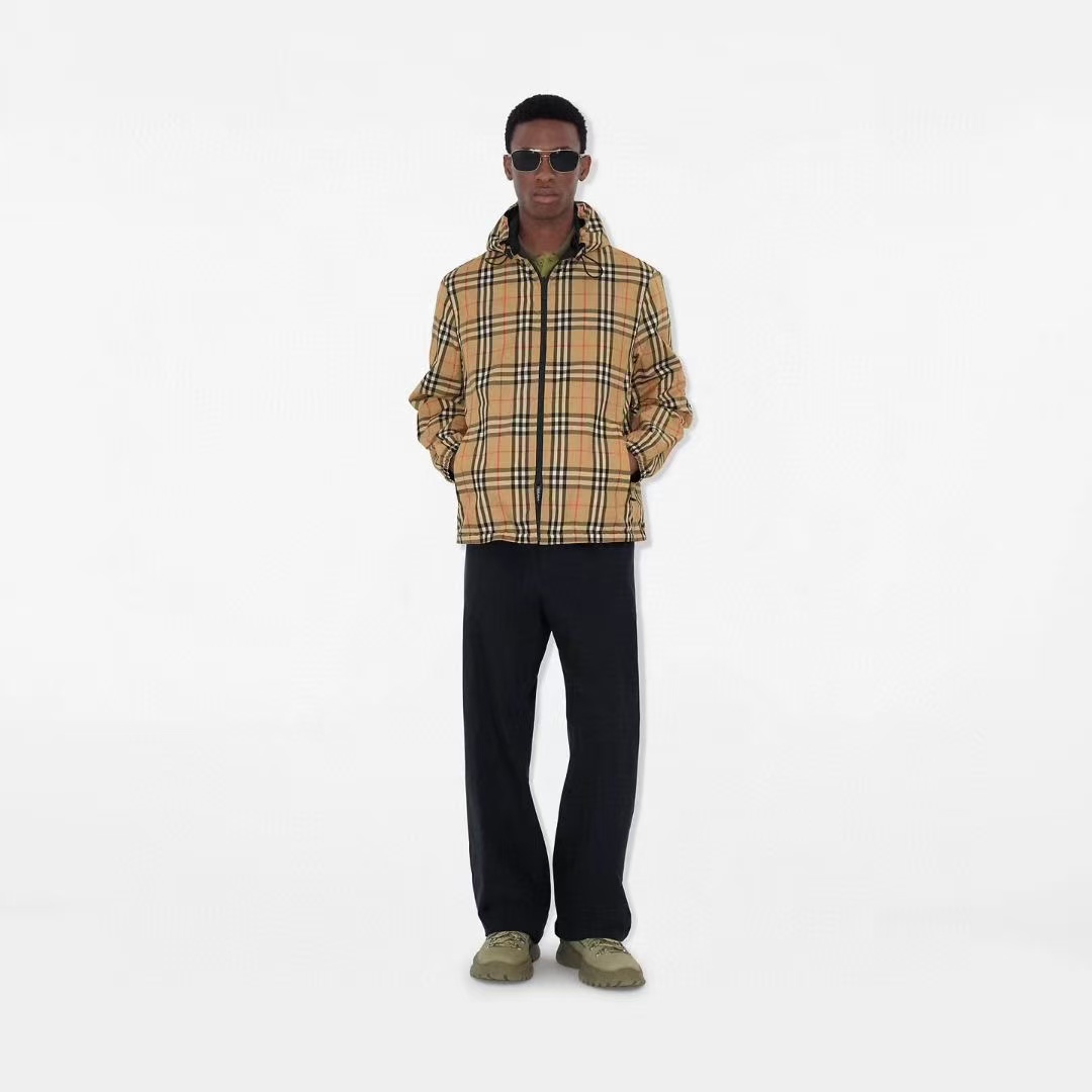 介绍:爆款25FW秋冬新款双面连帽轻盈外套,一面装饰 Burberry 格纹,另一面采用纯色尼龙面料,搭配品牌徽标贴花。设有连帽,呈现休闲版型。双向拉链开合,抽绳式连帽与衣摆,拉链侧袋;反面拉链口袋
