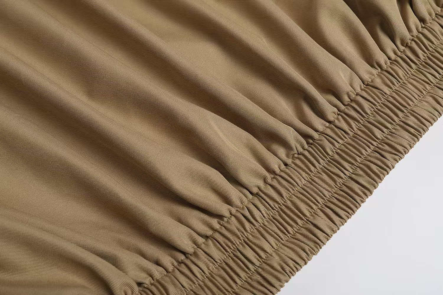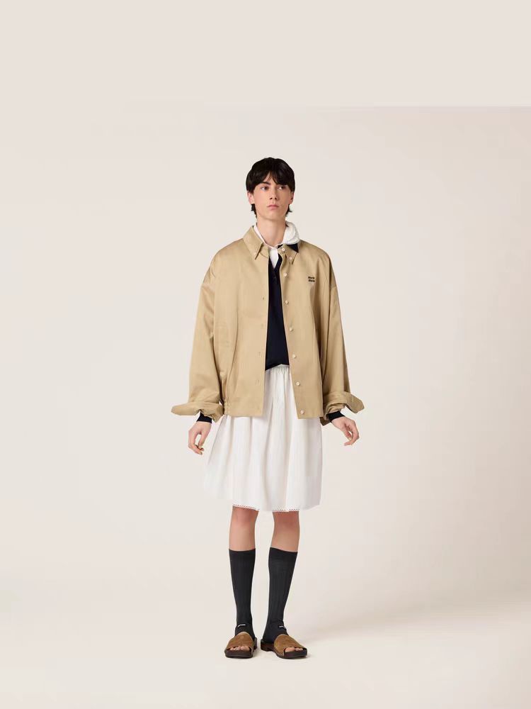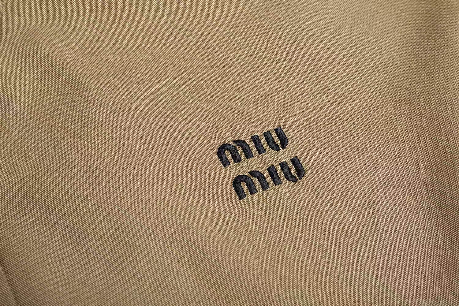 面料采用定制定染双梭幻纹材质料以及棉韵天丝素纹里衬布 温润醇厚柔软丝滑舒适贴肤,以卡其底色采用进口刺绣工艺实现MiuMiu刺绣作业 精度高线条,流畅而细腻。下摆采用三针像筋拉腰机一次而成。利用机器的特殊针位和送料机构 将松紧带与布料在同一工序中缝合在一起 三针的设计更加牢固 能够均匀地分布压力 确保松紧带与布料紧密贴合。
