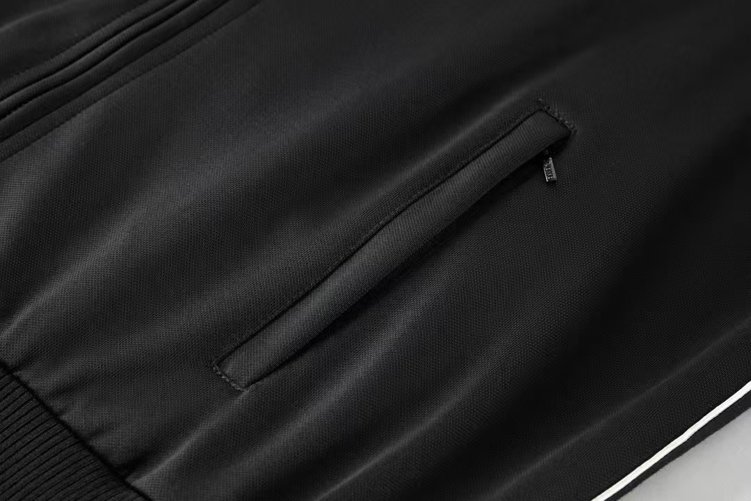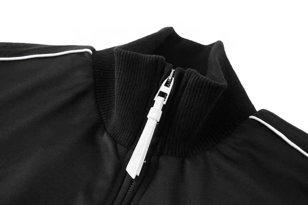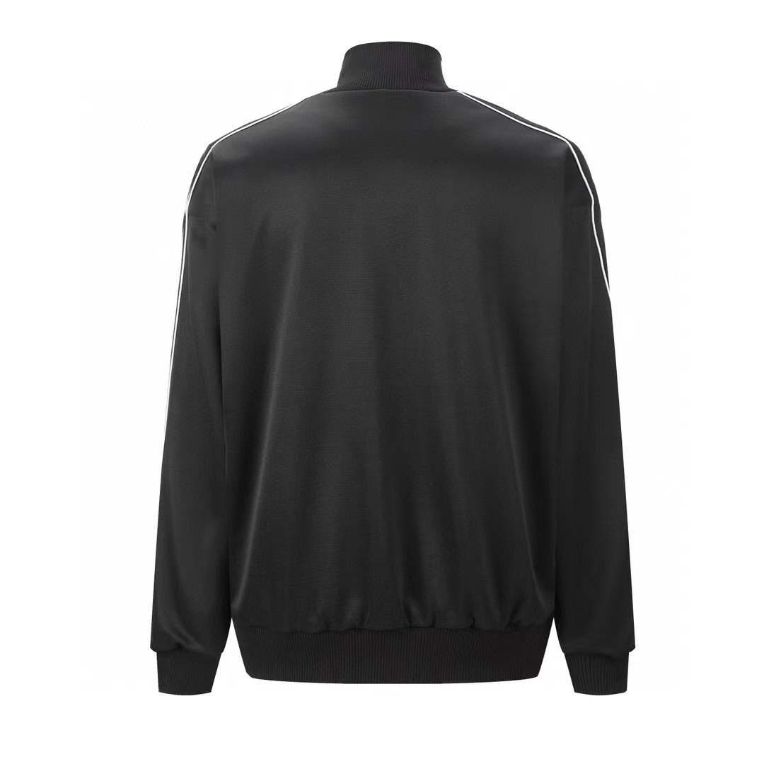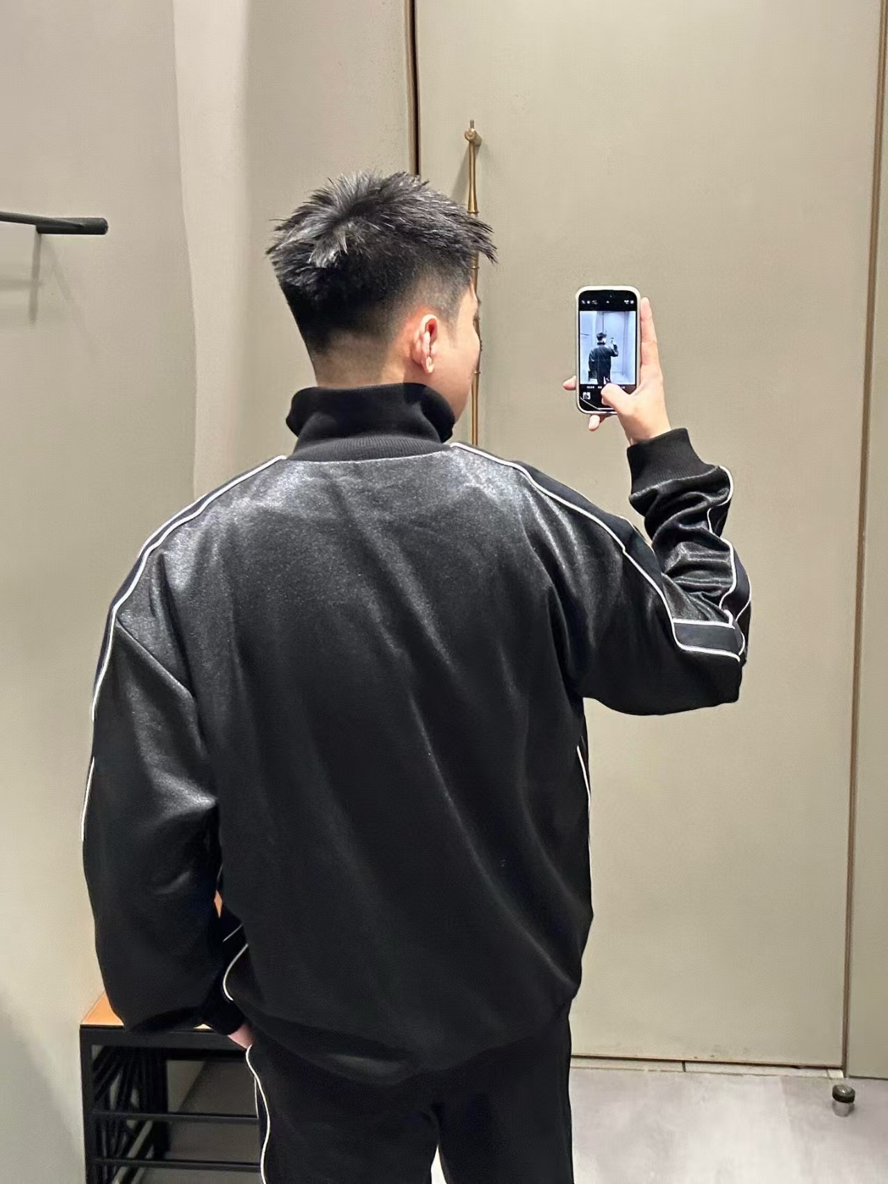 介绍:刺绣织带拉链外套(黑色)面料采用40支真丝光双面,原版定制面料。最新进口织布机织出,高密度纹路,成衣版型非常立体。面料内里布用54D纯棉网眼布,轻薄透气。螺纹采用毛织螺纹定织原版55羊毛成份,上身舒适不贴身。刺绣采用立体平面刺绣,高密度刺绣针数高达6400针。辅料织带采用纯棉定织原版尺寸,字母带采用银光纱织定织。拉链采用合金电镀哑光白拉头,双边刻有字母拉头皮带采用头层牛皮复合,与原版一至压有品牌字母。OS宽松廓形,上身有型质感好。