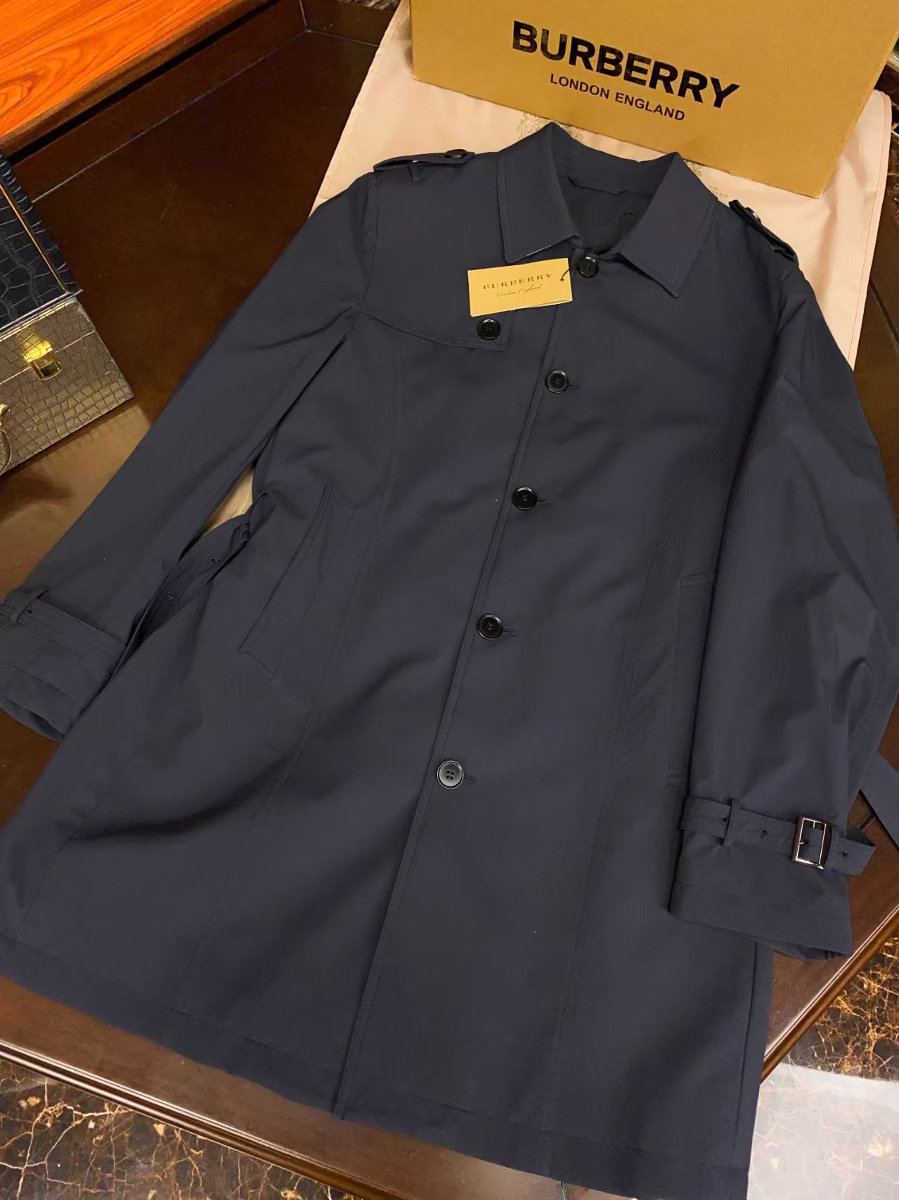 介绍:【 配专柜全套包装: 衣架+防尘袋+透明袋+盒子+礼品袋 王牌尖货】镇店之宝,能传承几代的经典风衣,最顶级的原厂原面料,市场最牛的货没有之一!英伦风尚,经典百年来袭 BUR王牌渠道,最为经典的版型和颜色!面料内外防水,手感细腻踏实!真正天然牛角扣,每颗扣子都具有独特的纹路!N字纽扣缝线, 细节决定品质:面料内外防水,原版五金,精致对版衣标,腰带对版切割线(必须有)!细致车工!十年磨一剑!只为了给客户带来最顶尖匠心产品!