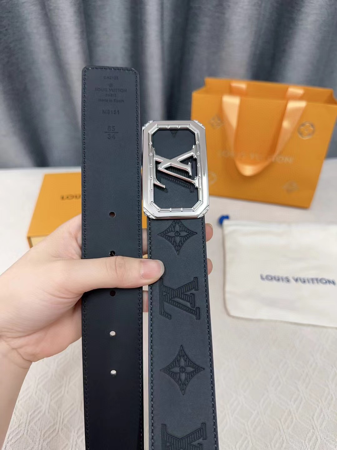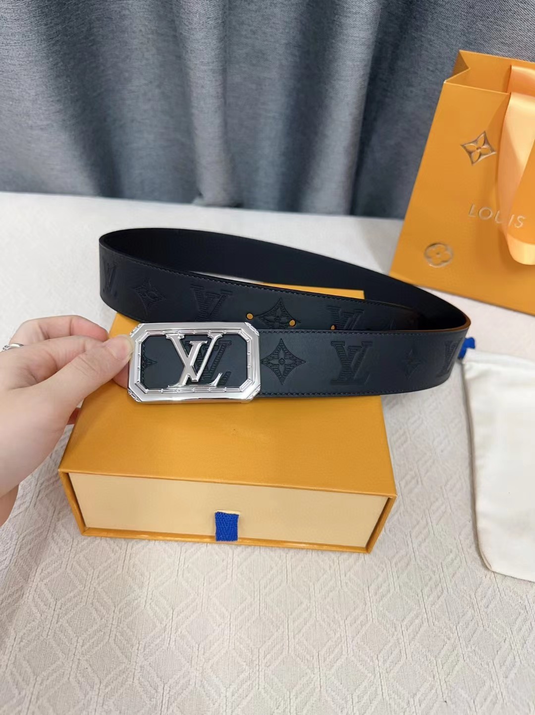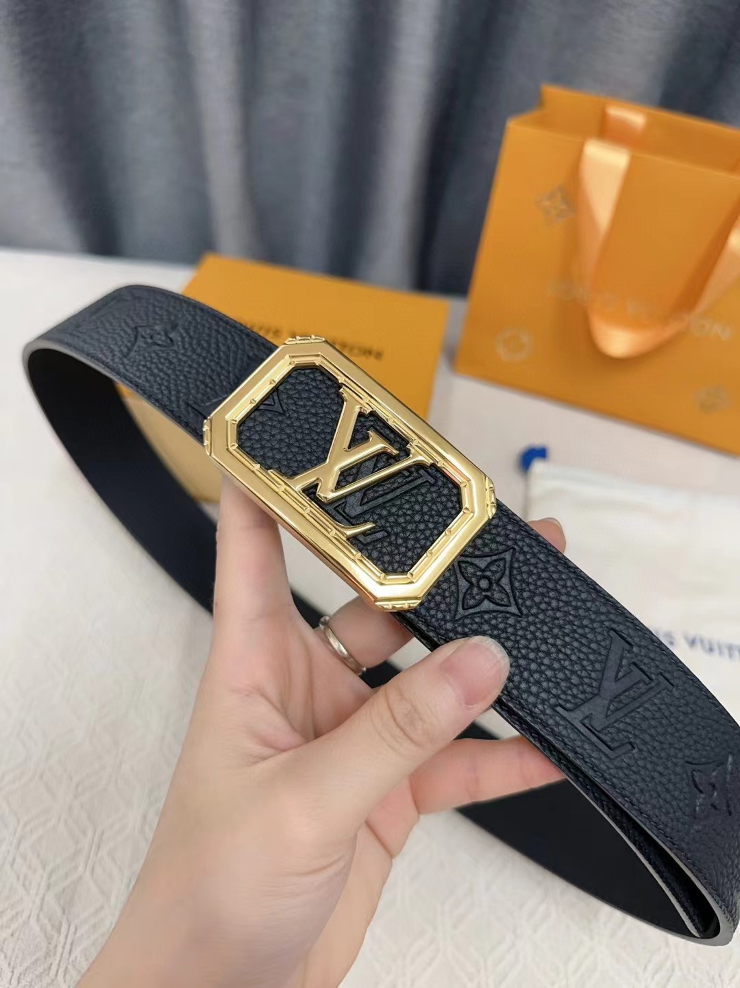 皮带非常喜欢,跟朋友的正品对比,皮质手感一模一样,很惊讶。黑色好搭配衣服,感谢