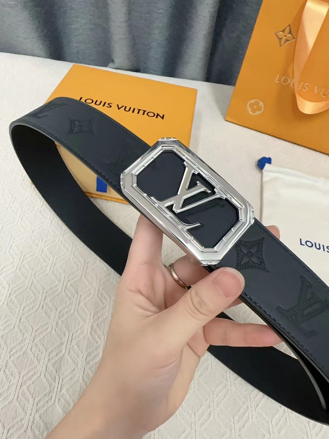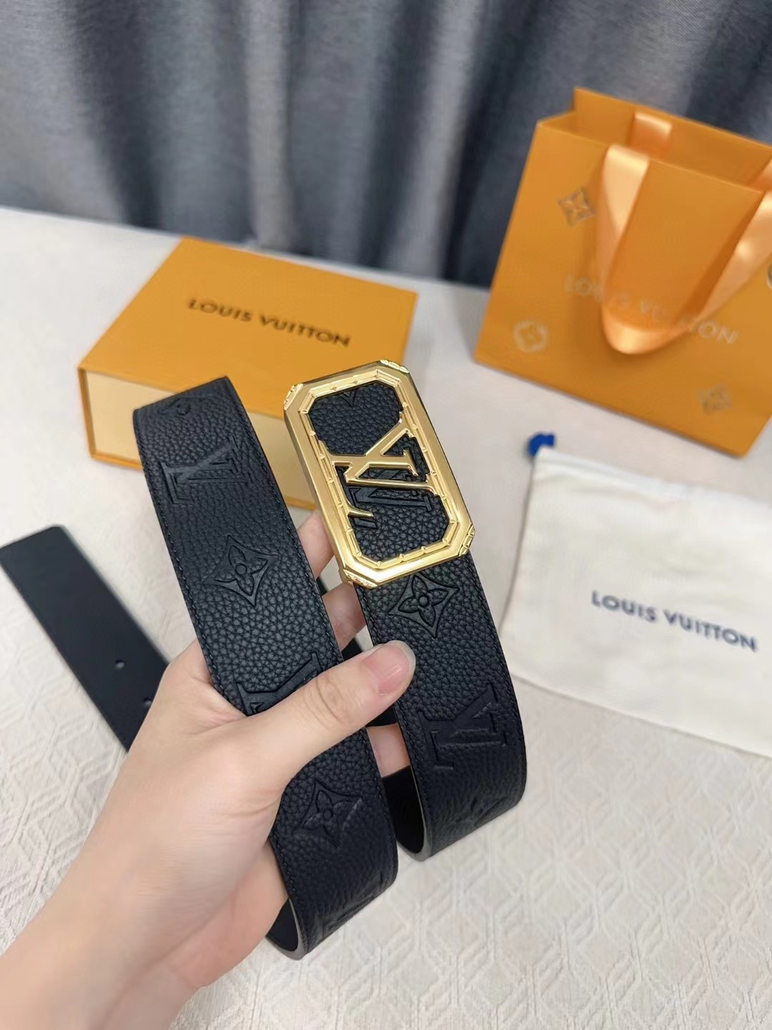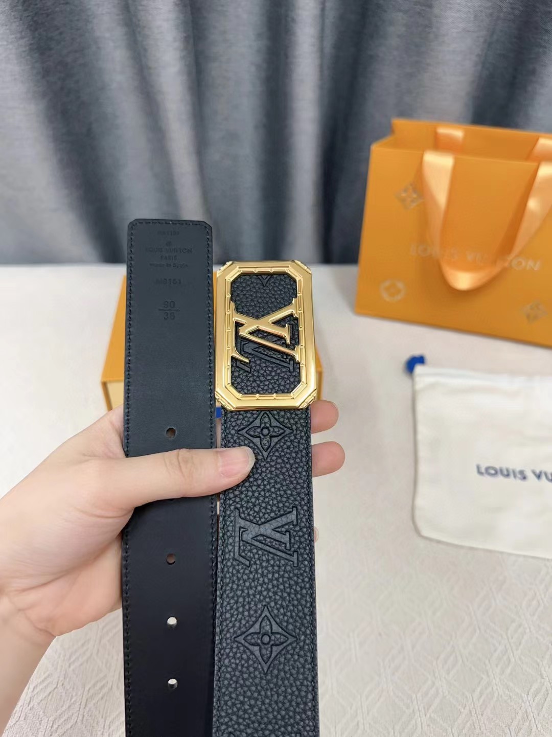 皮带非常喜欢,跟朋友的正品对比,皮质手感一模一样,很惊讶。黑色好搭配衣服,感谢