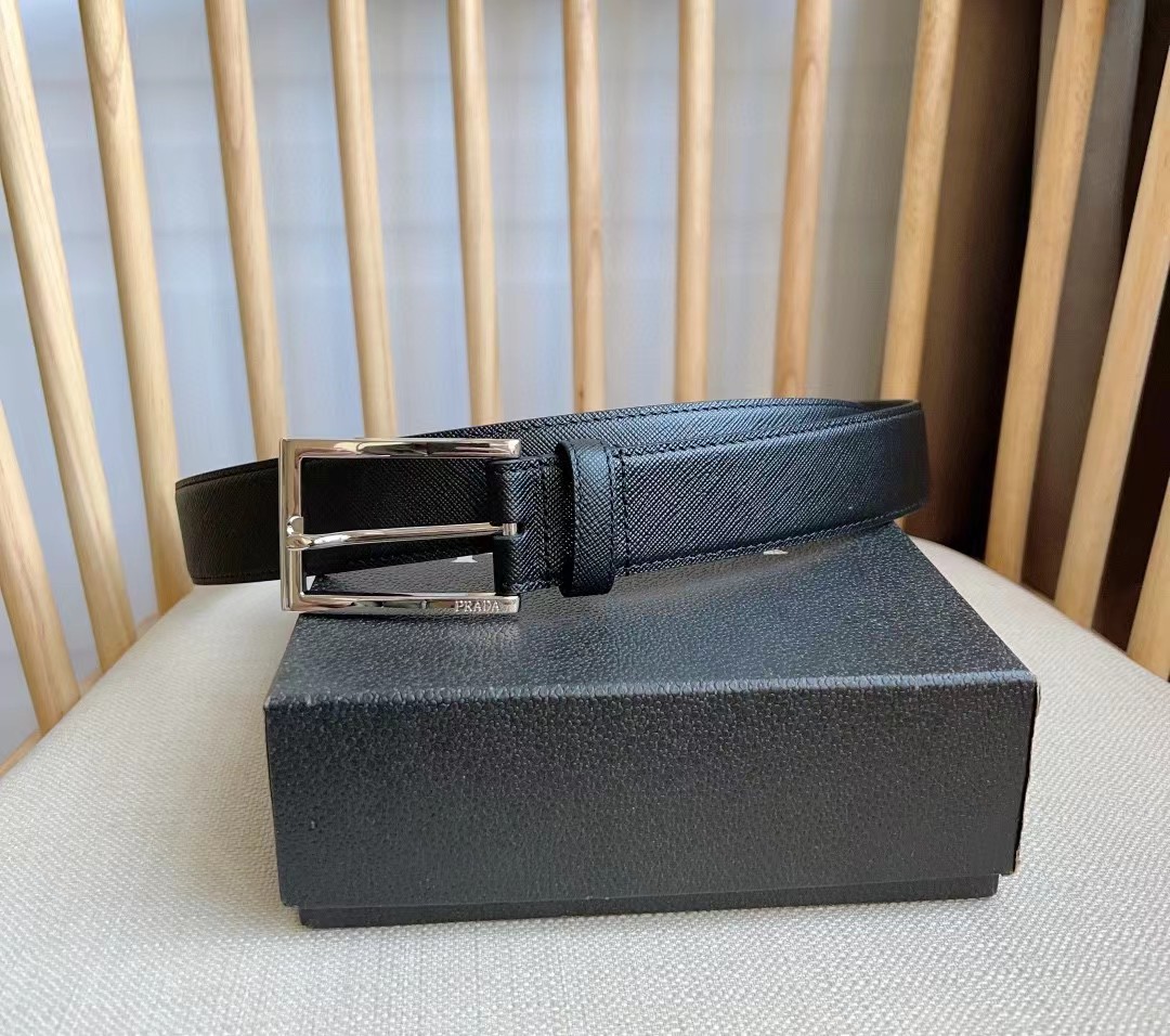 PRADA 普拉达 3.5cm 头层牛皮针扣