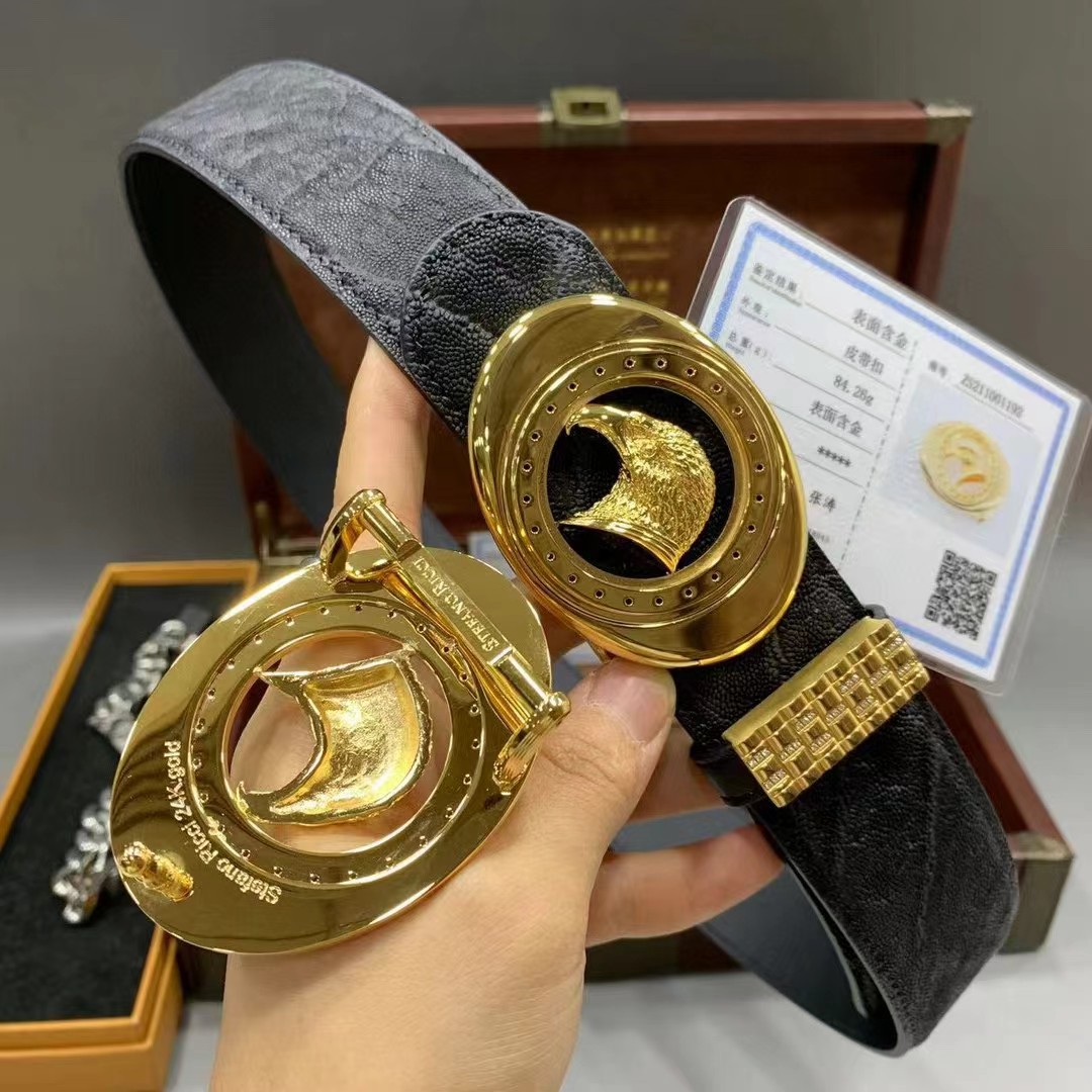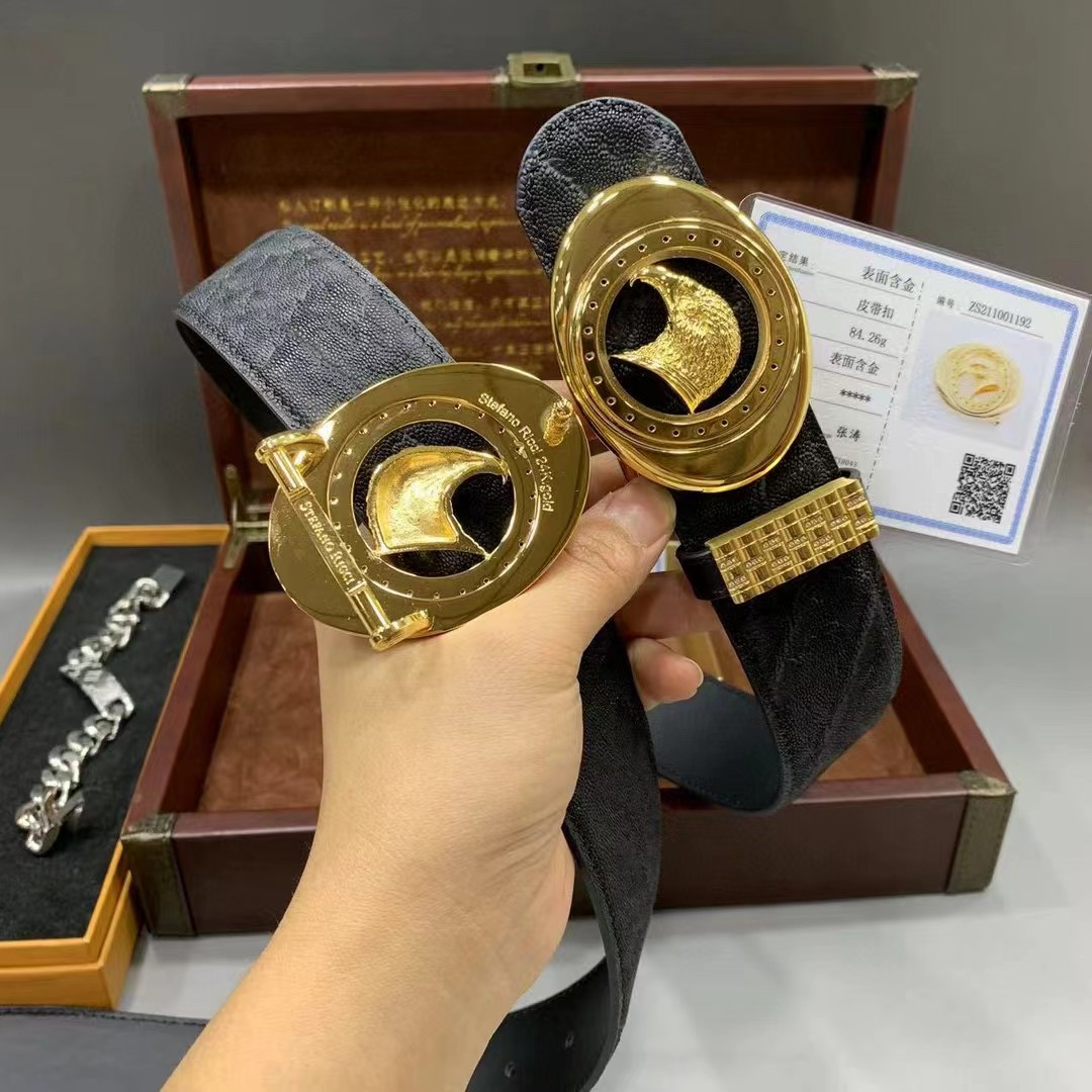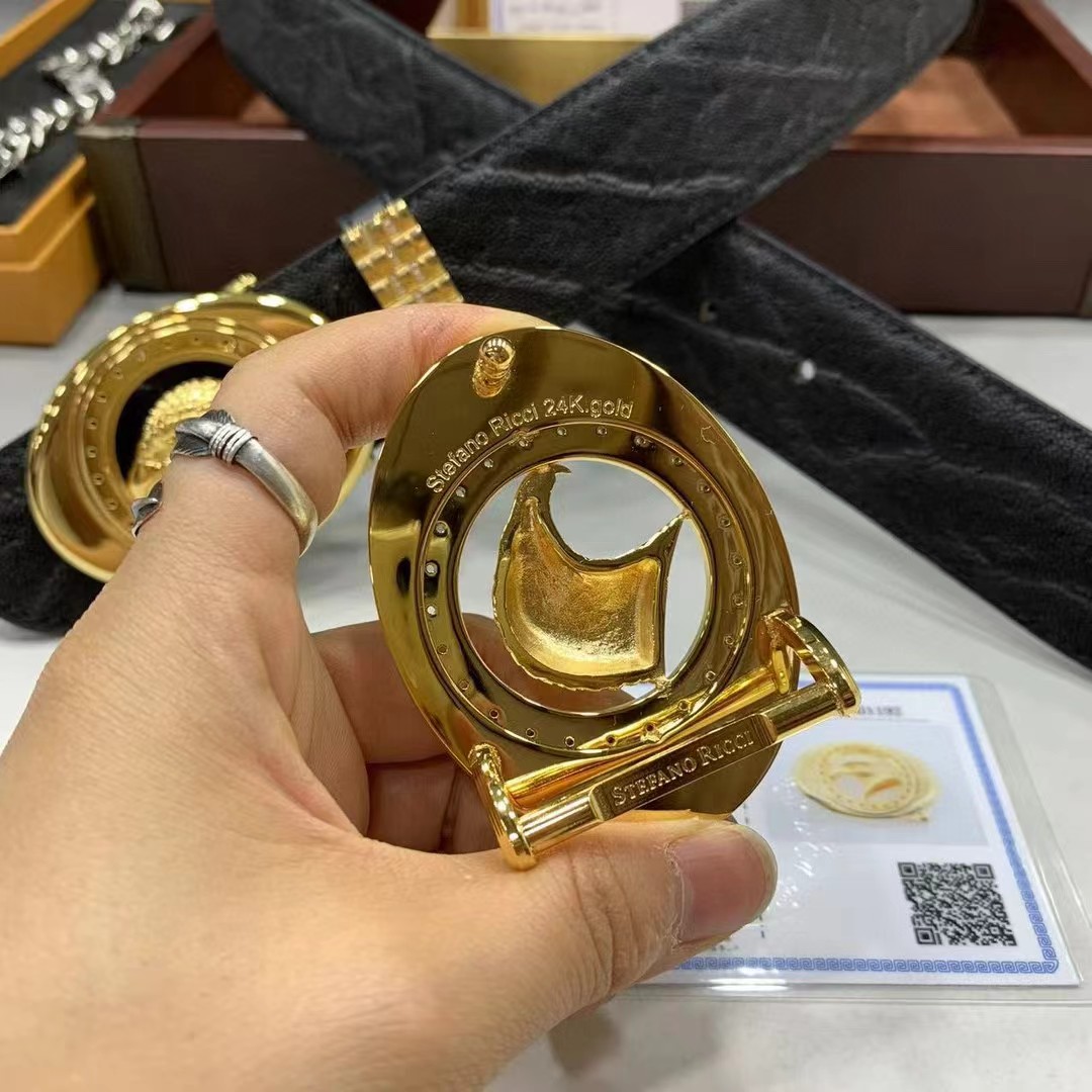 Stefano Ricci 史蒂芬劳.尼治 3.8cm 莫桑比克野生大象皮包金平滑扣