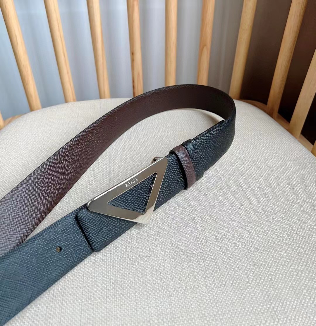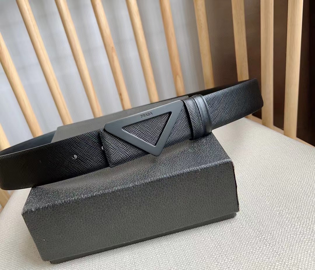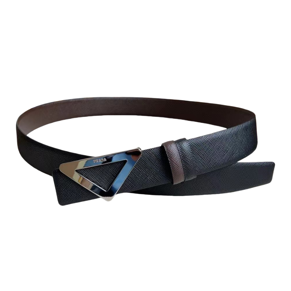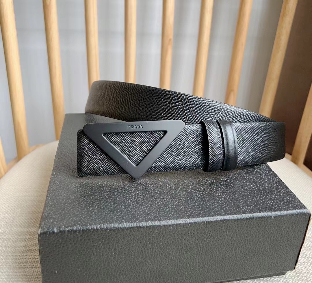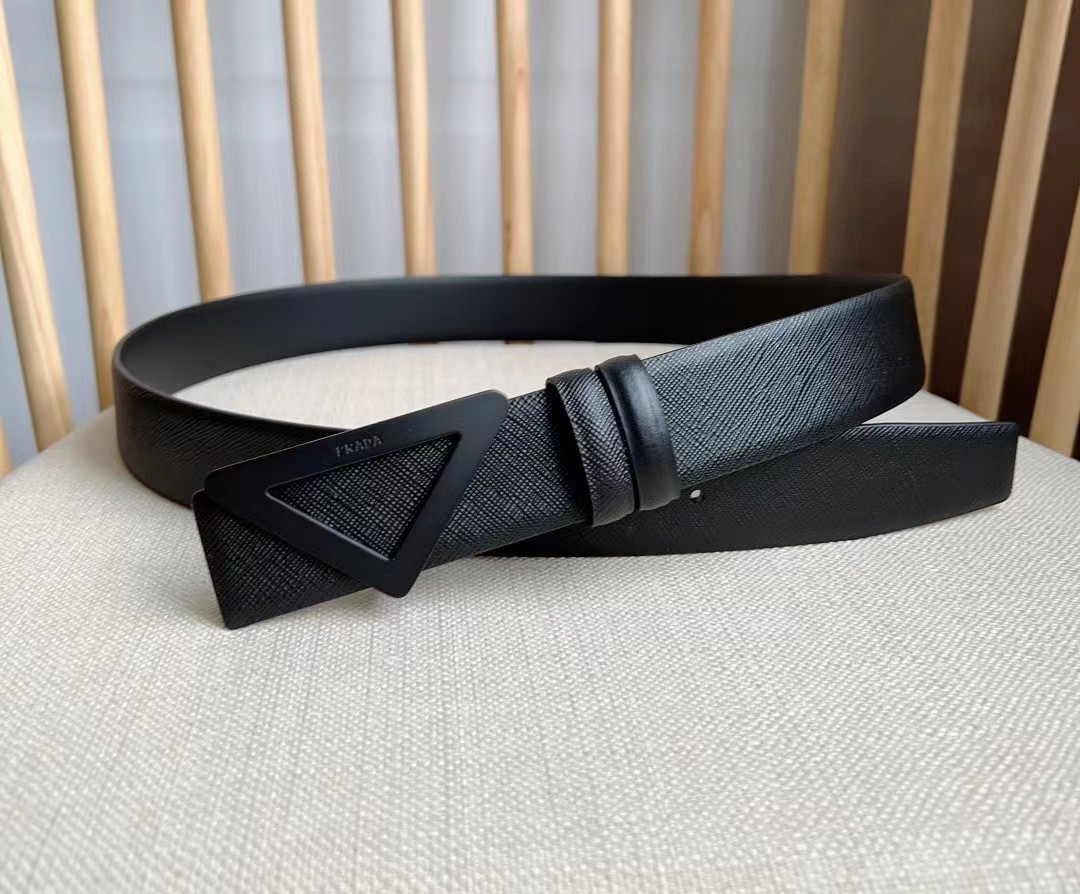 PRADA 普拉达 3.5cm 三角形十字纹平滑扣