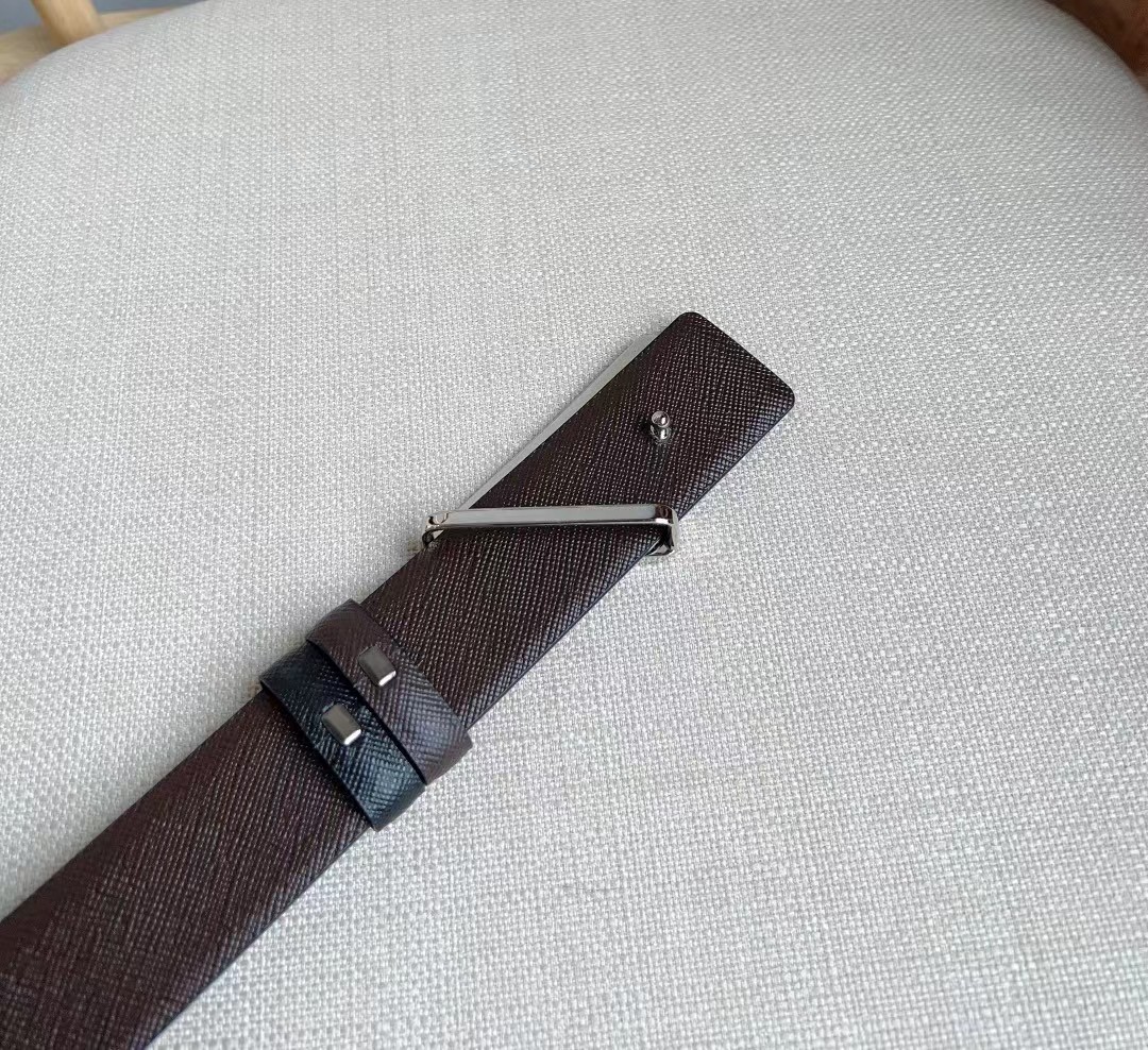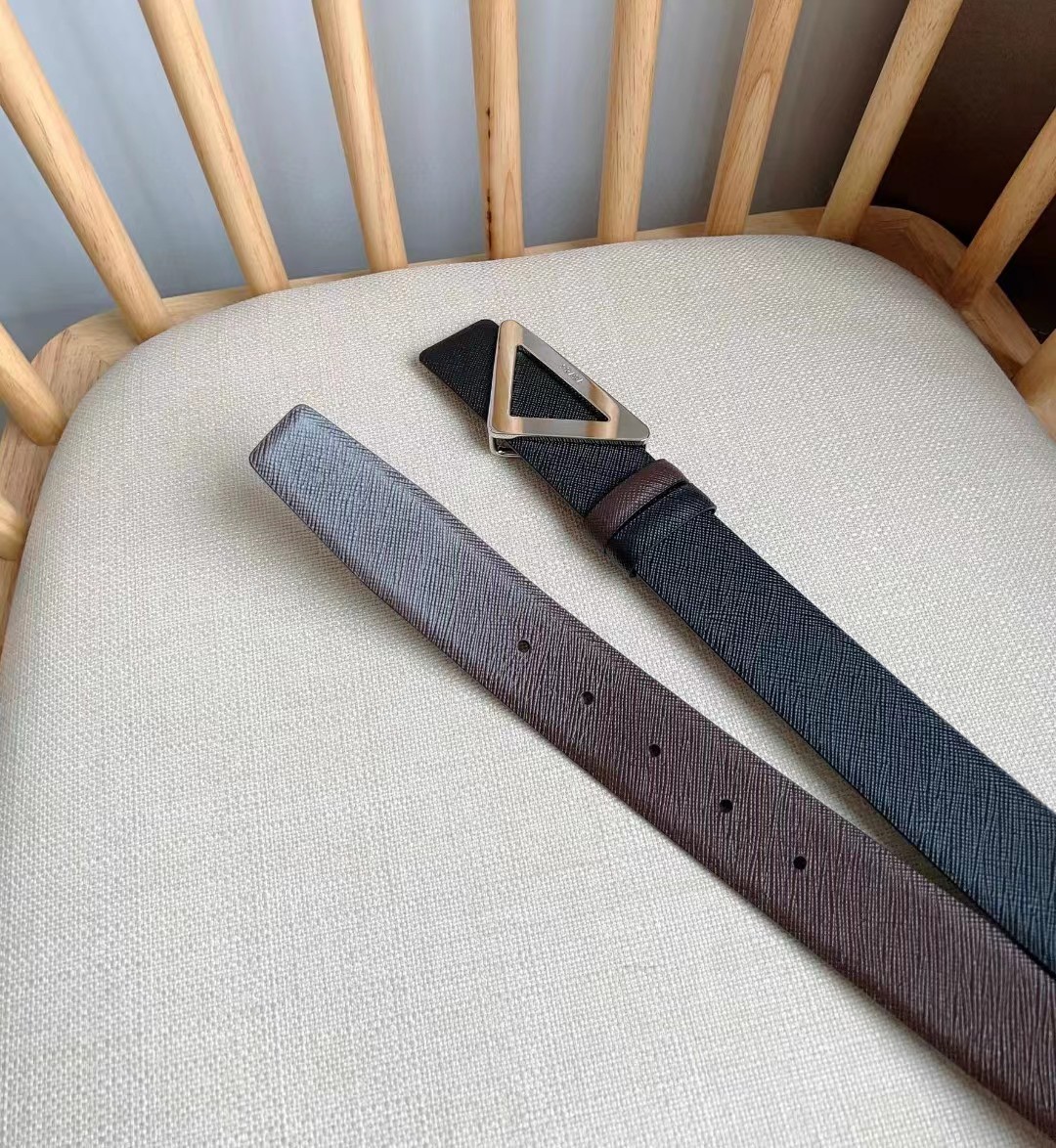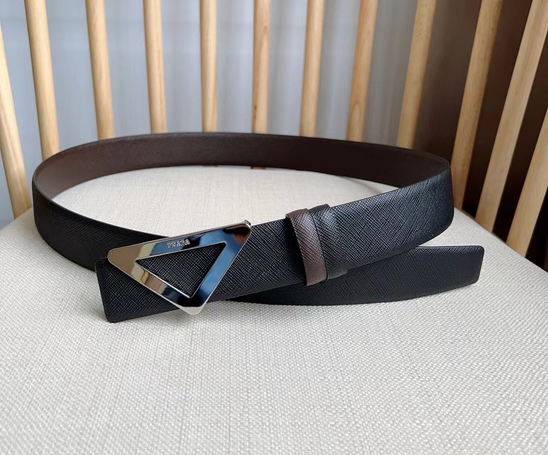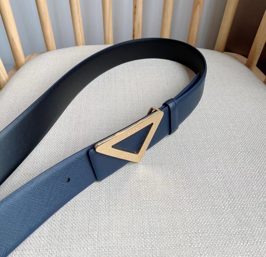 PRADA 普拉达 3.5cm 三角形十字纹平滑扣