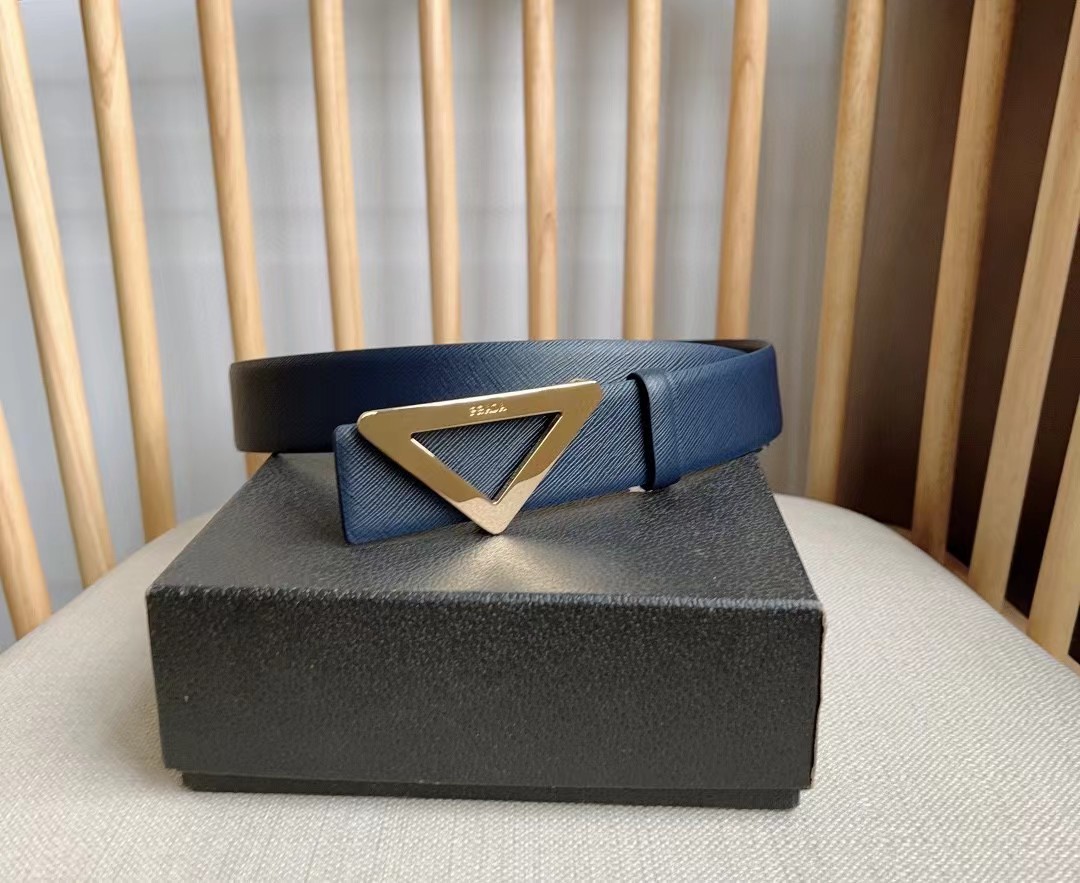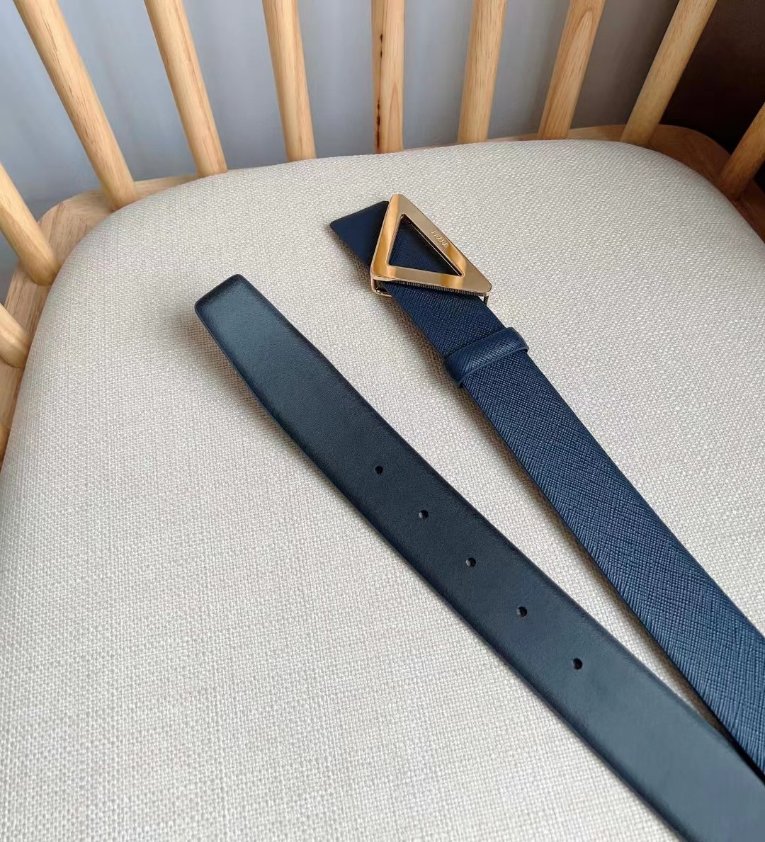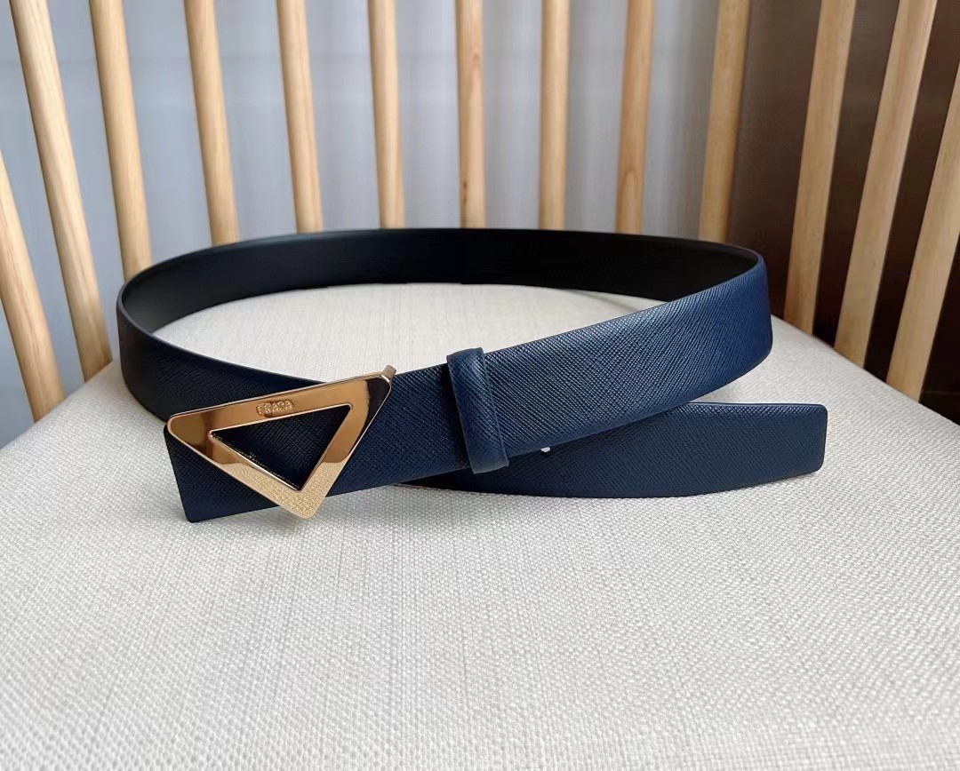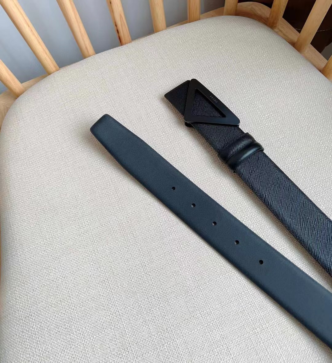 PRADA 普拉达 3.5cm 三角形十字纹平滑扣