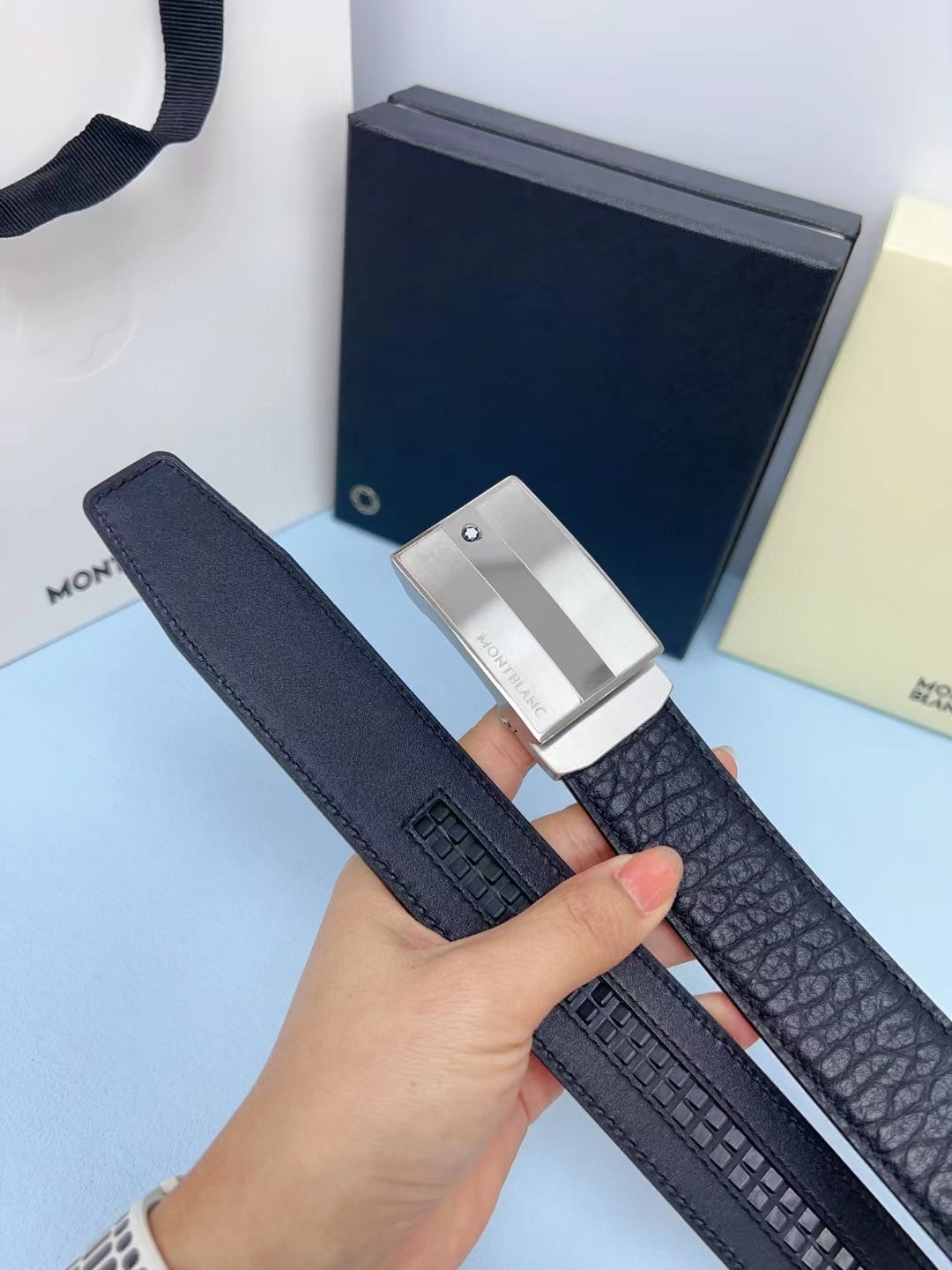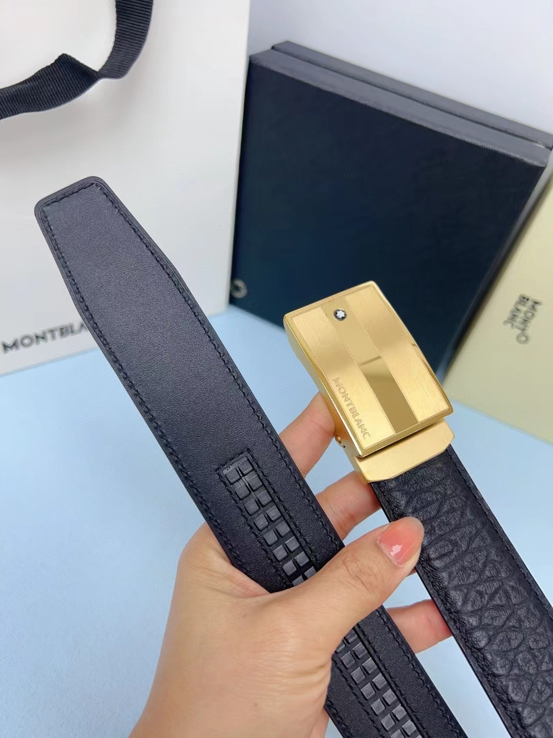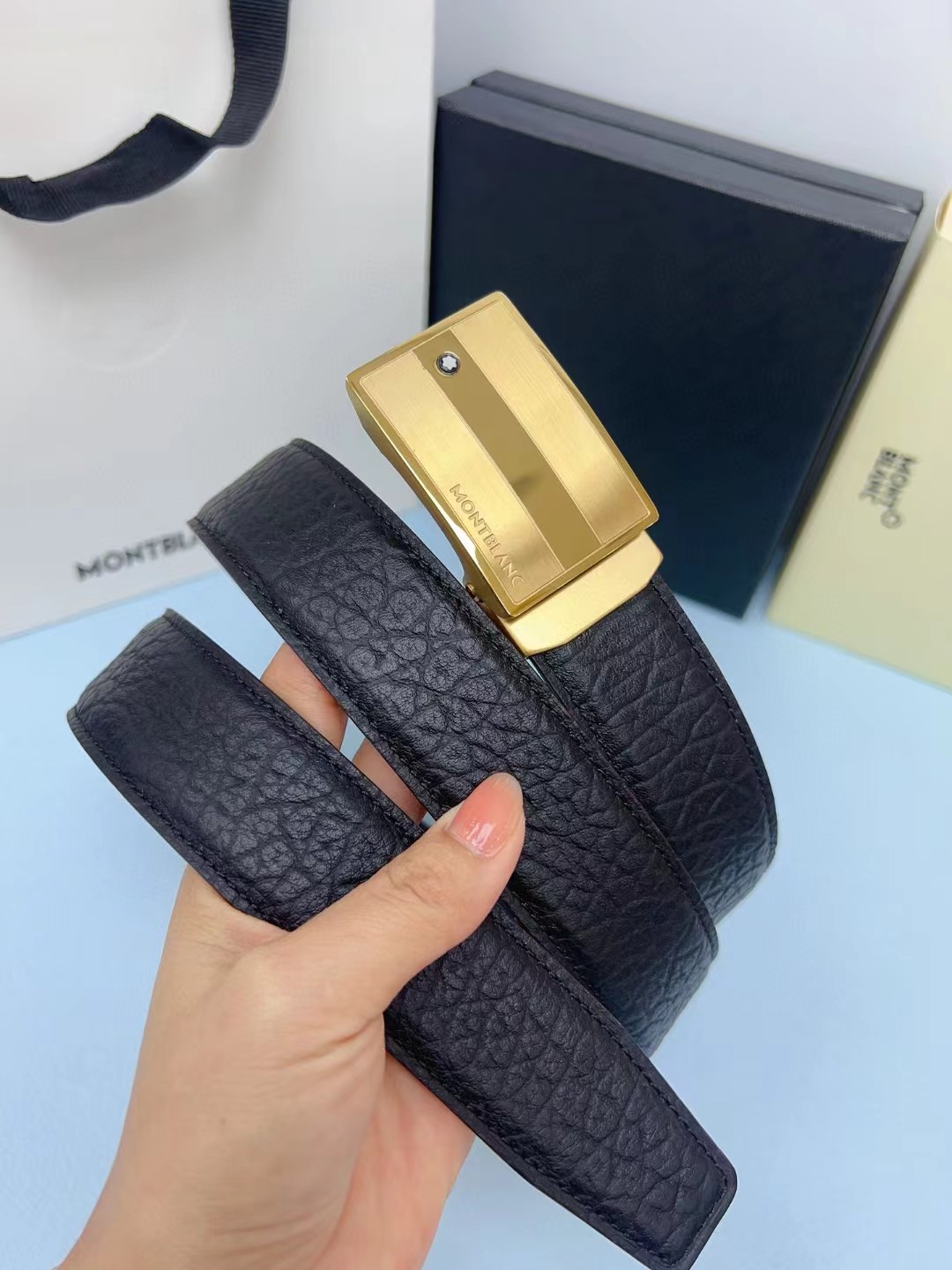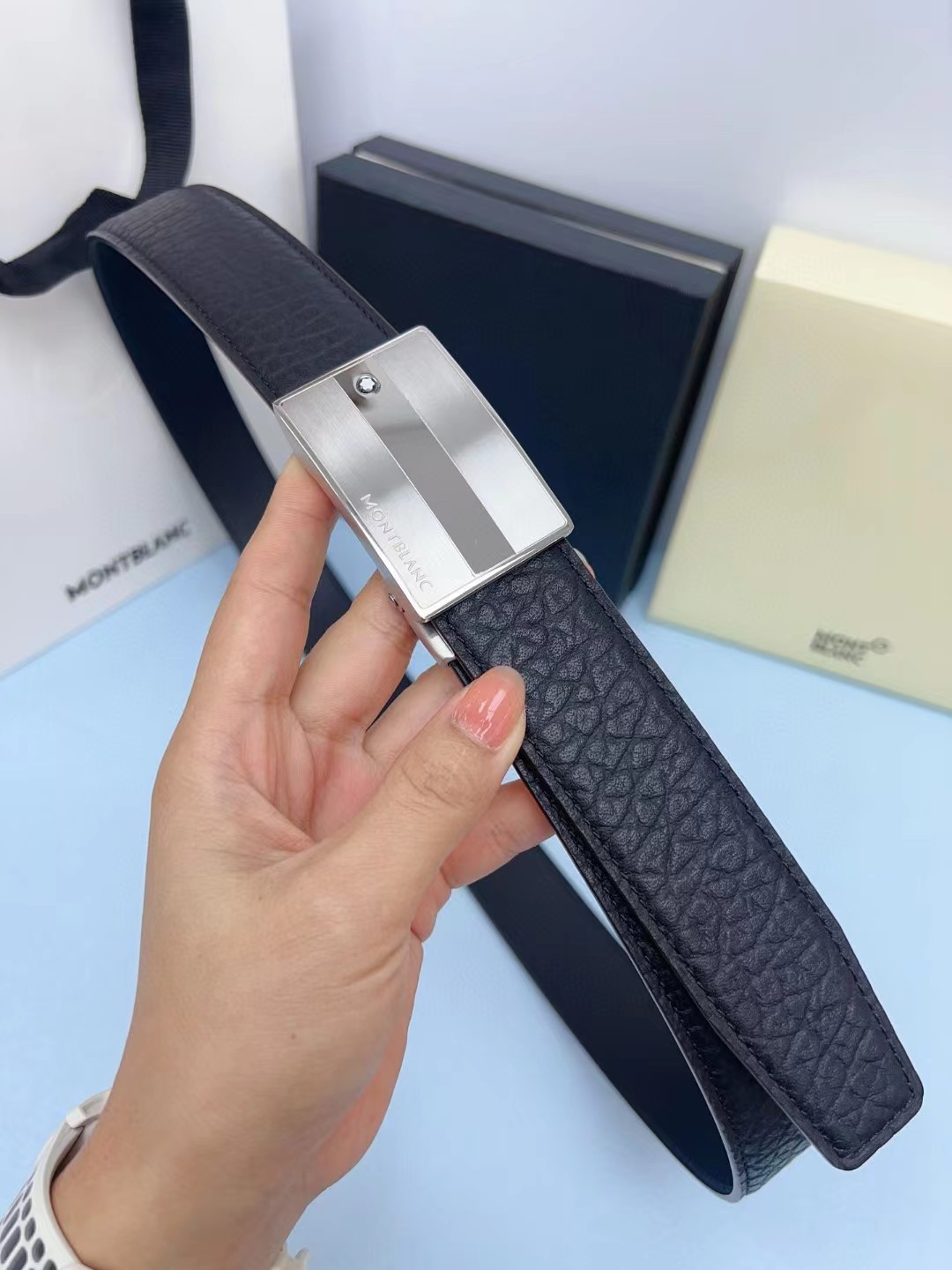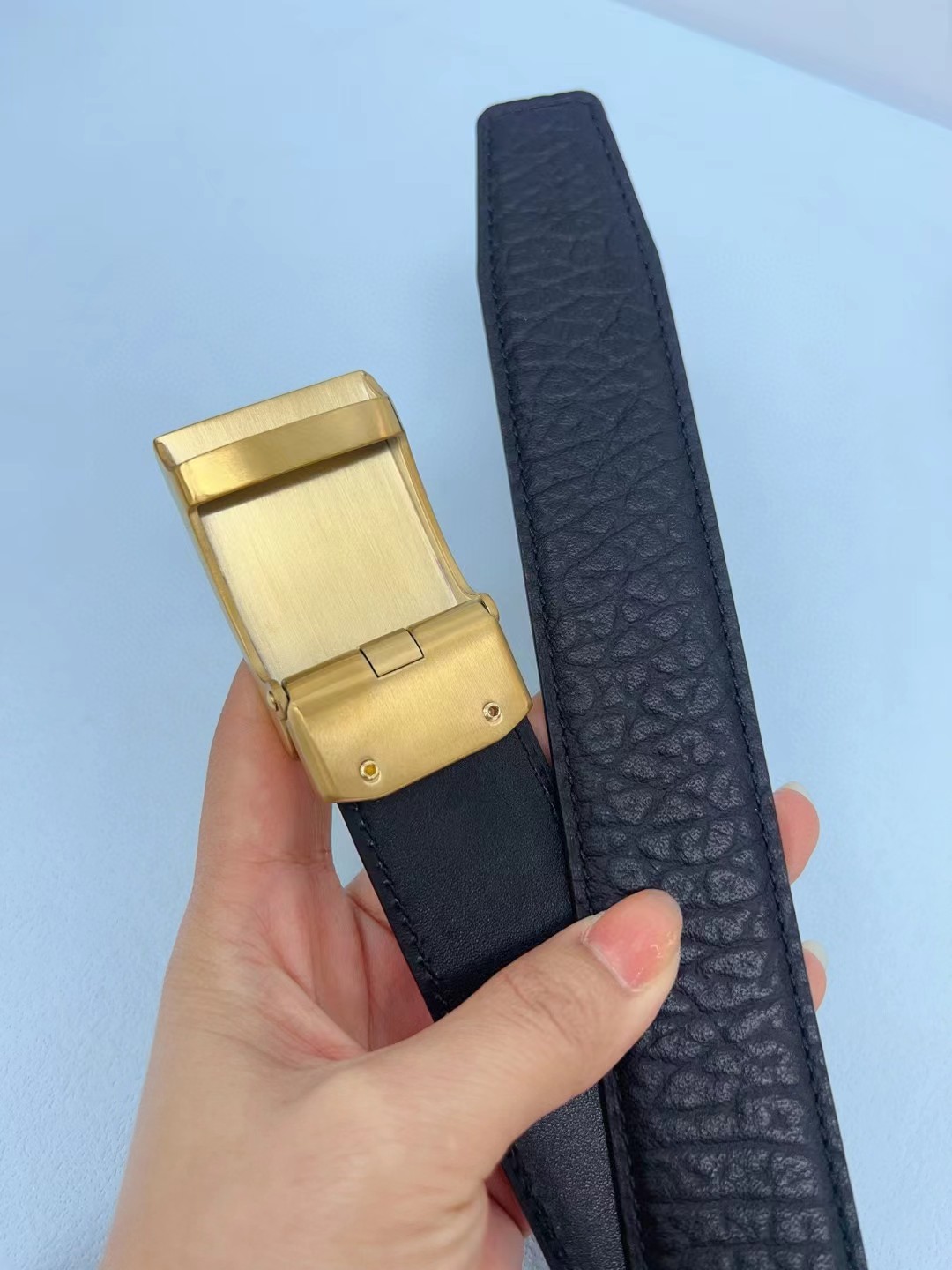 皮带非常喜欢,跟朋友的正品对比,皮质手感一模一样,很惊讶。黑色好搭配衣服,感谢