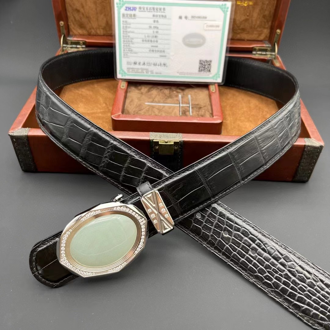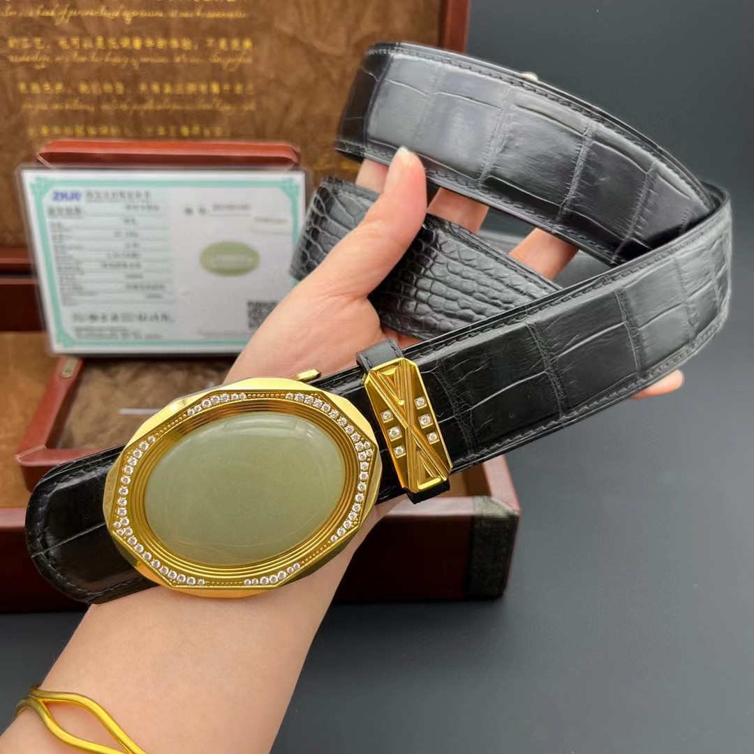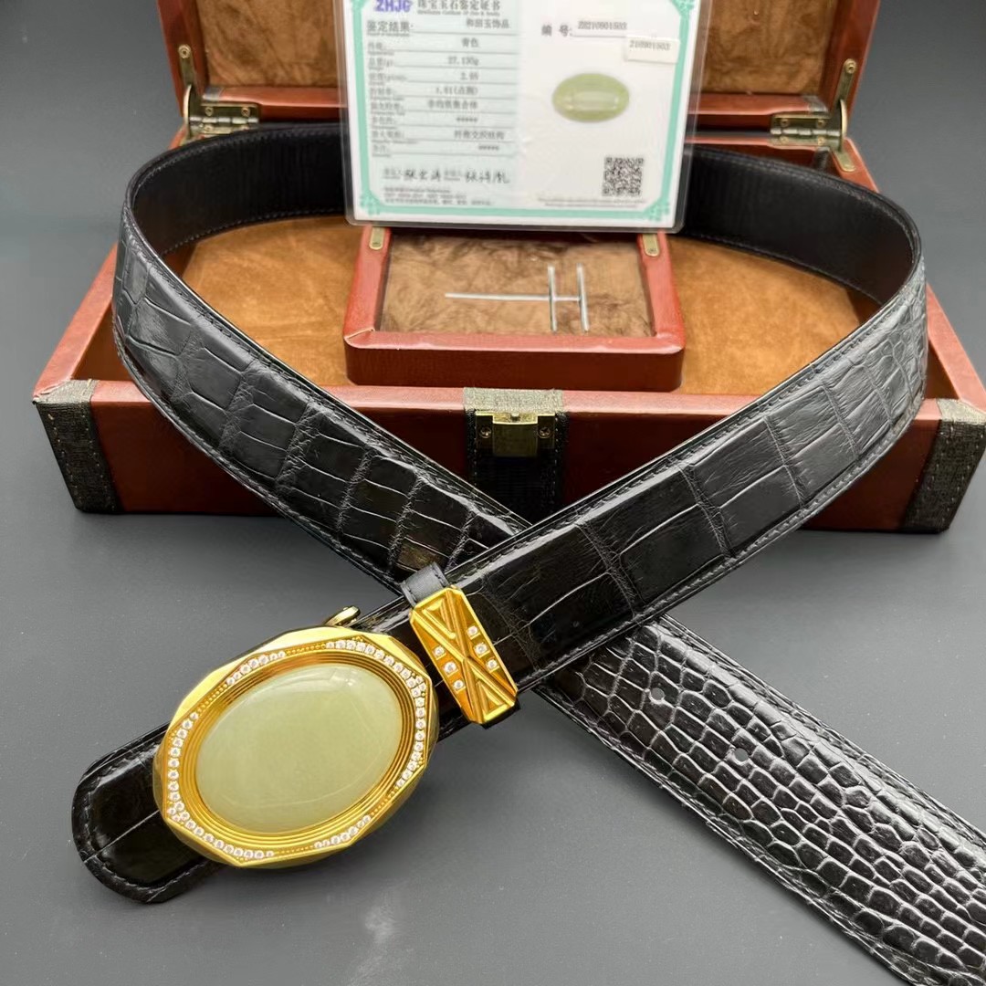 材质:进口美洲鳄鱼皮 搭配 金扣俄罗斯和田玉