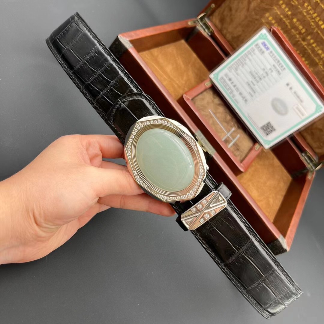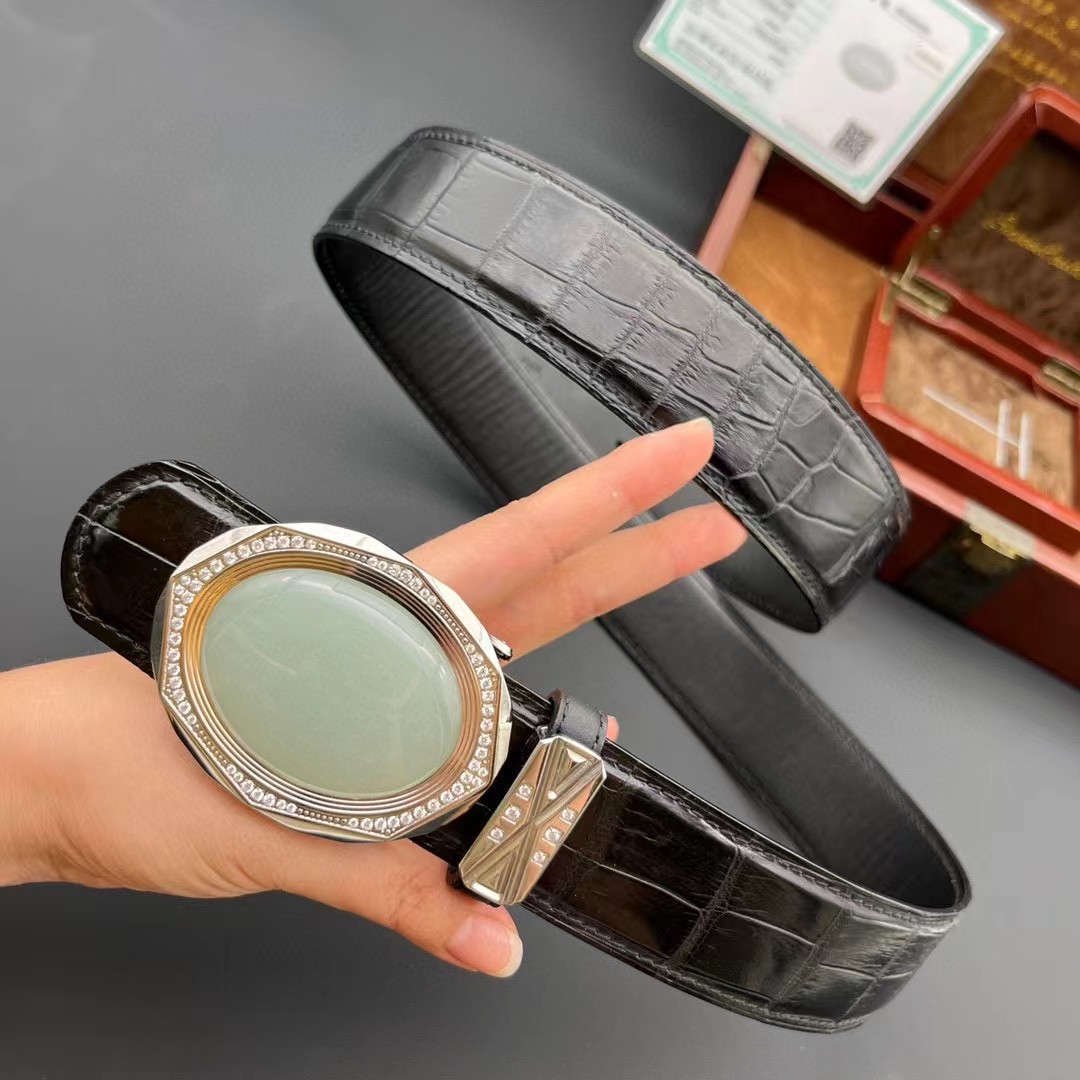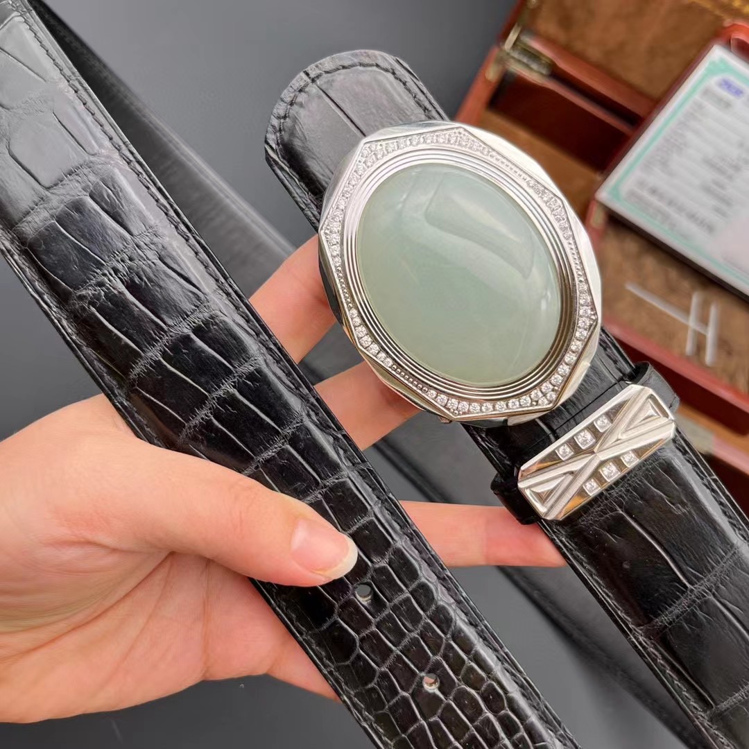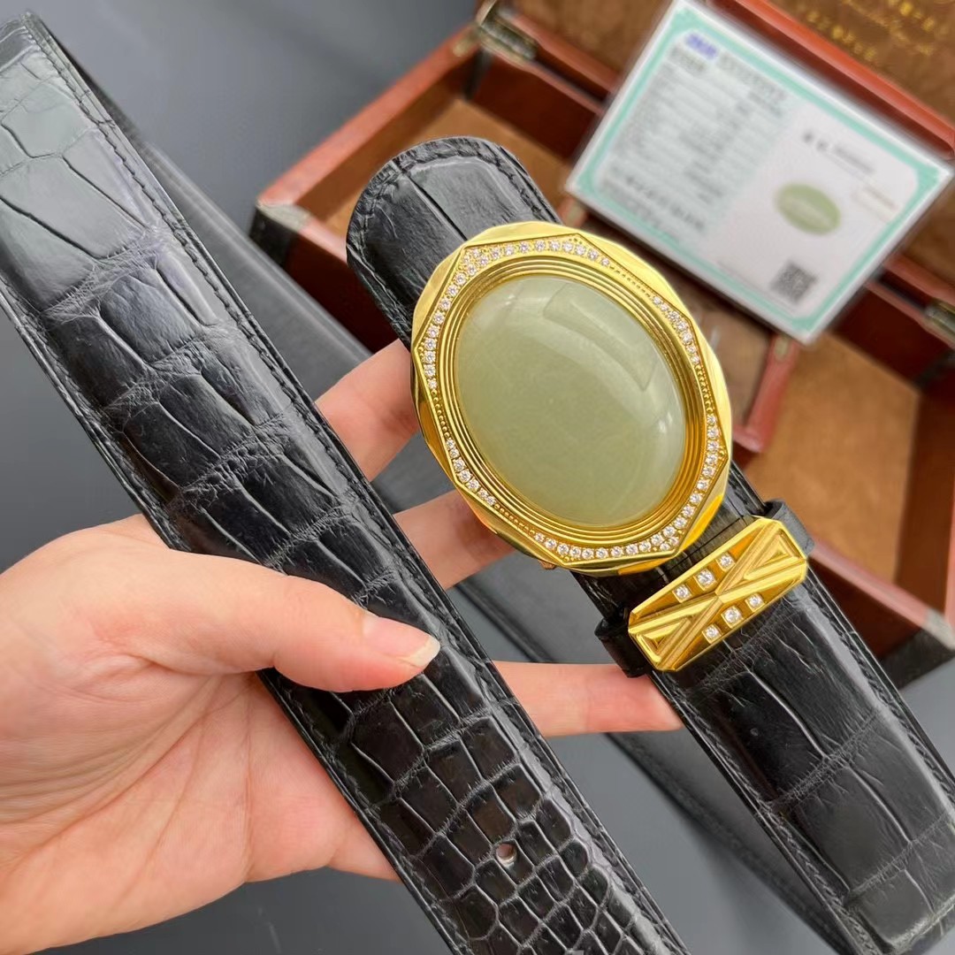 材质:进口美洲鳄鱼皮 搭配 金扣俄罗斯和田玉