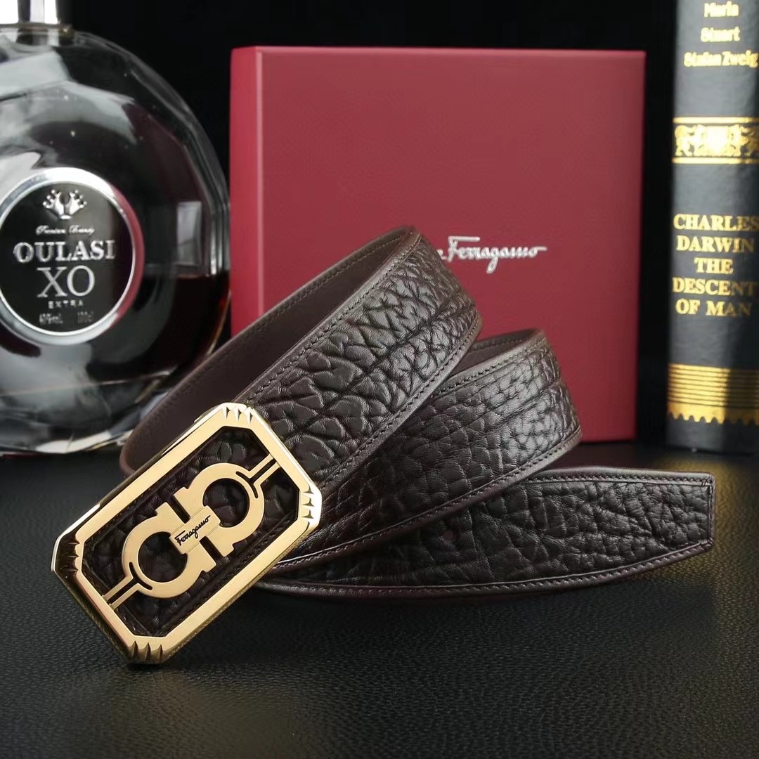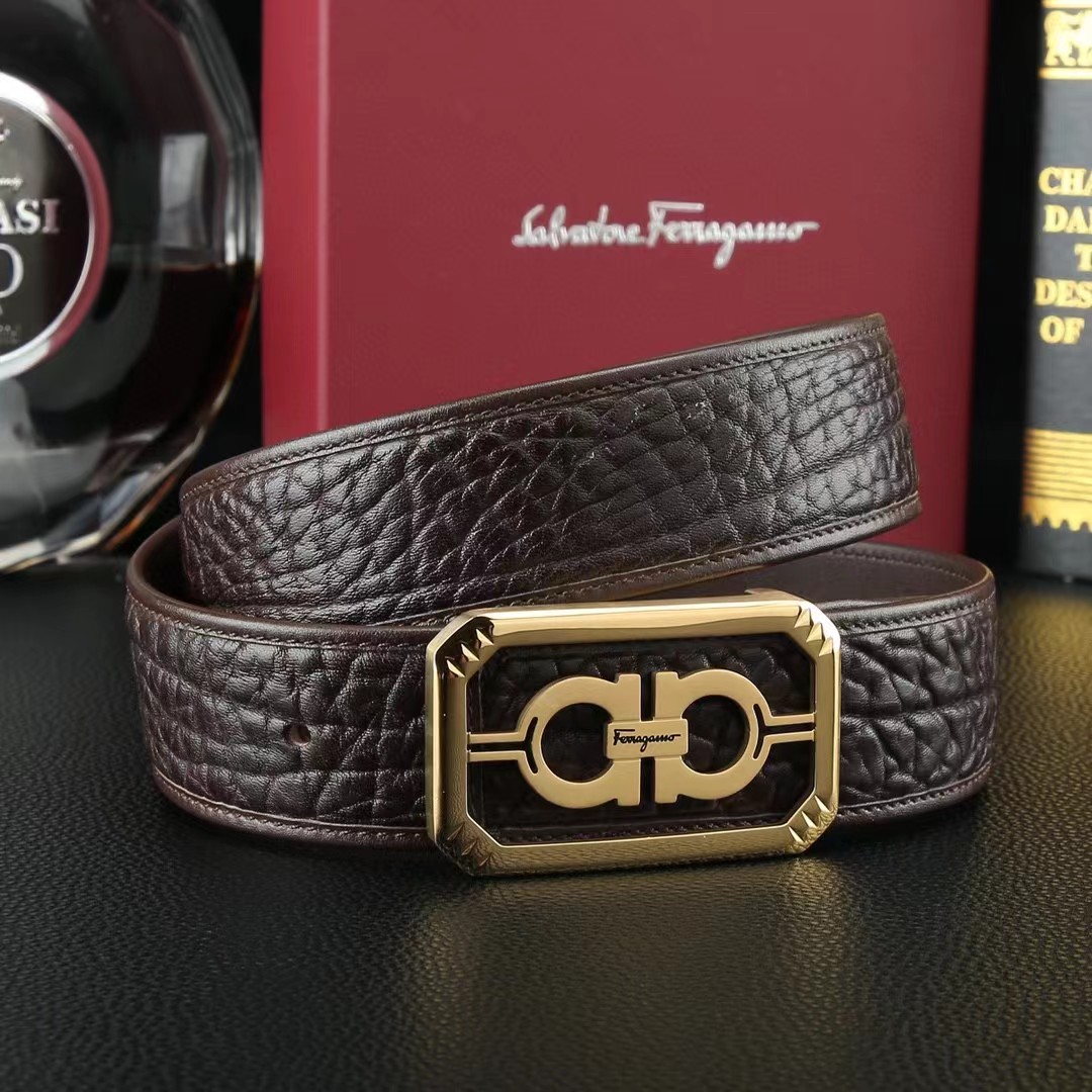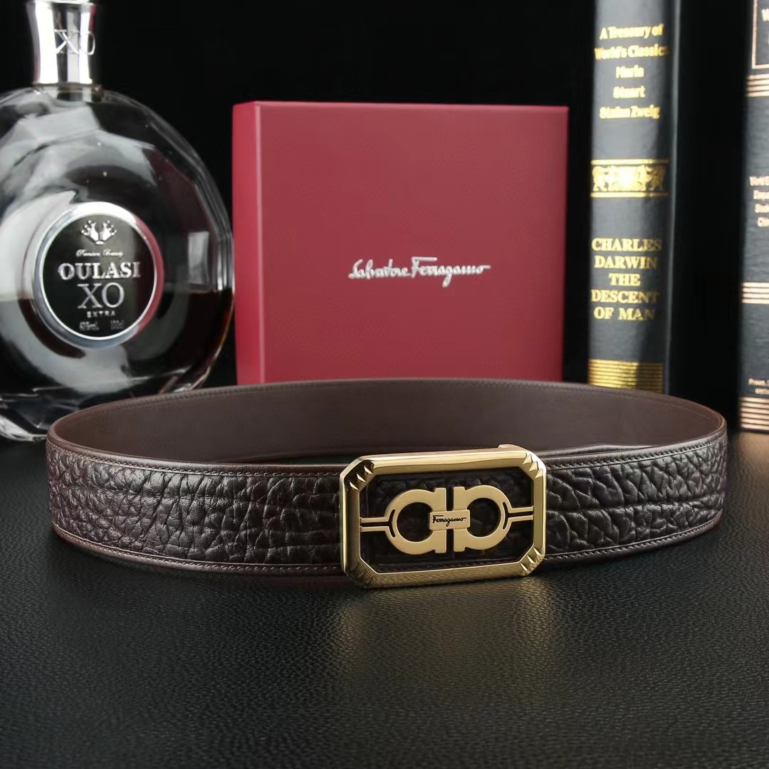 FERRAGAMO 菲拉格慕 3.8cm 野牛皮平滑扣