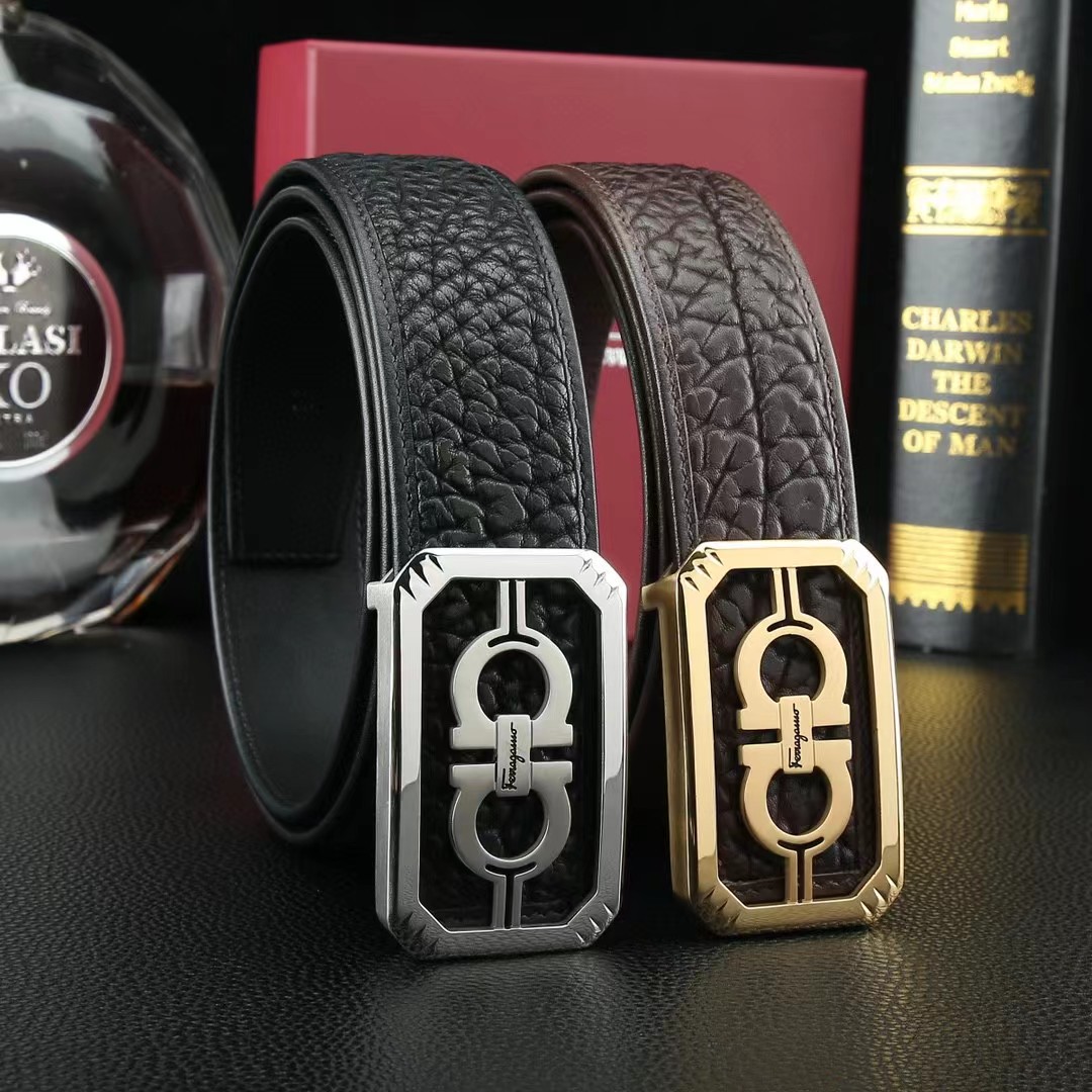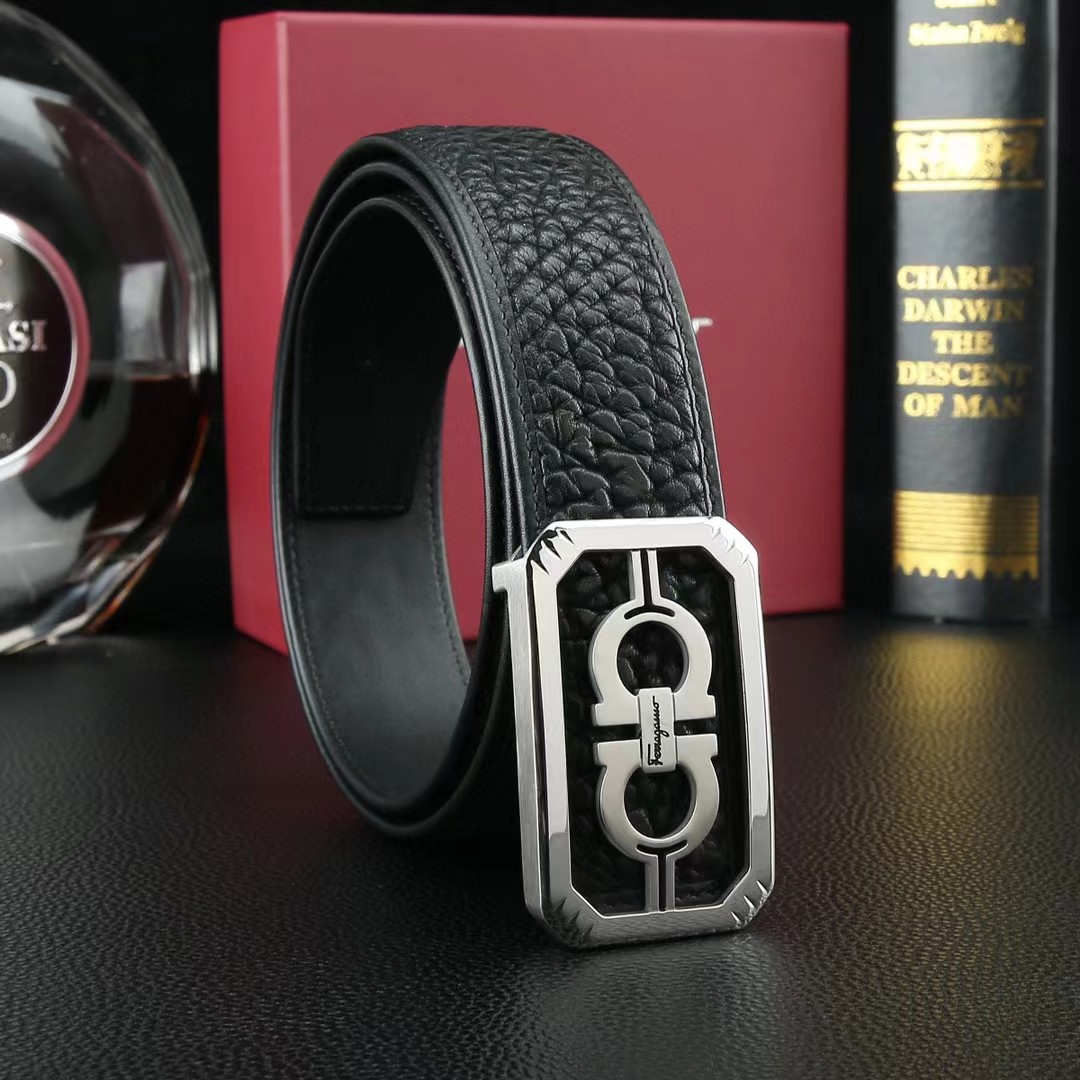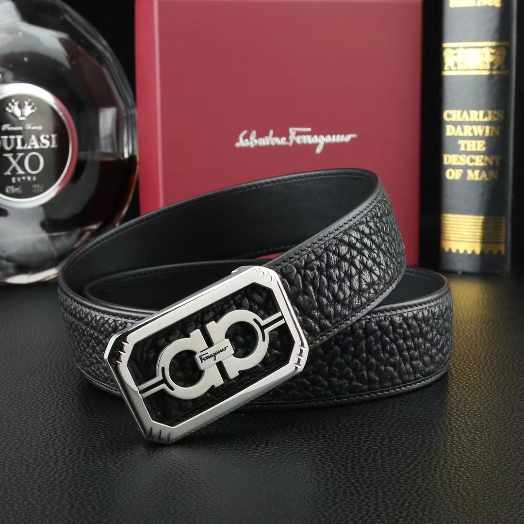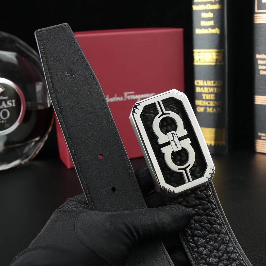 FERRAGAMO 菲拉格慕 3.8cm 野牛皮平滑扣