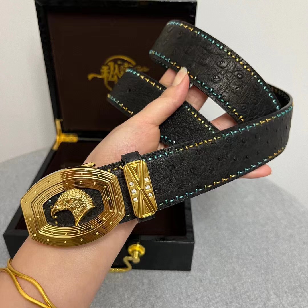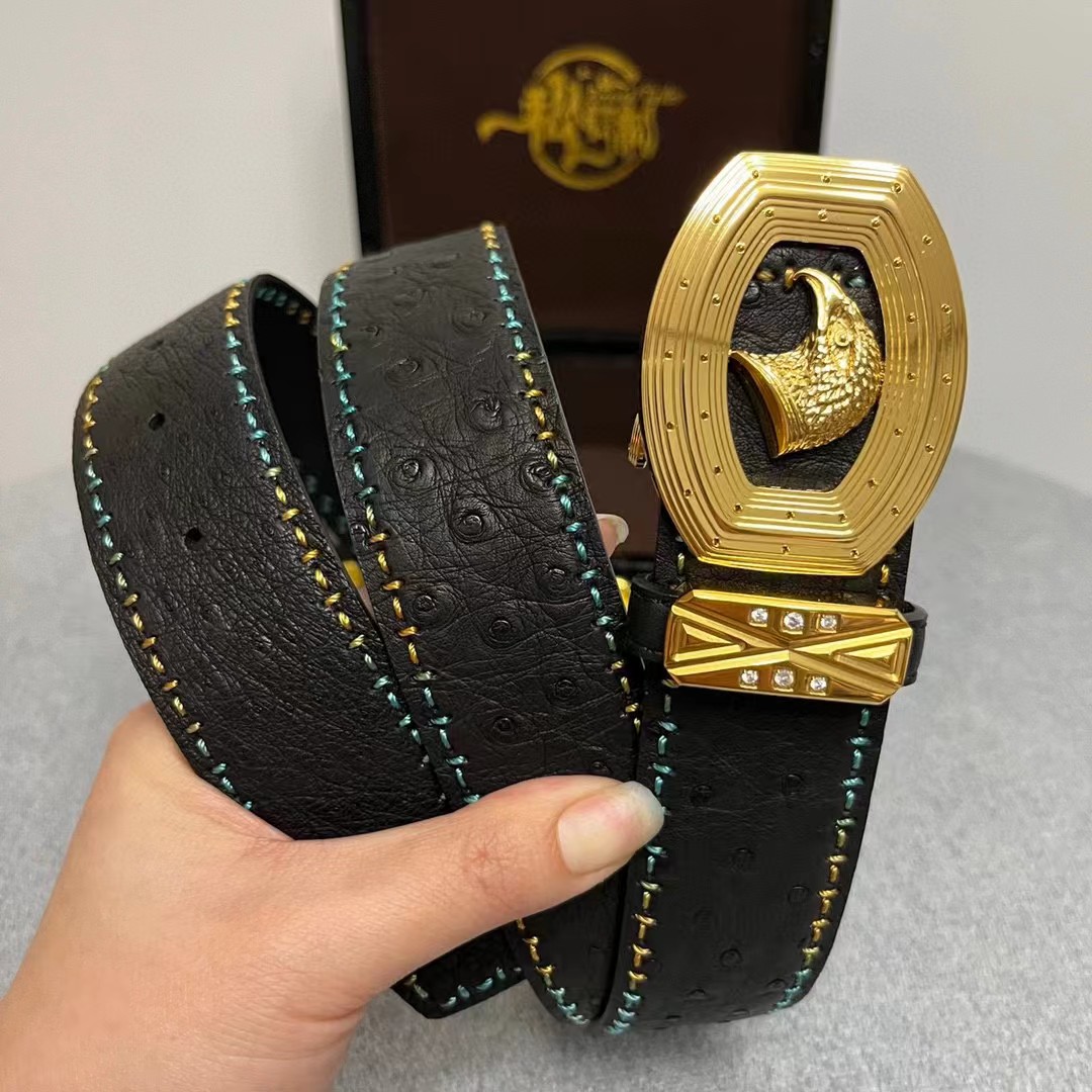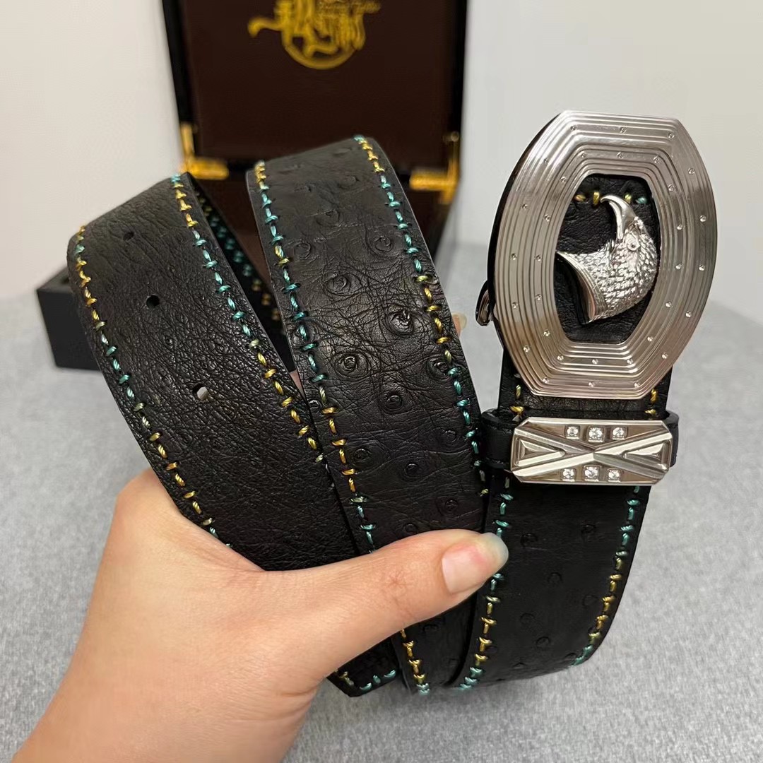 【描述】带身澳洲进口鸵鸟皮没有接口 纯手工穿线,一个工人一天只能穿2-3条,徳国进口机车车线 精湛工艺外海代购最热系列