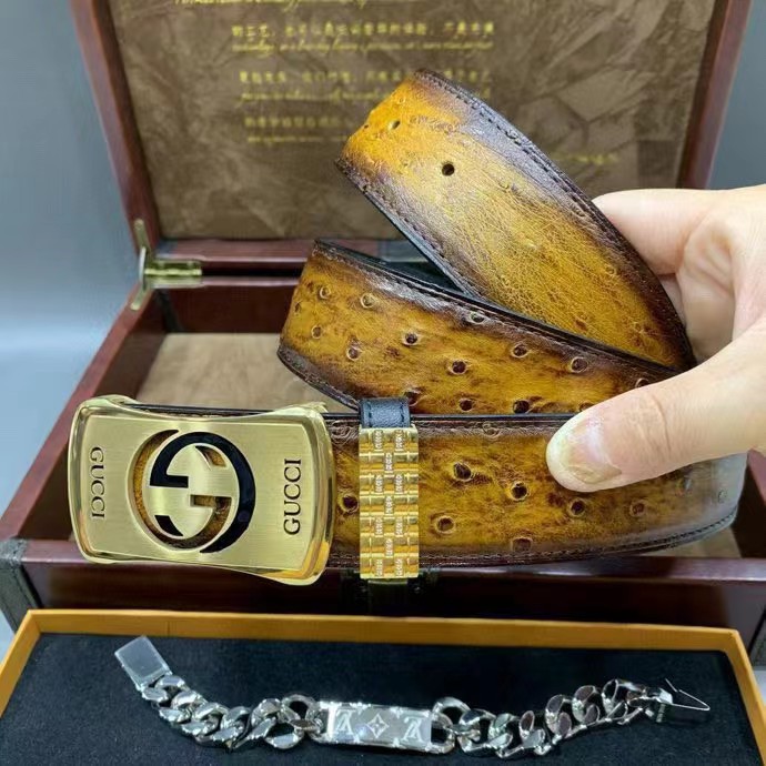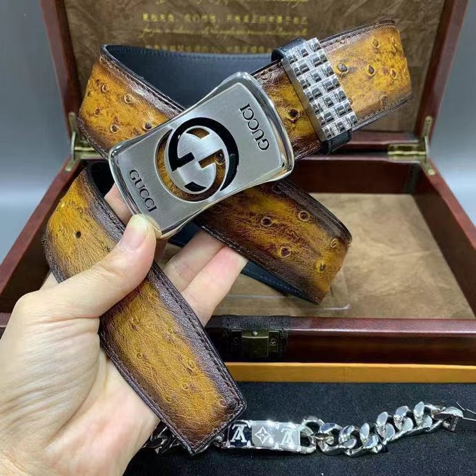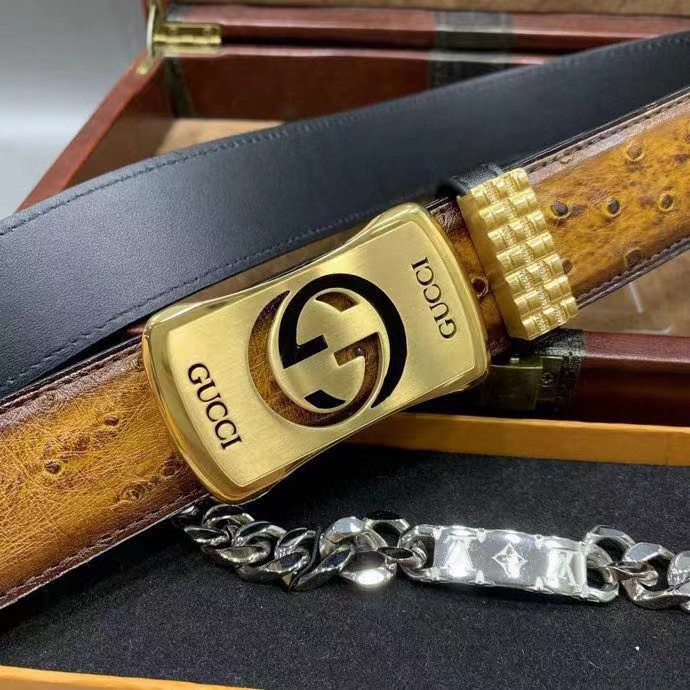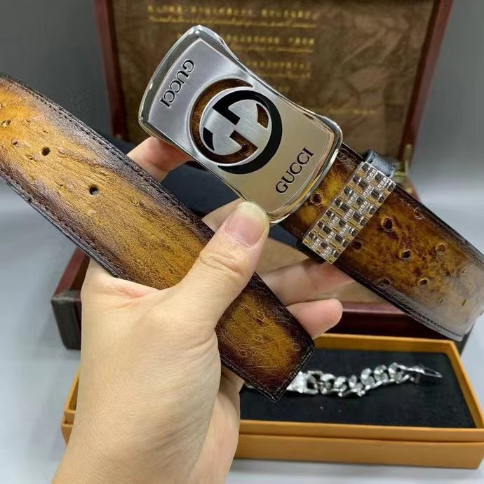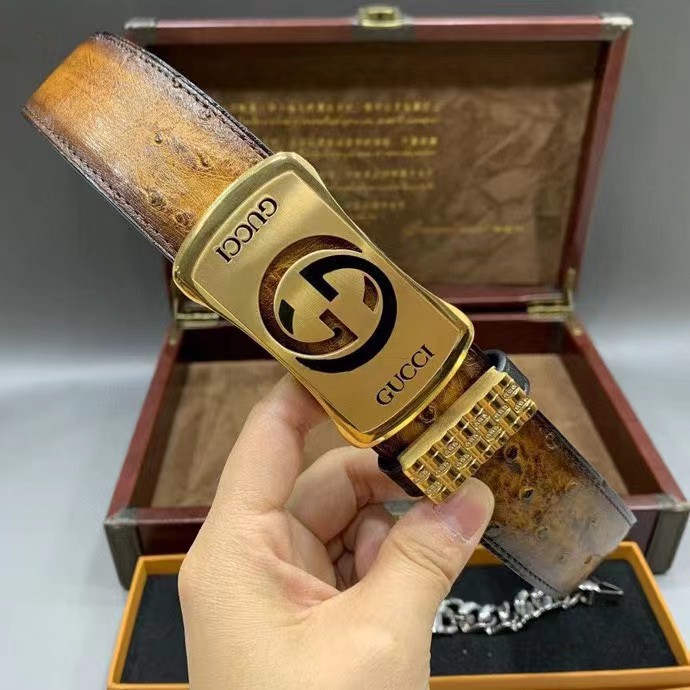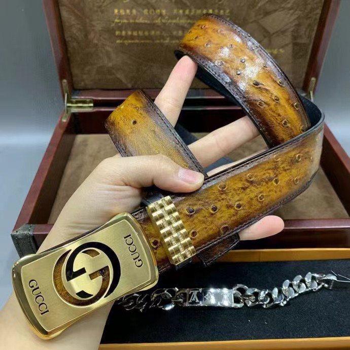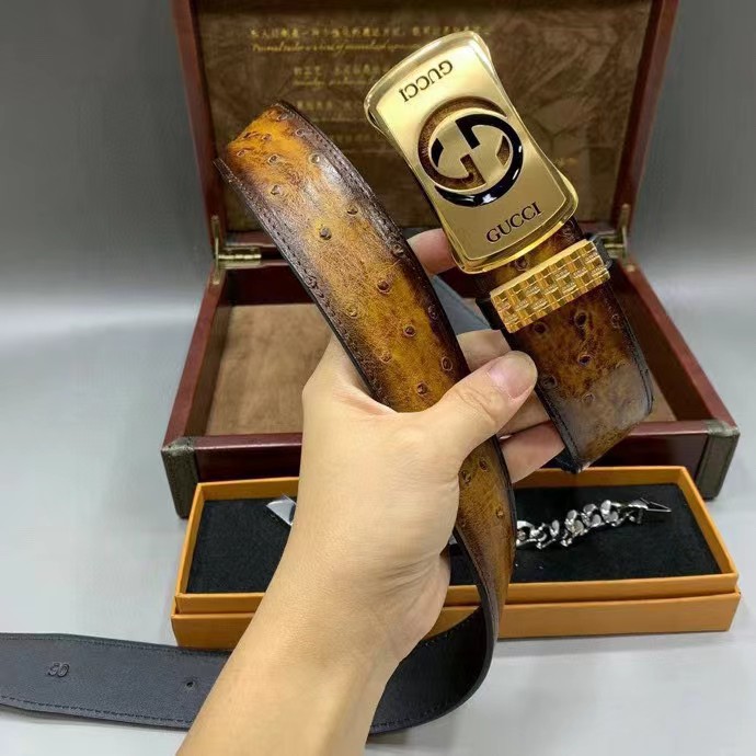 Gucci 古驰 3.8cm 鸵鸟皮平滑扣