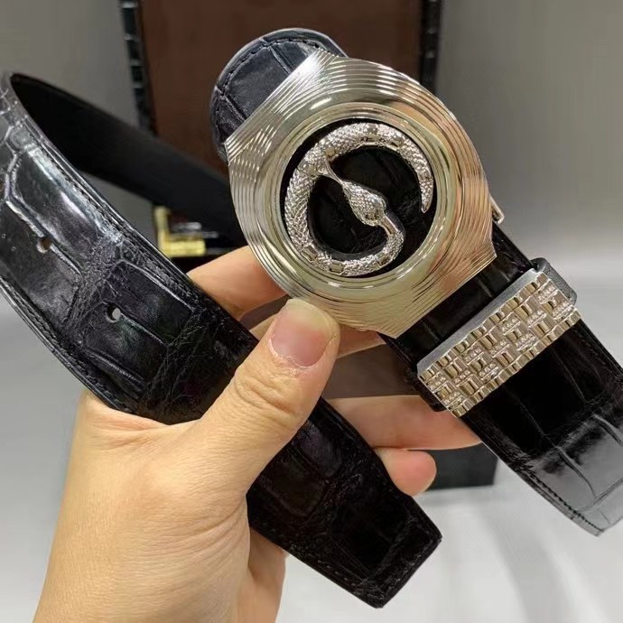 Gucci 古驰 3.8cm 美洲鳄鱼肚皮平滑扣