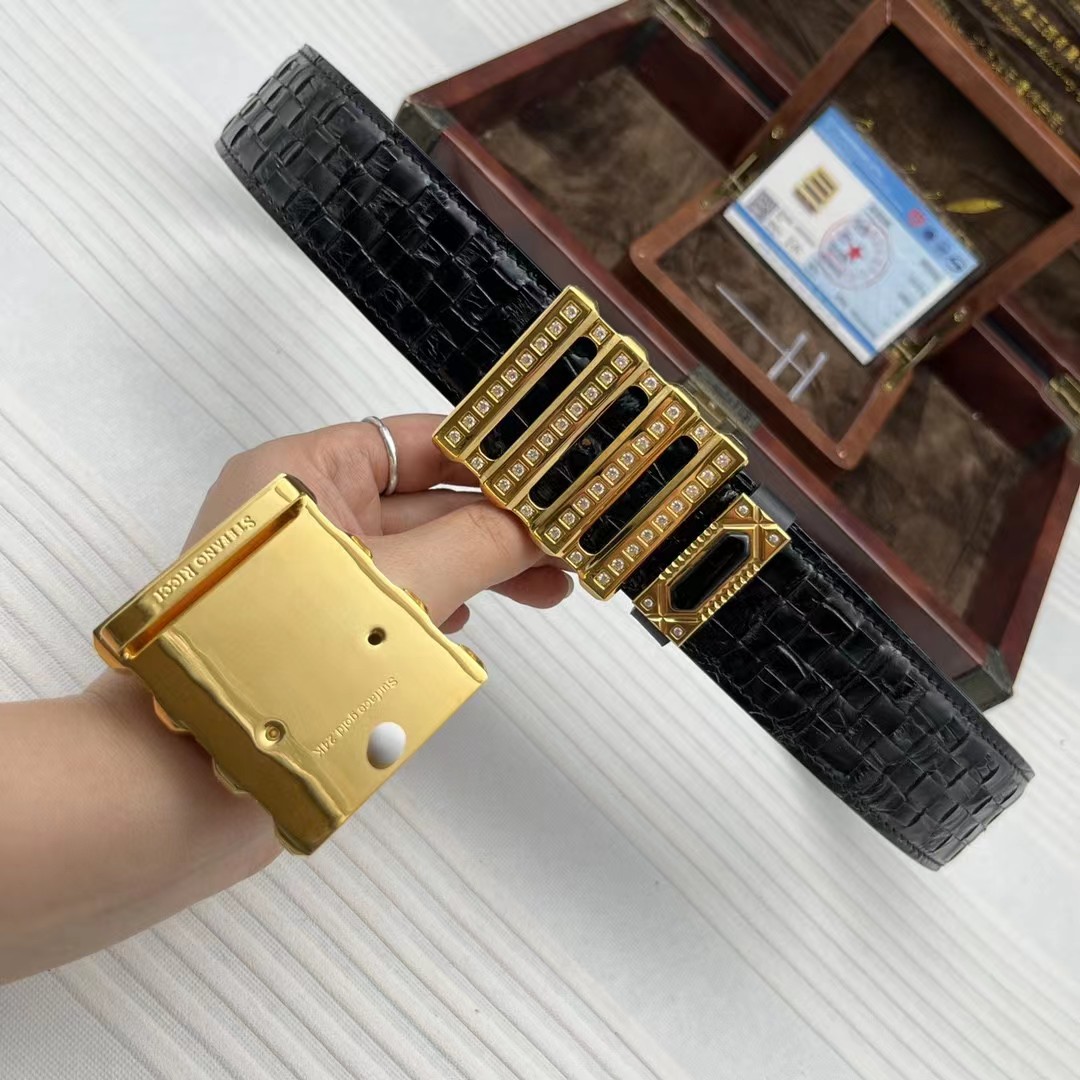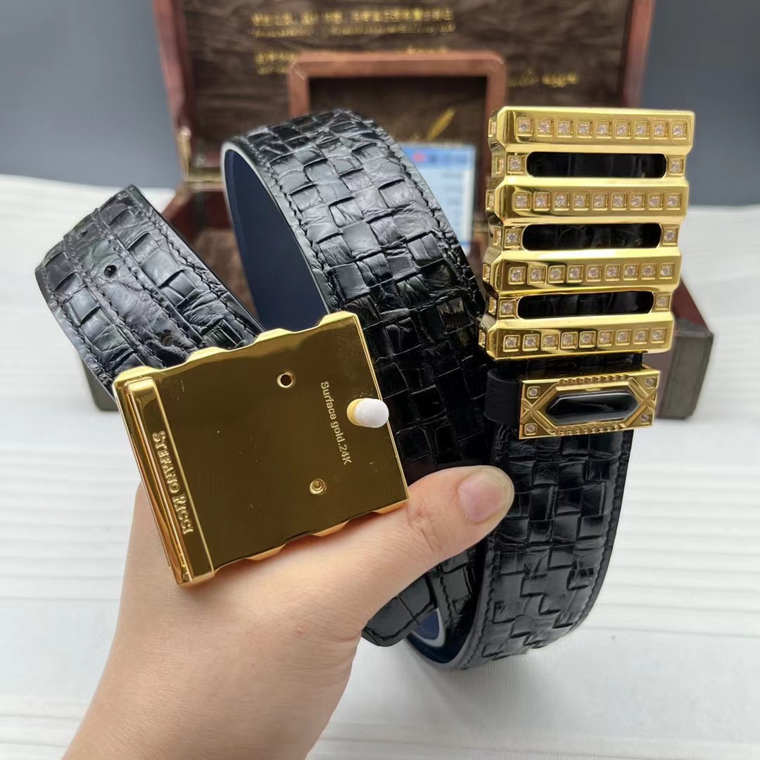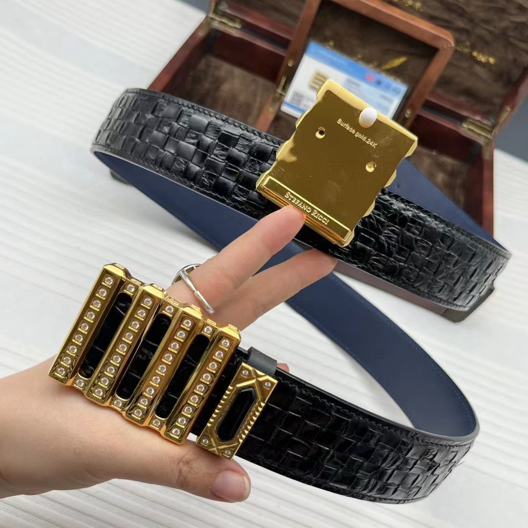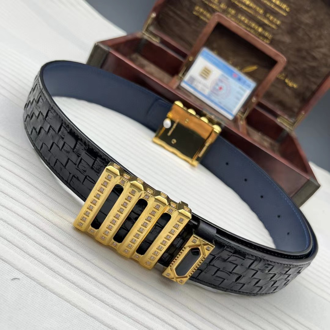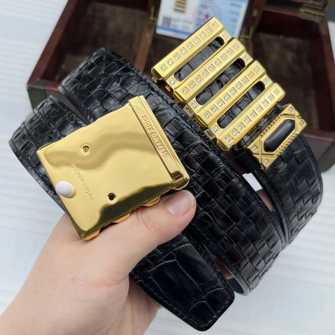 史蒂芬24k金鳄鱼皮手工编织包金款系列。搭配黑玛瑙介子,全球官网有售!带身采用美洲鳄整条开料没有接口 不一样的视觉冲击,精湛做工非市场所能媲美,海外代购最热系列 搭配定制原单镶钻包金扣3.8宽(永不掉色)秉承独特的设计风格引领时尚 高端品质 支持专柜验货!腰带皮带,亲们为保证质量 下单请认清细节及配件