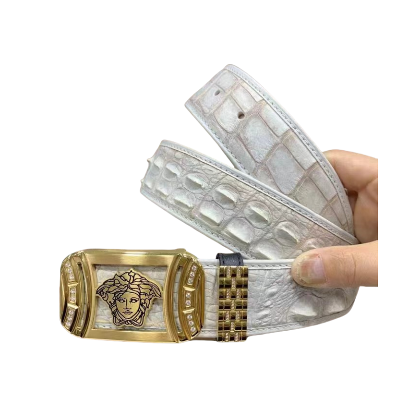 描述:德国进口机车车线 采用进口喜马拉雅白美洲鳄鱼无拼A级骨皮纯手工打造,搭配奢华工艺精钢镶钻美人头扣,尊贵的高端客户象征的体现!