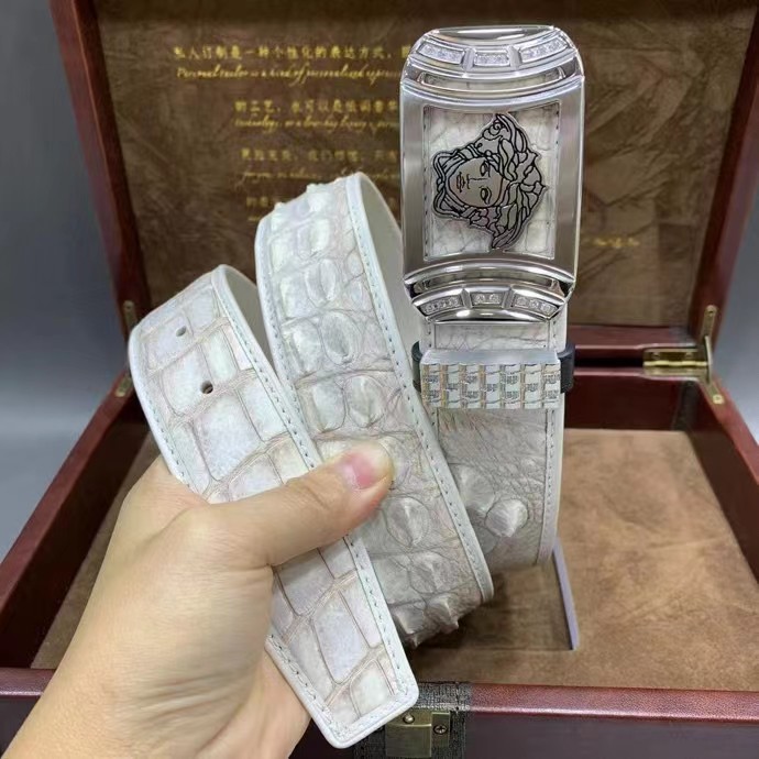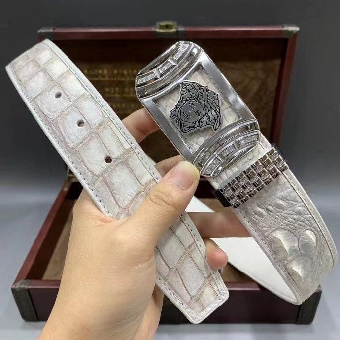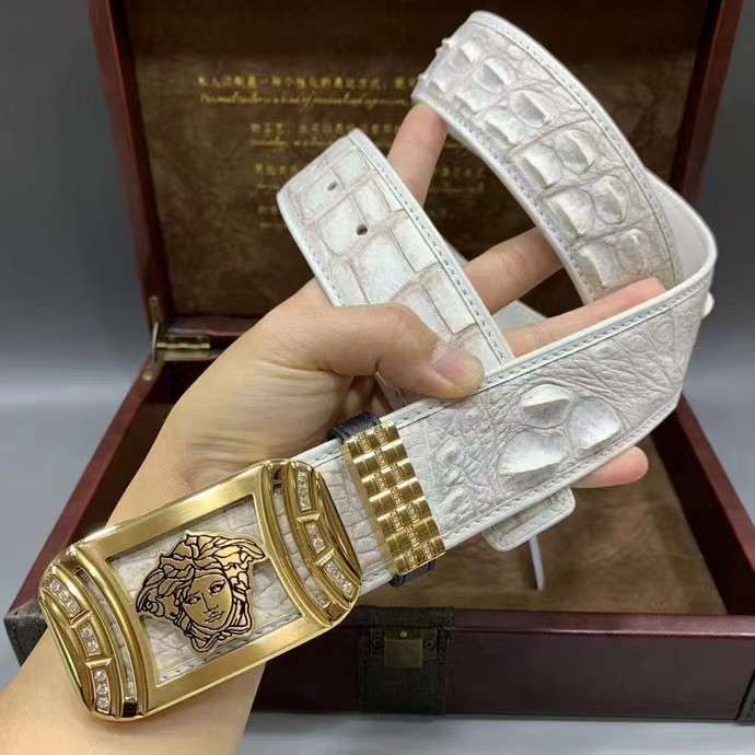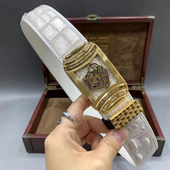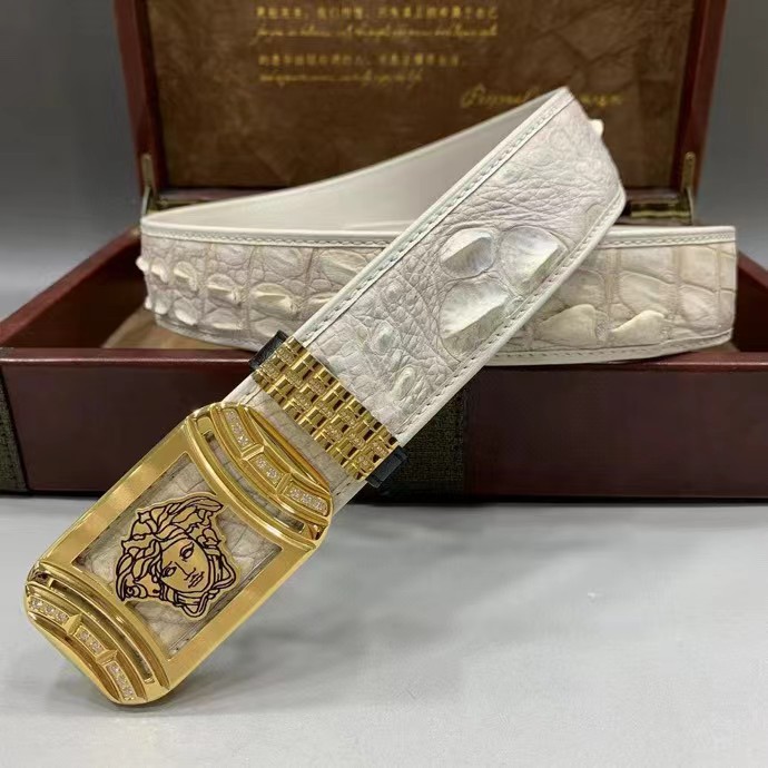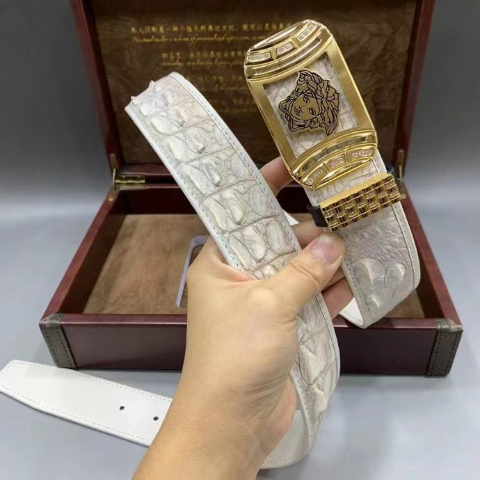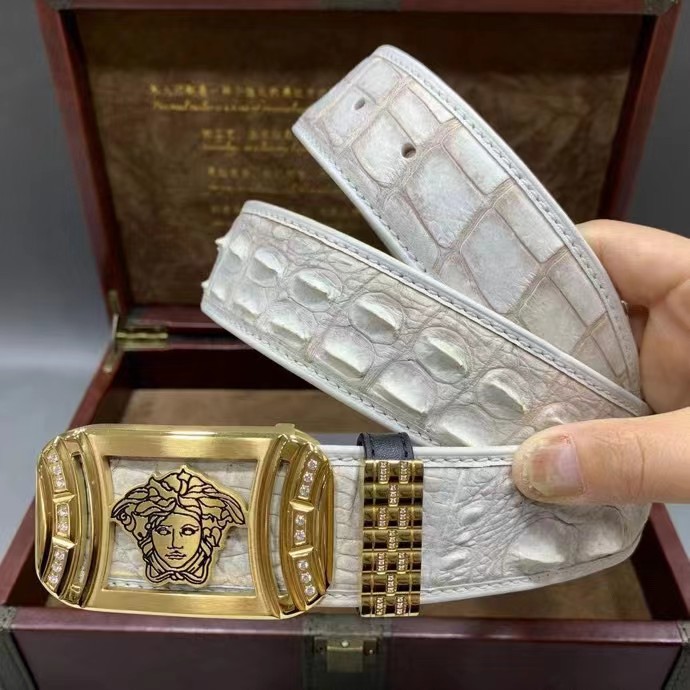 VERSACE 范思哲 3.8cm 美洲鳄鱼皮平滑扣