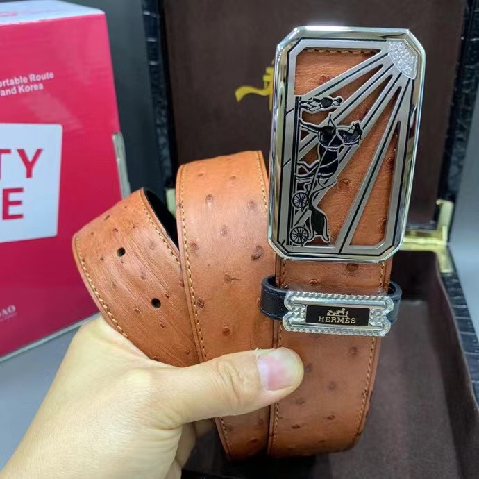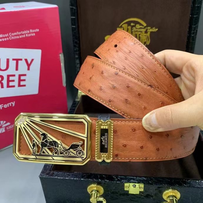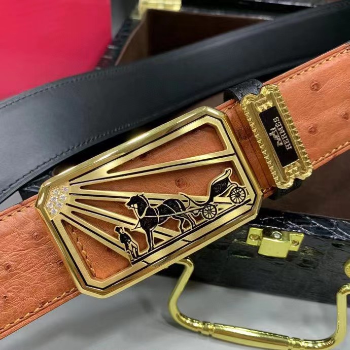 HERMES 爱马仕 3.8cm 澳洲炫酷橙野生鸵鸟皮