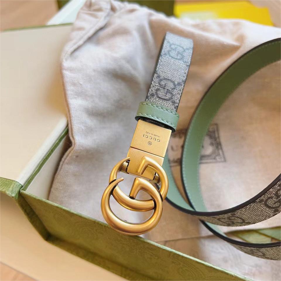 Gucci 古驰 2.0cm 经典杏色平滑扣